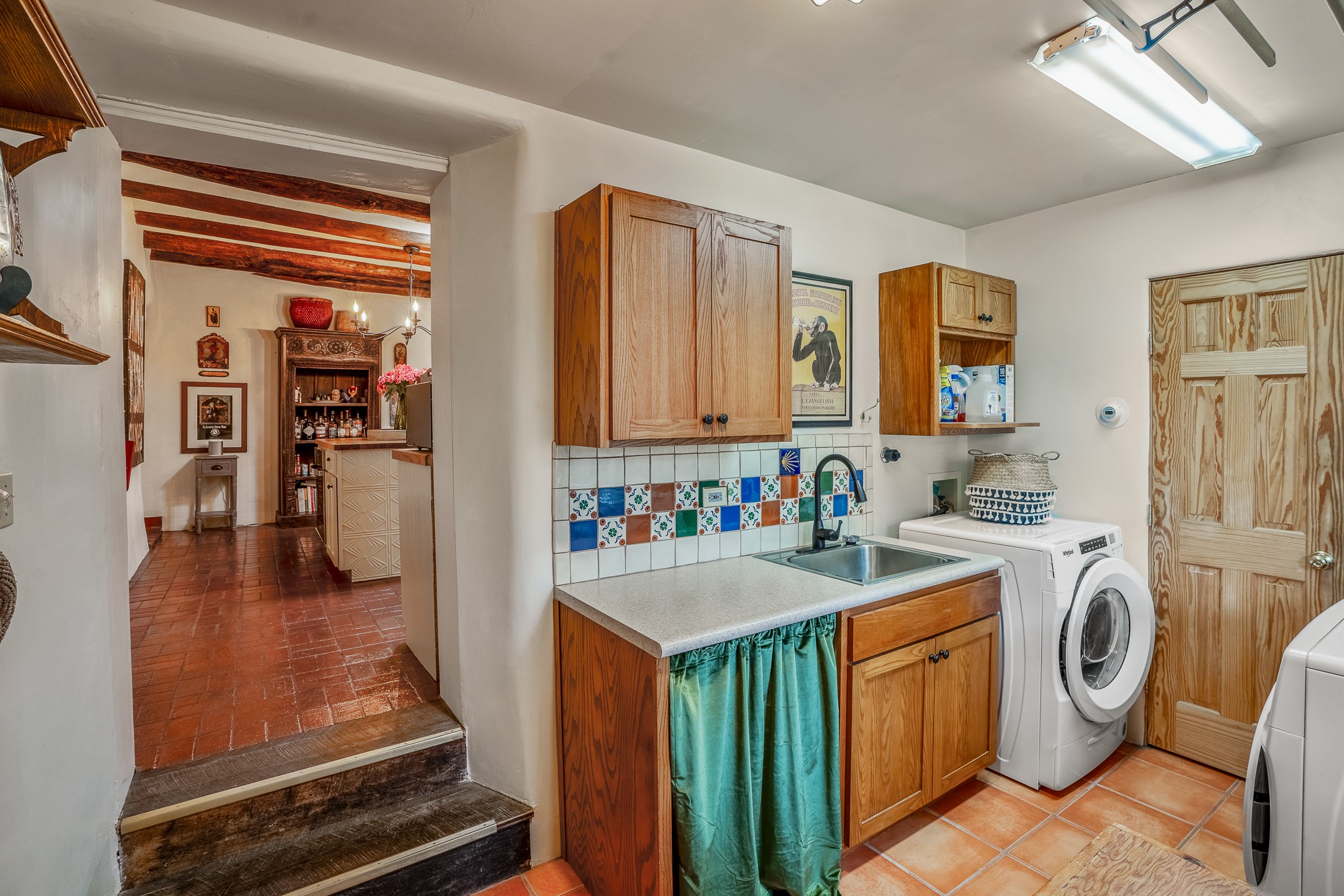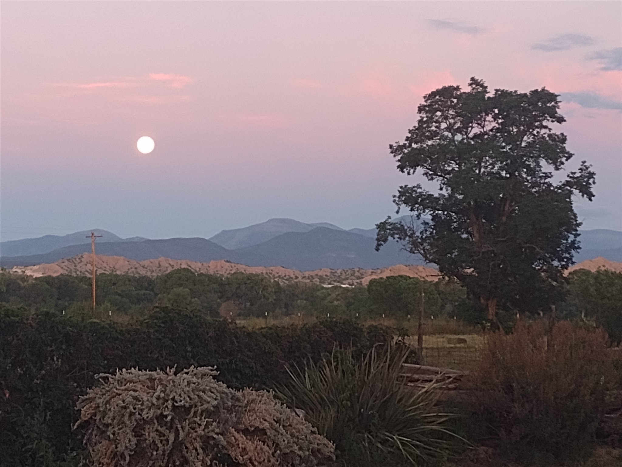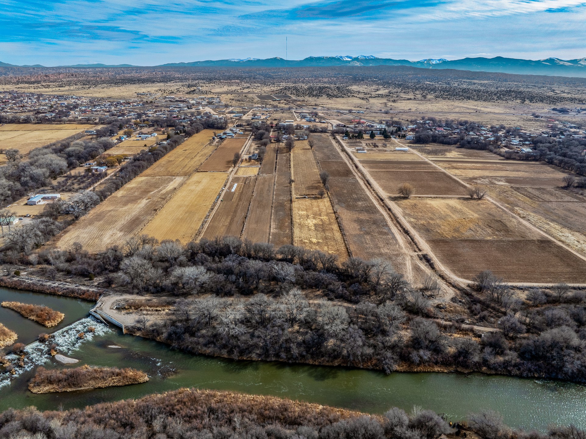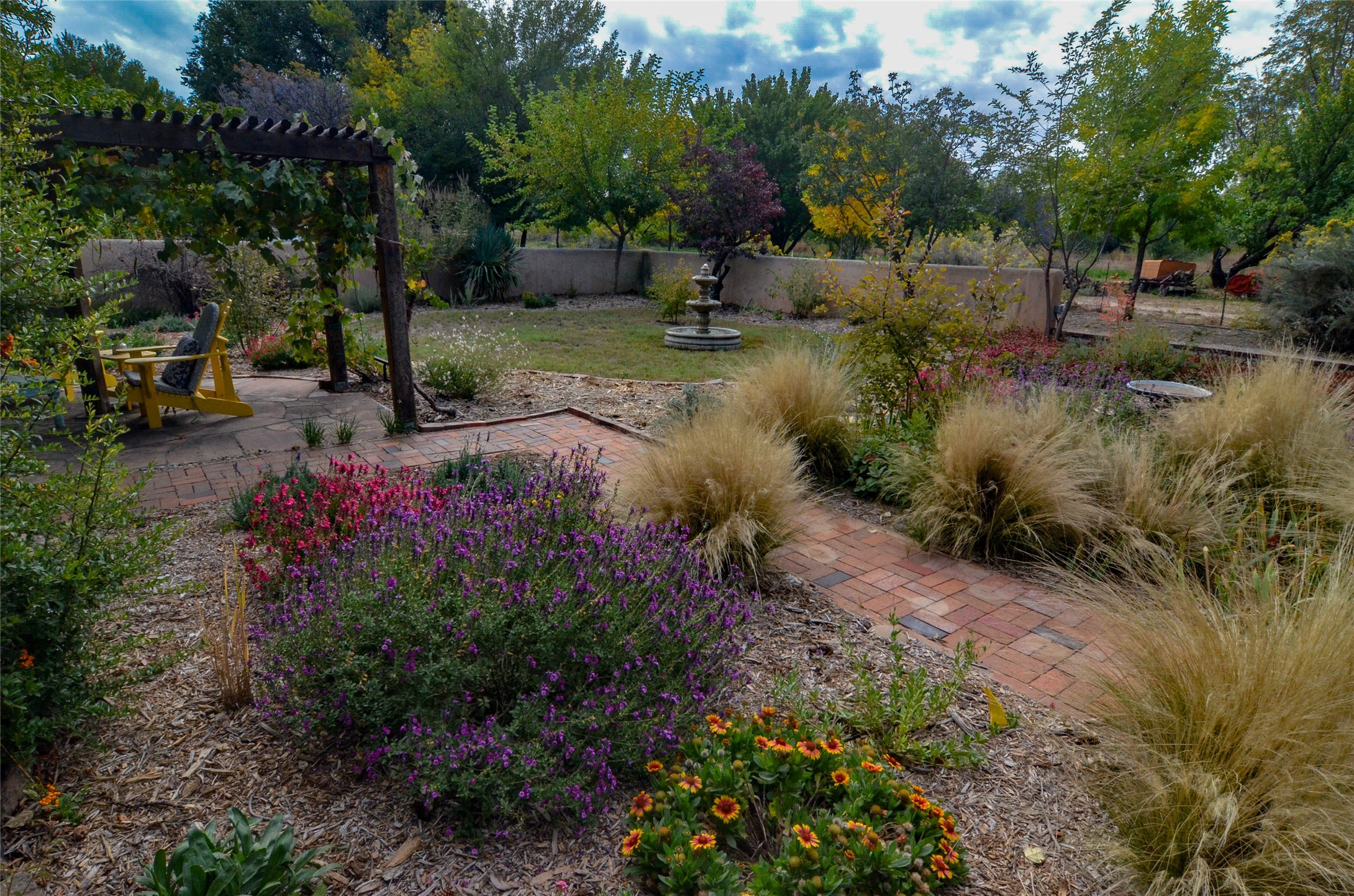 Charming, yet elegant, Alcalde adobe compound just steps from the Rio Grande Bosque. Experience refined farm living in this meticulously restored northern New Mexico property, which includes a main house, detached casita, and artist studio with a 3-car garage on 4.2 acres--2 acres of which are arable farmland. The acreage stretches from the Acequia de Alcalde to the Rio Grande Bosque and offers sweeping 180-degree views of the Jemez Mountains, Black Mesa, and the RG Bosque. The 3-bedroom, 2-bath adobe main house dates back to the early 1900s but has undergone thoughtful renovations and system upgrades in 2004 and again between 2022 and 2025. Finishes include vigas, coved ceilings, tile, brick, and wood floors, plus new high-end appliances in the kitchen and laundry. Equally charming is the 1-BD, 1-BA detached casita--perfect for guests or rental income. The double-adobe casita, the oldest structure on the property, was completely reimagined in 2024 and features custom tile work, a functional kitchenette, a new mini-split for heating and cooling, a screened-in porch, and front-row views of the Bosque. The property also includes a 3-car detached garage with an attached artist studio, making this property truly the complete package. The approximately 500 sq. ft. studio is heated and cooled by a mini-split and serves as an ideal space to create--or would serve as a great workshop. The grounds near the residences are landscaped with native grasses, flowers, a variety of fruit trees, and are watered by an 8-zone automated drip irrigation system. Water fountains grace both the front and back of the main house for added ambiance. Additional features include a private well, net-metered solar panels on the main house, and 3-acre feet of acequia water rights. Whether you're seeking an agricultural dream or a lush, retreat from city life, this property offers tranquility and the splendor of northern New Mexico--just 35 minutes from downtown Santa Fe.
