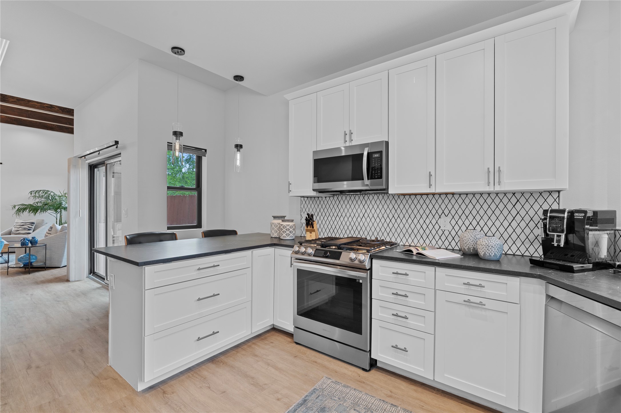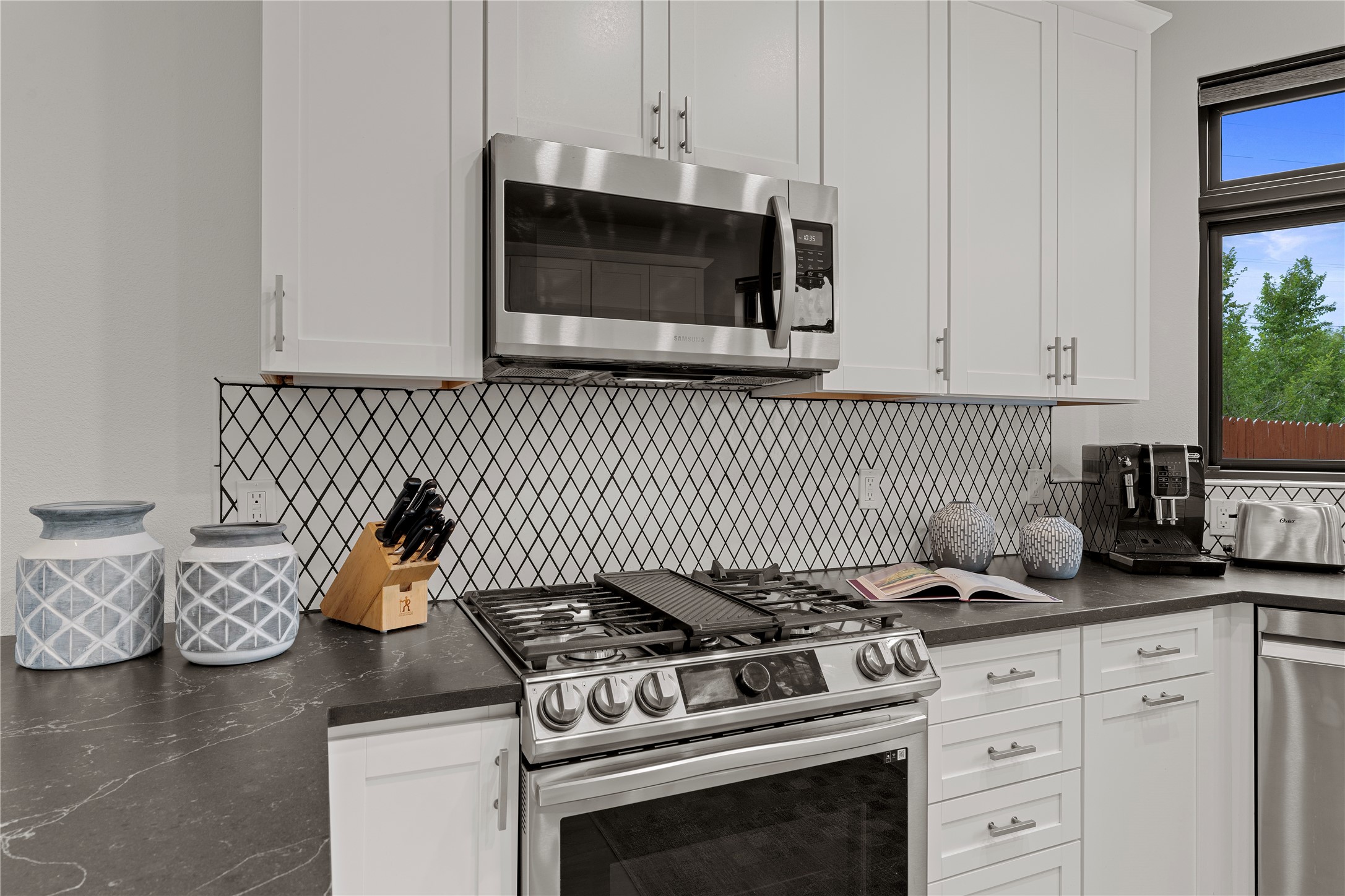 This beautifully crafted single family one story home, built by renowned Master Builder Arch Sproul, combines modern comfort with exceptional energy efficiency. Located in a quiet all custom-built subdivision in central Santa Fe, this home features super-insulated walls and ceilings, on-demand hot water, ultra efficient HVAC systems, skylights, and energy star appliances, making it ideal for sustainable living. With three well-separated bedrooms and two full bathrooms, the layout provides a perfect balance of privacy and functionality. The spacious living room with soaring ceilings, mountain views, and a cozy gas fireplace flows seamlessly to the covered patio and fenced backyard. The custom-designed kitchen boasts solid-surface countertops, custom cabinetry, luxury plank vinyl flooring, designer lighting, and stylish plumbing fixtures. Situated at the end of a peaceful tree-lined street with ample parking, it is a short walk from this home to local shops, schools, and the Genoveva Chavez sport facility. Offering price is lower than the sold price of 2023! This is the deal you won't want to miss! As a perk, it is currently covered with a Home Owners Warranty!