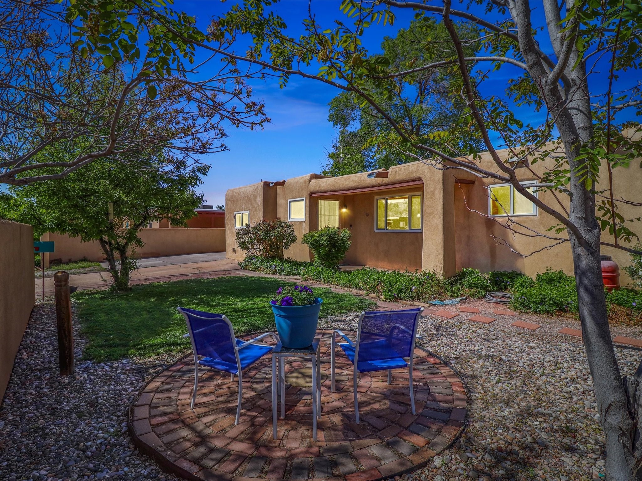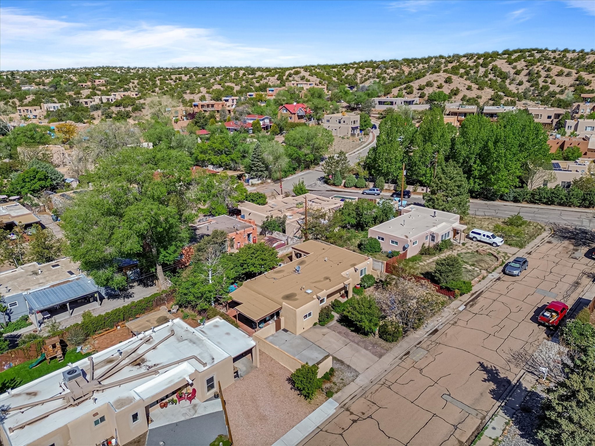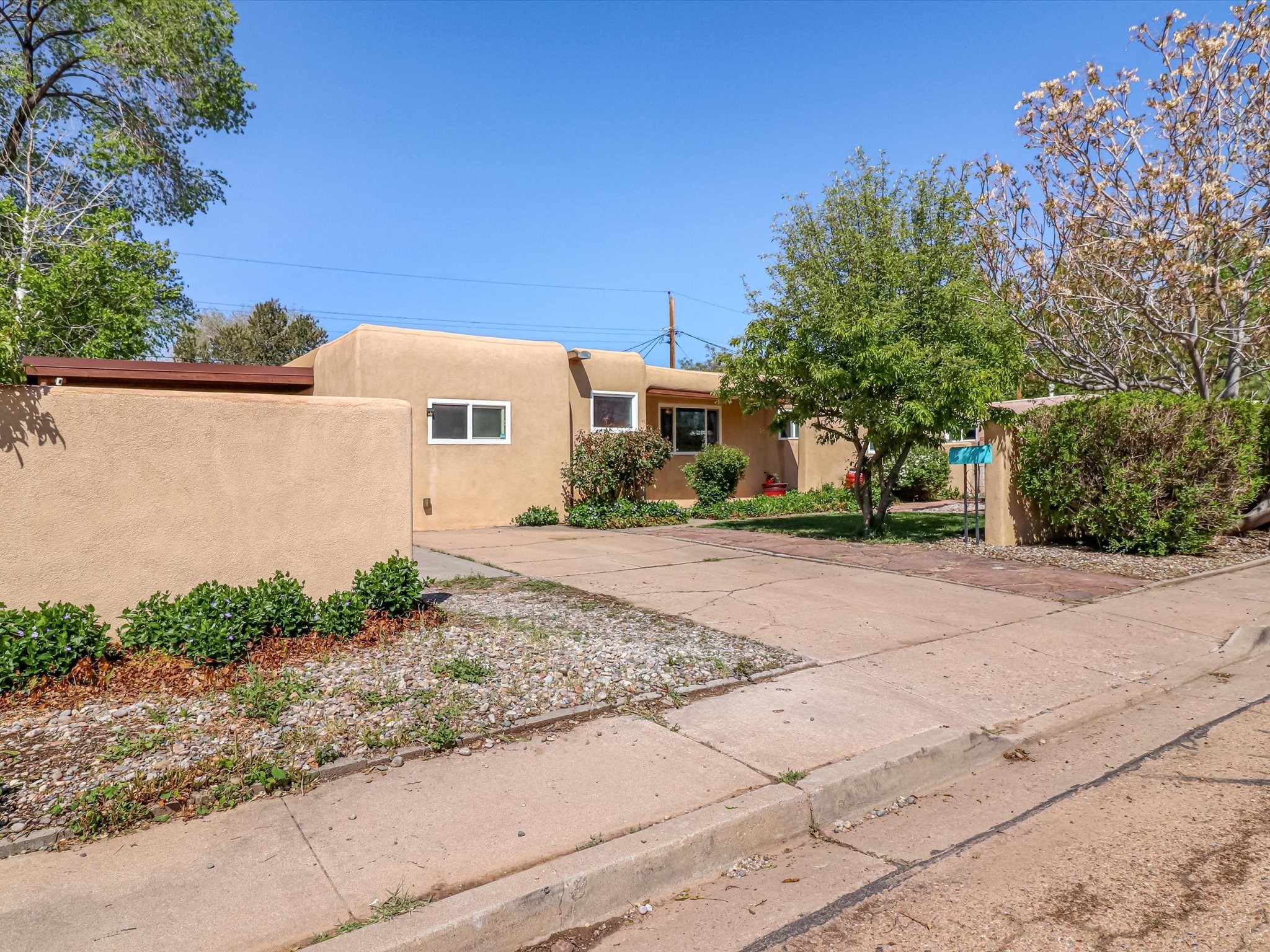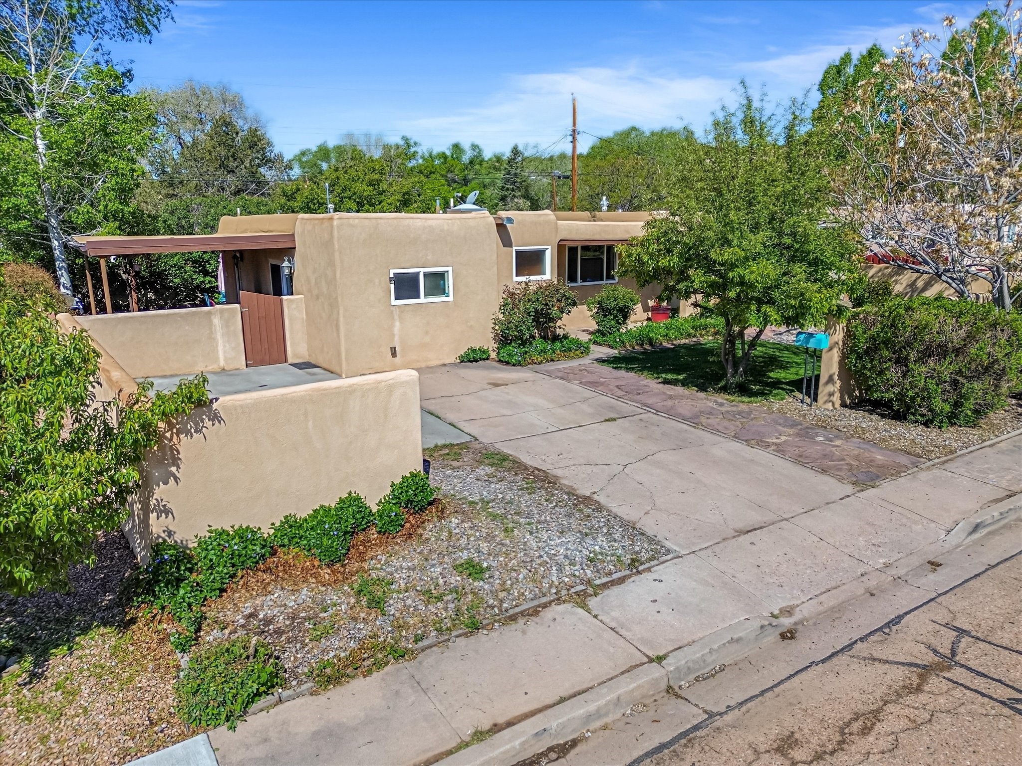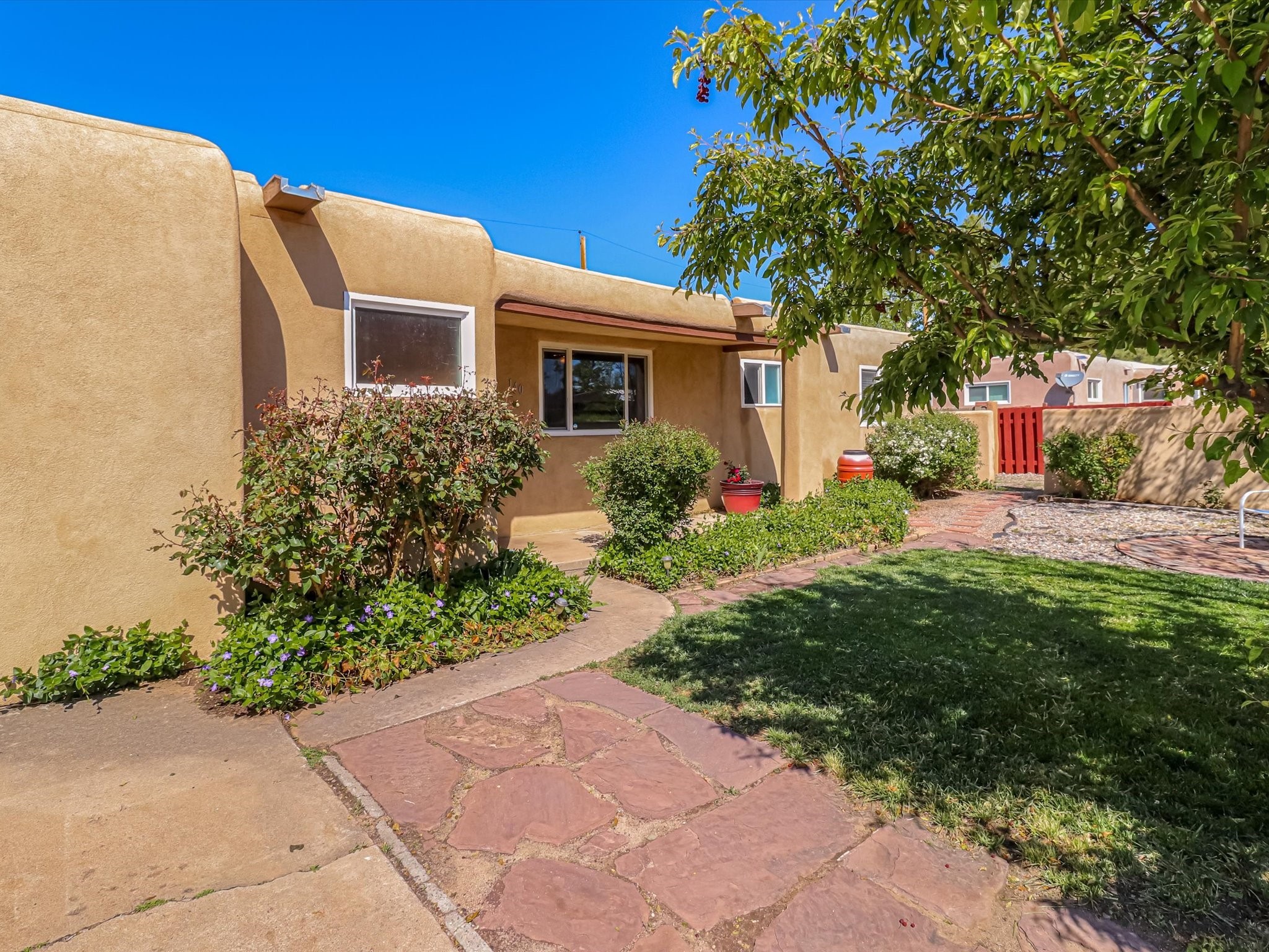 This inviting 3-bedroom, 2-bath home offers an open floor plan and timeless character. Built in 1954, the residence features original wood floors throughout, blending classic charm with modern flow. The attractive open concept living and dining areas are great for everyday living and entertaining.The exterior invokes a peaceful oasis--lush with flowers and mature fruit trees, the outdoor space is perfect for relaxing or hosting gatherings. Nestled in the highly sought-after Casa Solana neighborhood, this home offers comfort, charm, and convenience just minutes from Santa Fe's popular downtown area.