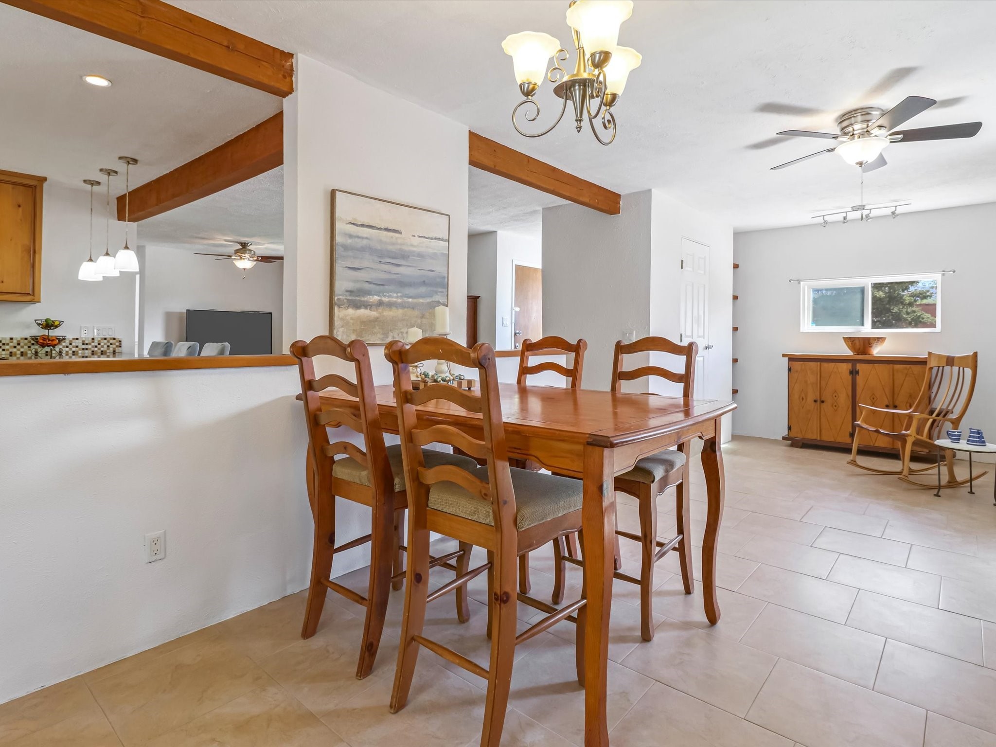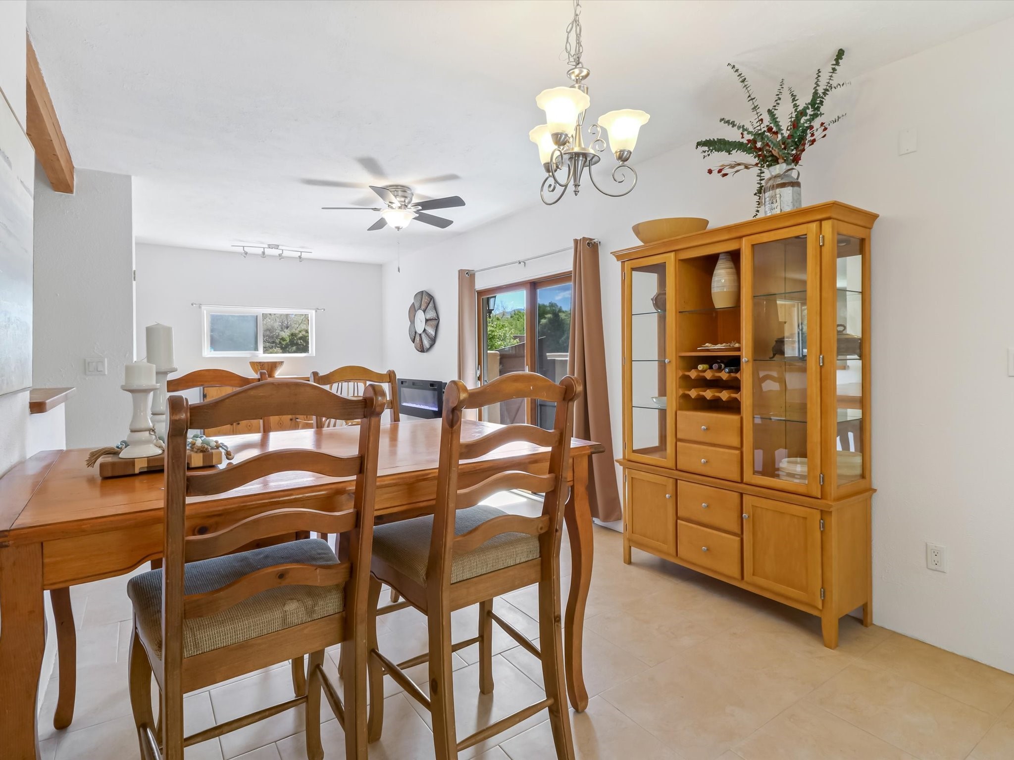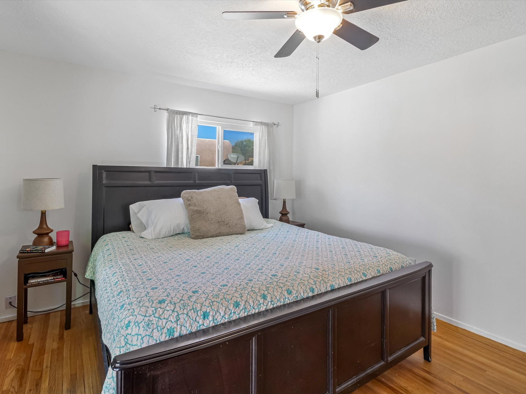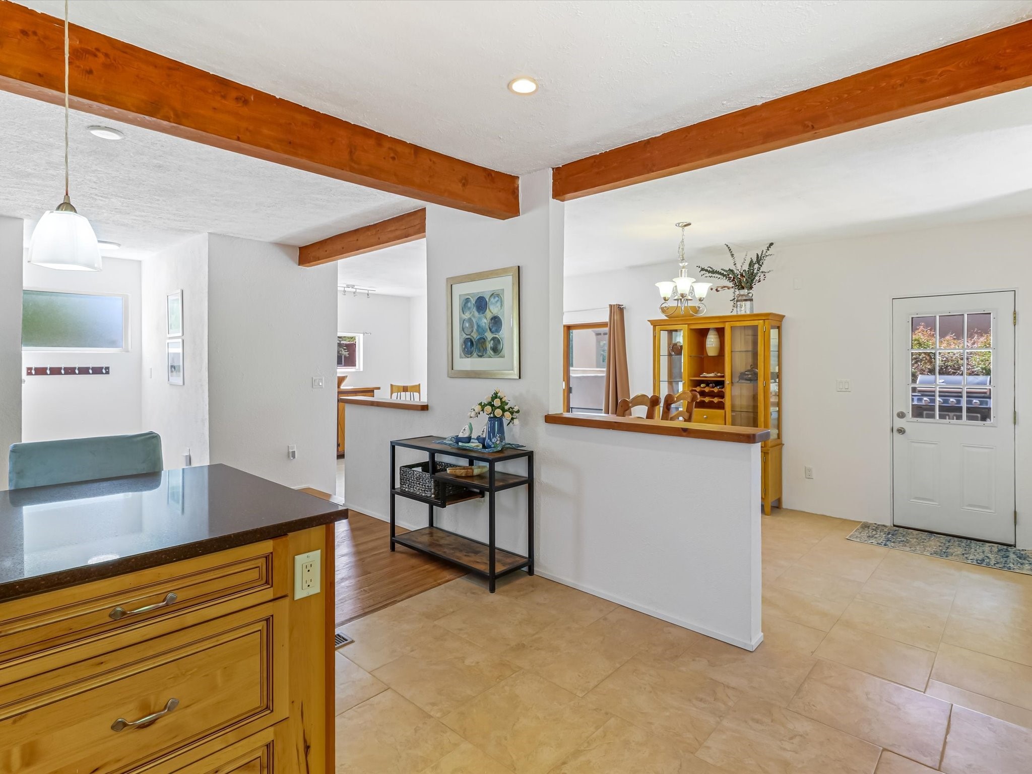 This inviting 3-bedroom, 2-bath home offers an open floor plan and timeless character. Built in 1954, the residence features original wood floors throughout, blending classic charm with modern flow. The attractive open concept living and dining areas are great for everyday living and entertaining.The exterior invokes a peaceful oasis--lush with flowers and mature fruit trees, the outdoor space is perfect for relaxing or hosting gatherings. Nestled in the highly sought-after Casa Solana neighborhood, this home offers comfort, charm, and convenience just minutes from Santa Fe's popular downtown area.