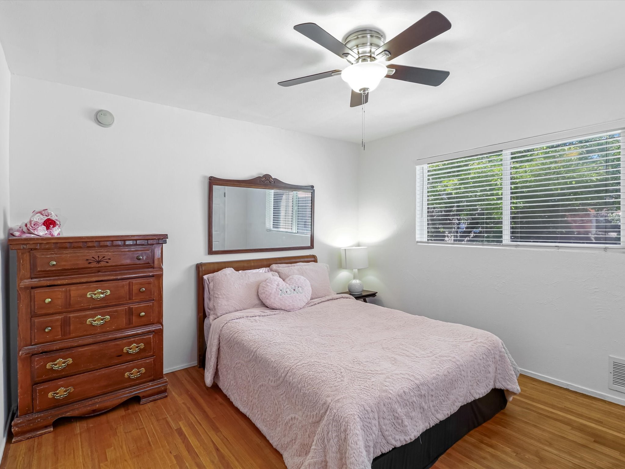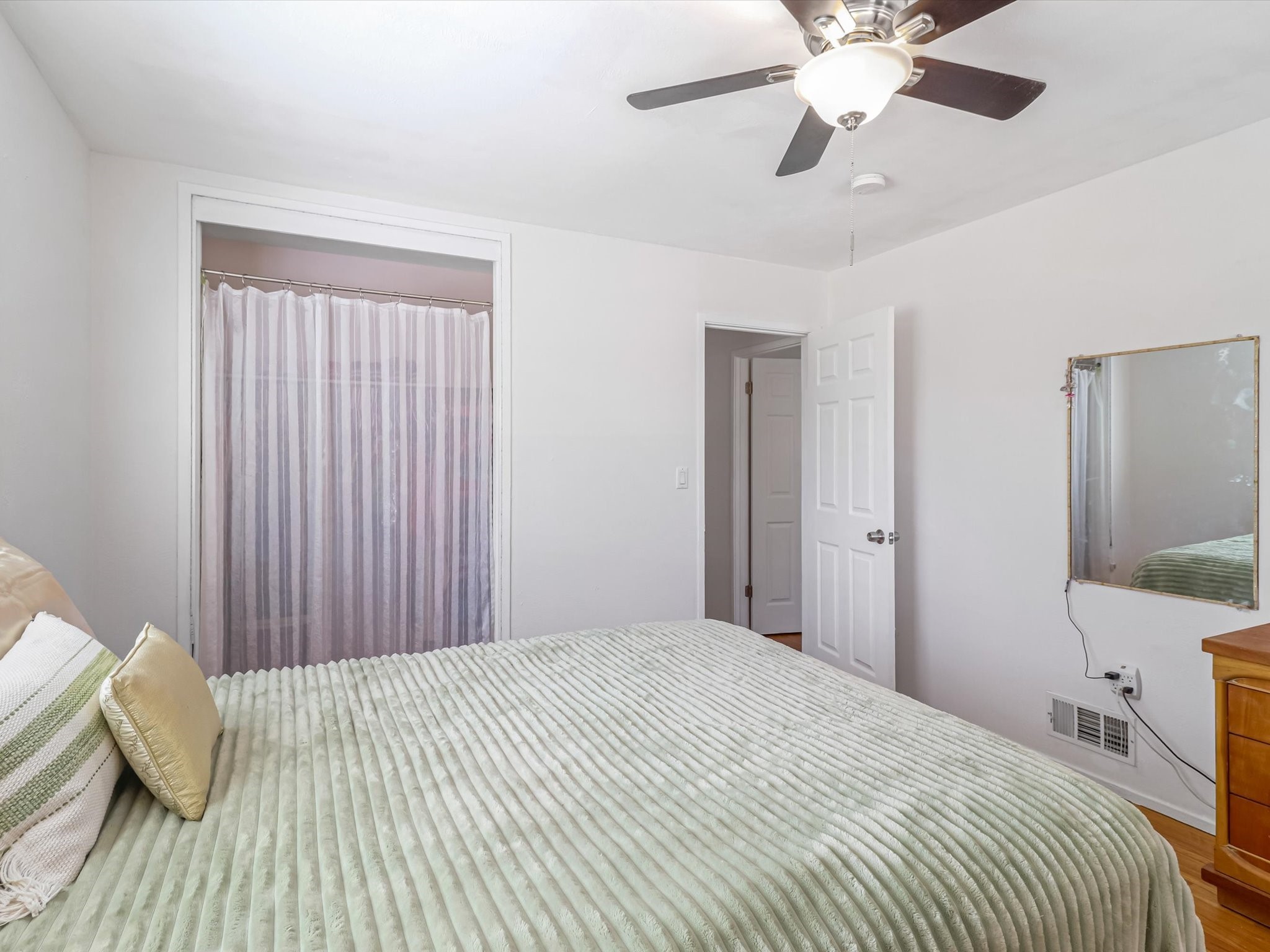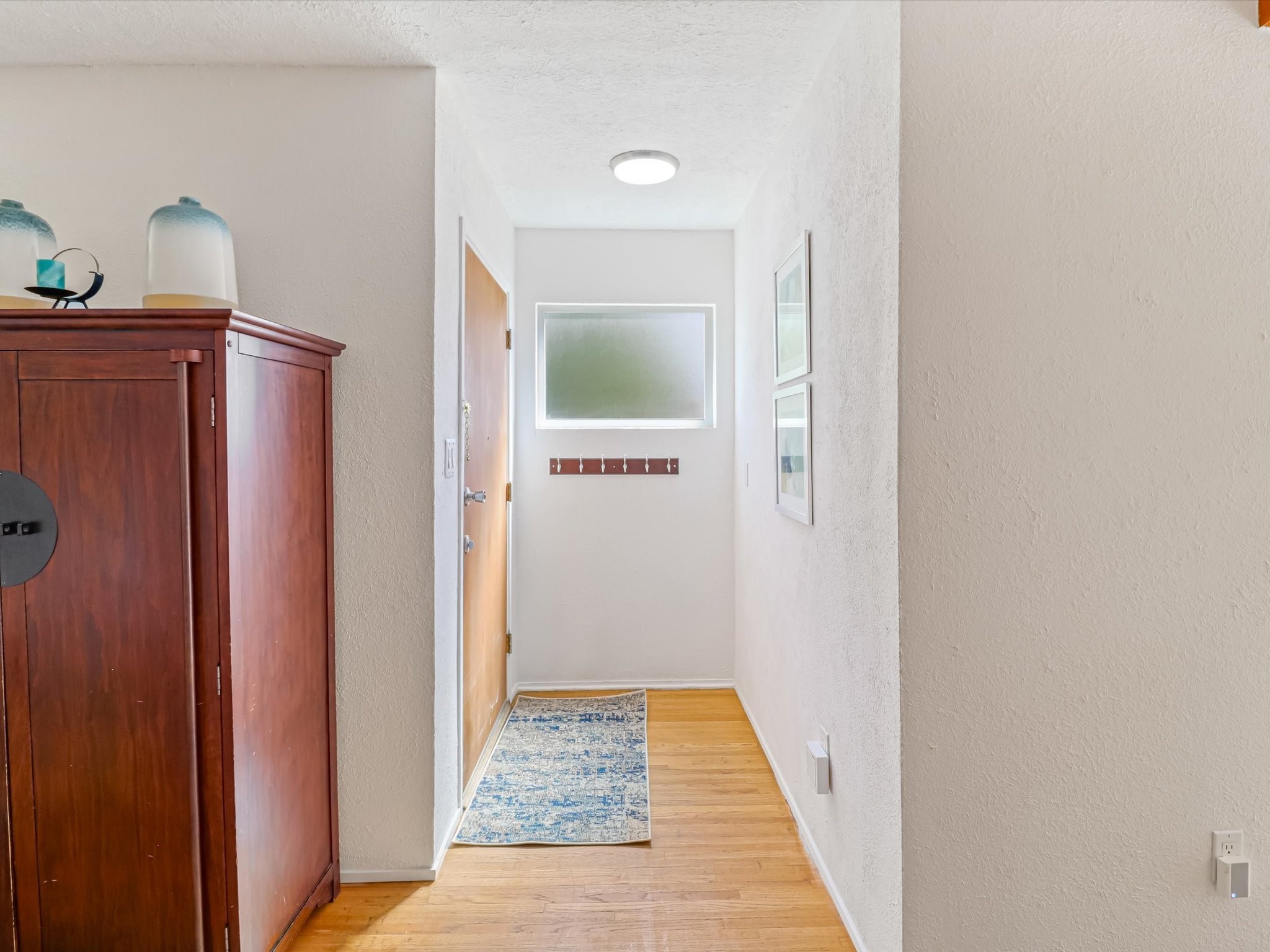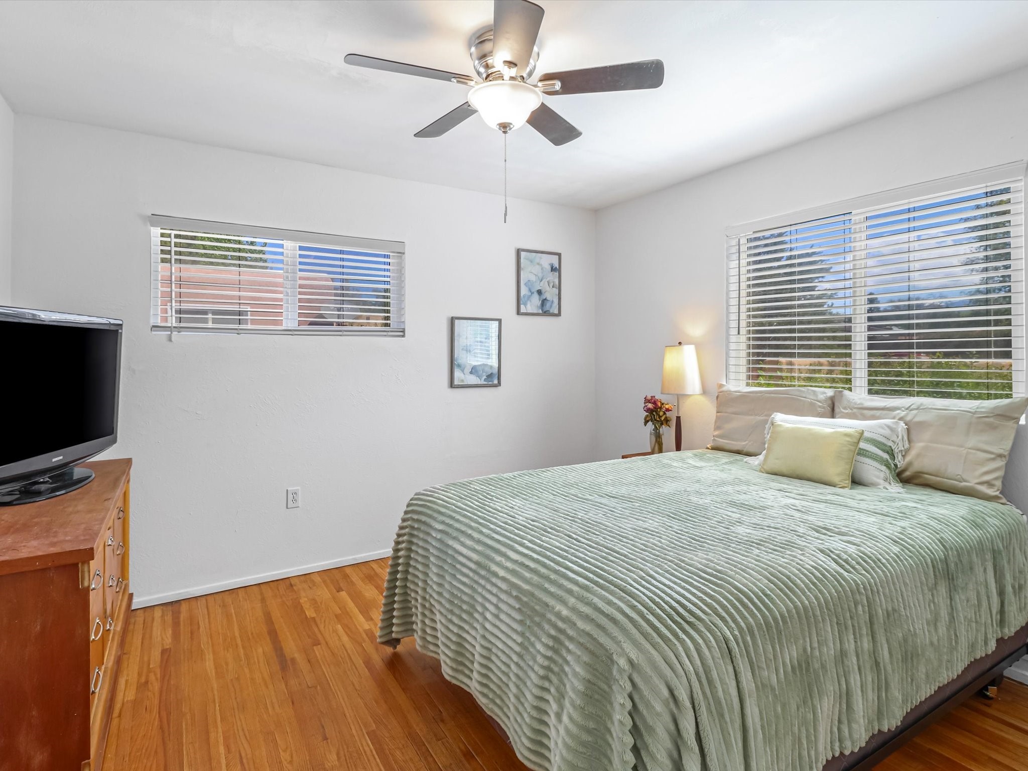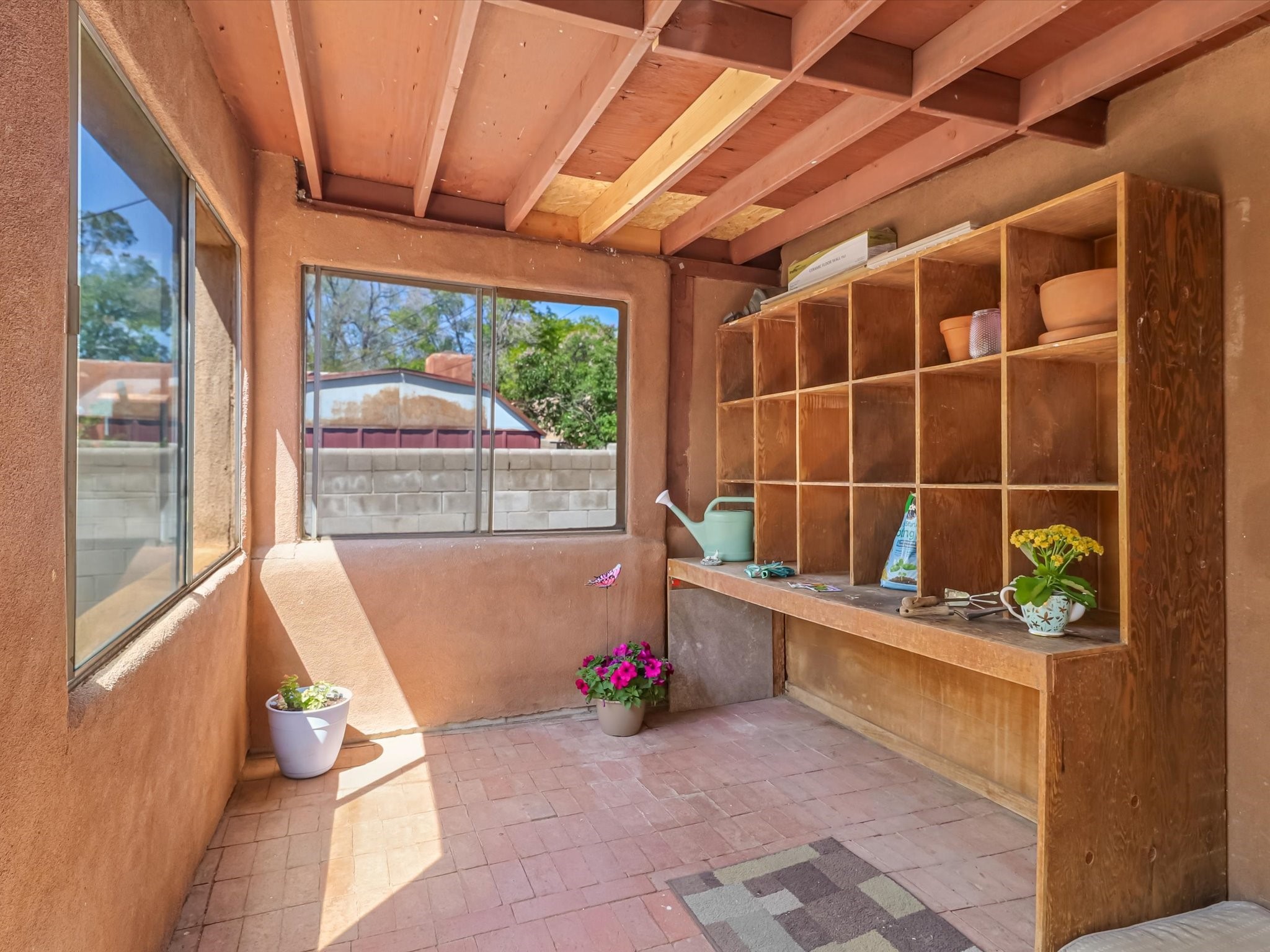 This inviting 3-bedroom, 2-bath home offers an open floor plan and timeless character. Built in 1954, the residence features original wood floors throughout, blending classic charm with modern flow. The attractive open concept living and dining areas are great for everyday living and entertaining.The exterior invokes a peaceful oasis--lush with flowers and mature fruit trees, the outdoor space is perfect for relaxing or hosting gatherings. Nestled in the highly sought-after Casa Solana neighborhood, this home offers comfort, charm, and convenience just minutes from Santa Fe's popular downtown area.
