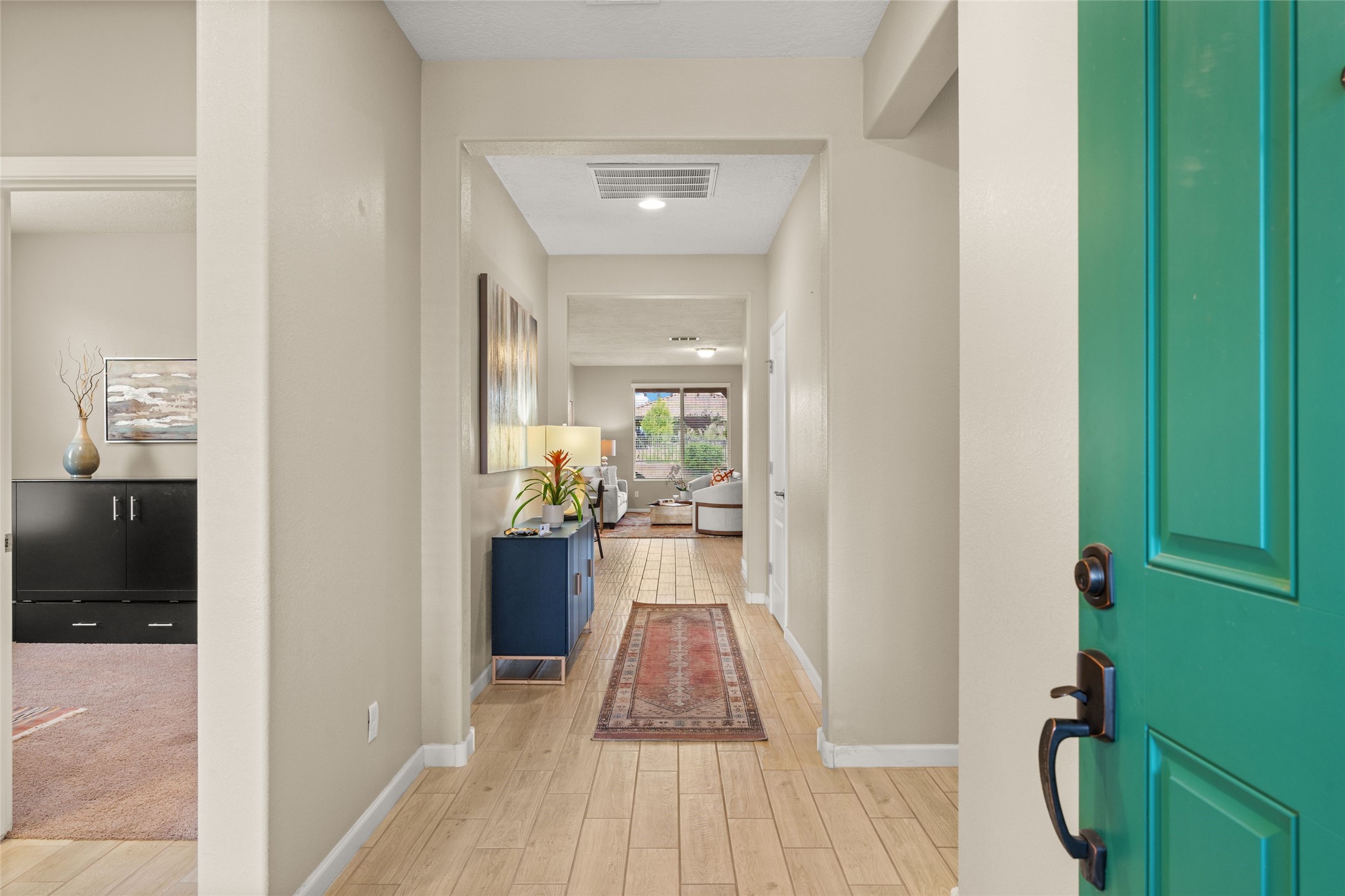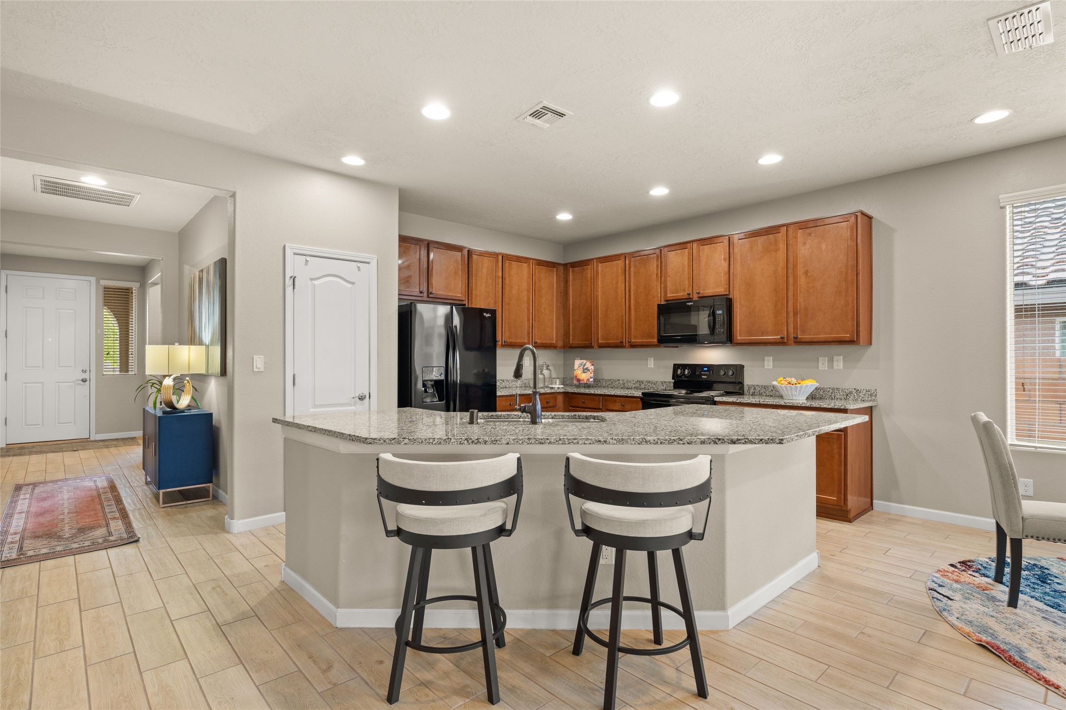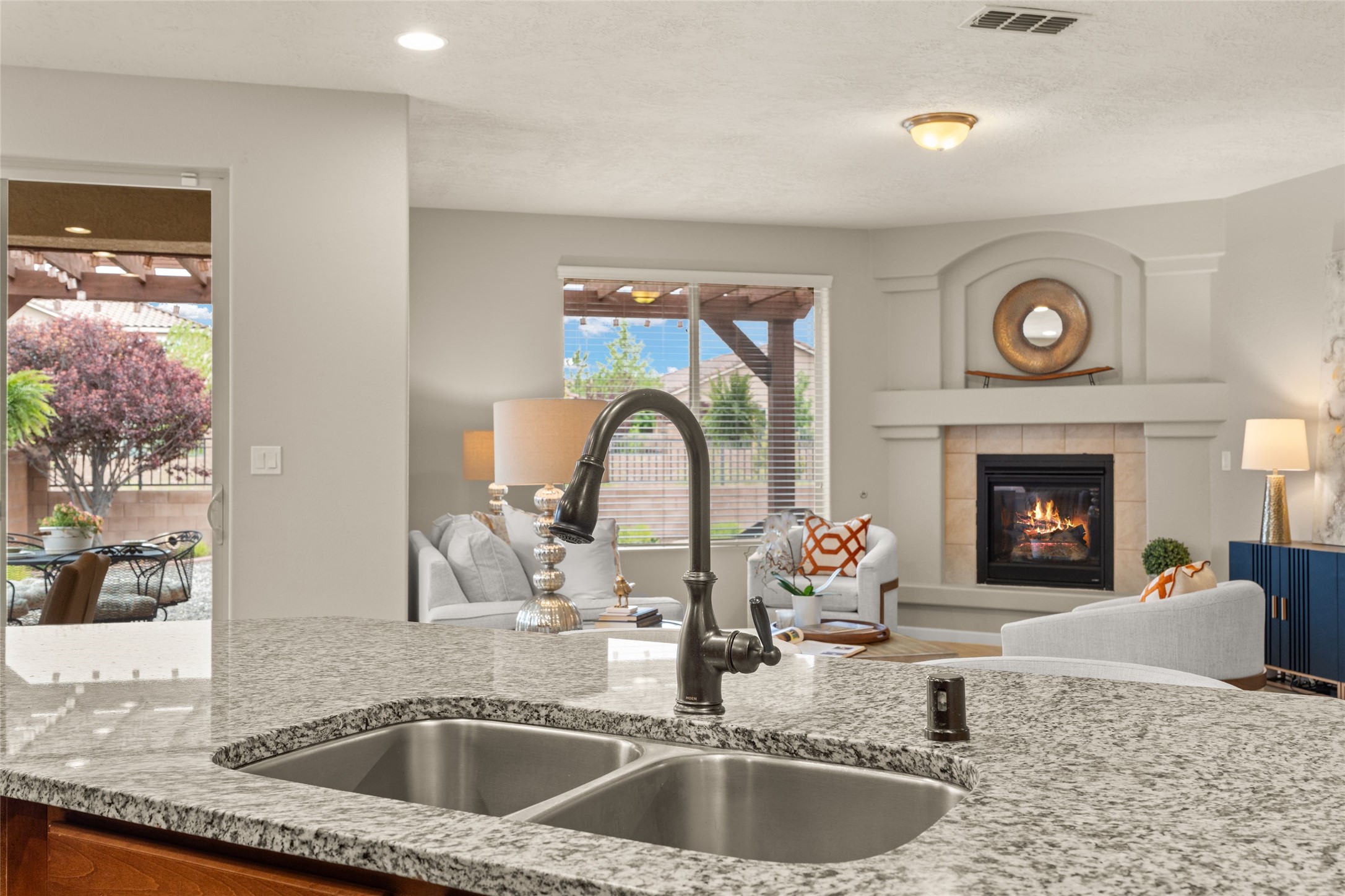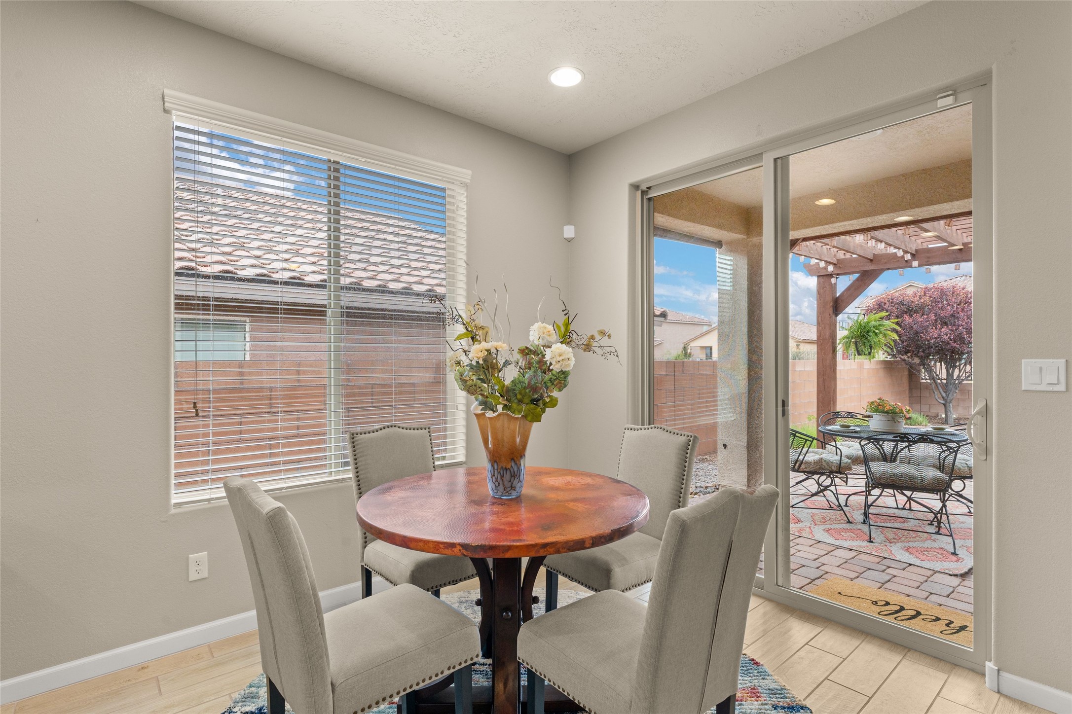 Enjoy the desirable lifestyle of Las Soleras in this beautiful community conveniently located for easy access to downtown Santa Fe, Albuquerque, Los Alamos, the Rail Runner as well as schools, healthcare, shopping, dining and cultural destinations. This 3 bedroom/2 bathroom home was thoughtfully designed and offers a large open plan Living Room, Dining Area and Kitchen and excellent separation between the Primary ensuite Bedroom and the other bedrooms. Enter the Primary Bedroom Ensuite from a foyer off the Living Room and enjoy the generously sized bedroom, a large bathroom with a linen and walk-in closet. Other bedrooms and bathroom are towards the front of the home and adjacent to the long entry hallway opening up to the Living/Dining and Kitchen. The Kitchen has granite counter tops, all wood cabinetry, a Pantry and ample room for cooking and entertaining. Walk outside to a beautiful and welcoming trellis covered patio and green turf back yard area that is ideal for dining and lounging to the trickling sound from the stone water feature. Las Soleras has an extensive trail system for walking and running as well as Las Soleras Park for birdwatching, outdoor sports, picnicking and includes essential amenities like parking restrooms, a leisure playground and a shelter available for use. This is a versatile home that can fit any type of lifestyle so schedule your showing today!