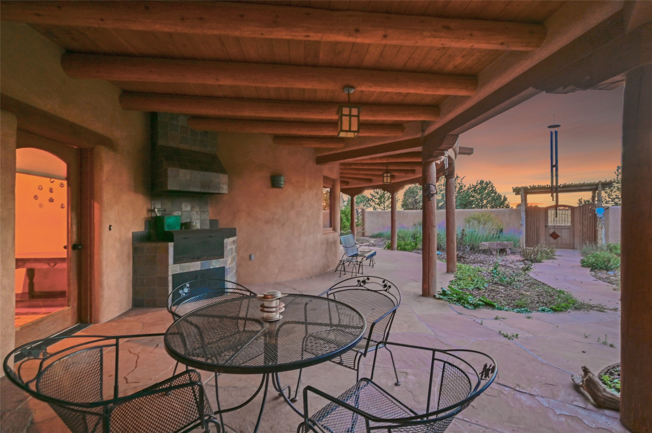Welcome to a truly exceptional Northern New Mexico retreat--110 acres of serene beauty and luxurious living. This remarkable property features a stunning 4-bedroom, 3-bath primary residence once showcased in Enchanted Homes magazine, a testament to its timeless design, high-level craftsmanship, and one-of-a-kind charm.Inside, you'll find hand-carved beams, a magnificent stone fireplace, and warm, inviting spaces designed for comfort and elegance. The chef's kitchen is a dream for culinary enthusiasts, while multiple private patios and lush, thoughtfully landscaped gardens create a true oasis in the desert--perfect for quiet mornings, lively gatherings, and starlit evenings.Conveniently located just 10 quick minutes west of the Taos Regional Airport, this extraordinary estate is as functional as it is beautiful. A grid-tied solar system, private well, and high-speed fiber optic internet ensure modern sustainability and convenience. The land includes well-appointed outbuildings: storage, tack room, hay barn, and a 3-bedroom, 2-bath manufactured caretaker's home--ideal for guests, a ranch manager, or extended family.Take in breathtaking 360-degree views from every angle and enjoy the option for an elk hunting license, adding unique appeal for outdoor enthusiasts. Whether you dream of tending gardens, riding horses, or simply soaking up the peace and privacy under expansive skies, this property invites you to experience the very best of refined country living.If you've been searching for a luxurious private sanctuary that must be seen to be truly appreciated, this is the one.