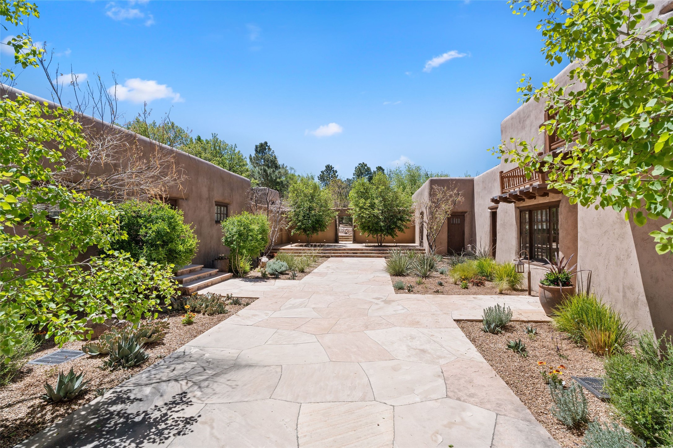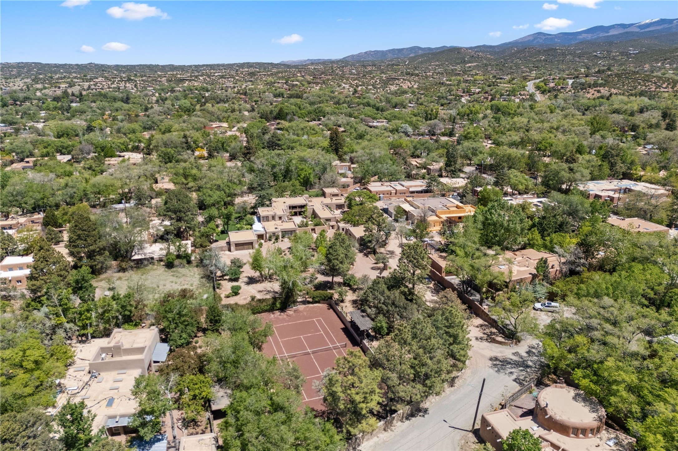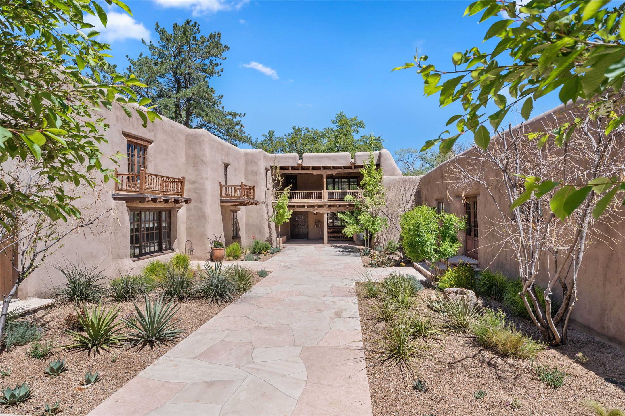 Experience the timeless elegance of The De La Pena/Frank Applegate Residence, a distinguished historical treasure nestled in Santa Fe's coveted Historic Eastside. An extraordinary opportunity to own a true piece of Santa Fe history, this landmark estate sits on 1.78 acres along a private lane, just moments from world-renowned Canyon Road and its celebrated galleries, boutiques, and fine dining. Constructed in 1650, and recognized for its National Historic Status, this remarkable property was acquired in 1845 by Spanish officer Francisco de la Pea and later purchased by esteemed artist and architect Frank Applegate. Meticulously restored to honor its past while seamlessly integrating modern luxury, the estate is designed around a picturesque placita courtyard, with a stunning 5-bedroom, 7-bath main residence and a welcoming guest casita. With every detail reflecting the finest level of artisanal craftsmanship, this incomparable estate offers a custom wine cellar with refrigeration, two garages, a clay tennis court, a ramada, and a private well for irrigation. The idyllic outdoor areas offer fabulous entertaining spaces, mature trees, multiple courtyards, along with a lush lawn, portals, and an abundance of privacy. Modern amenities are seamlessly integrated into the estate with a Control 4 Smart Home operating system. With its premier location and unparalleled provenance, this estate is a rare gem for discerning buyers seeking a luxurious lifestyle in the heart of Santa Fe.