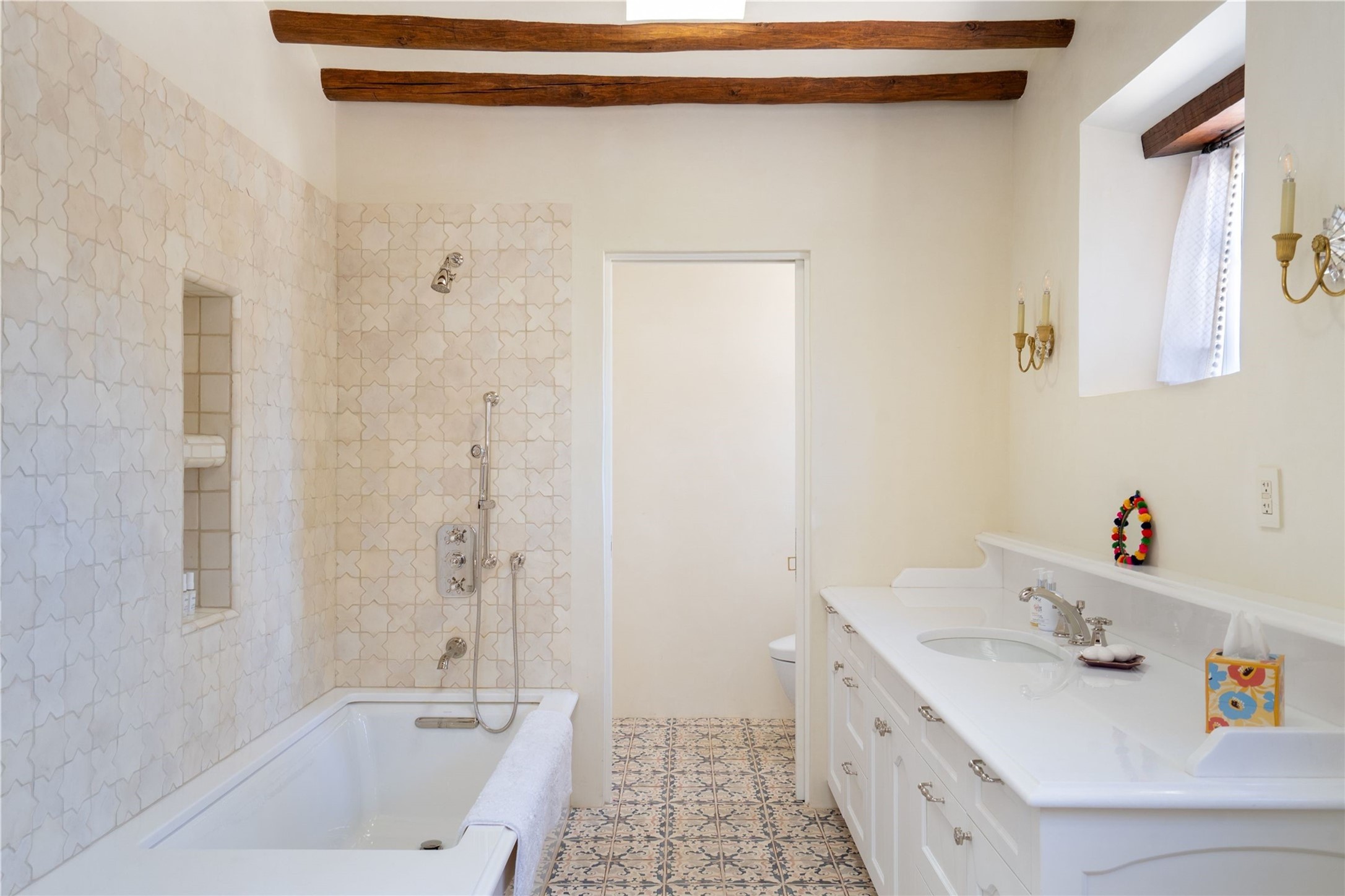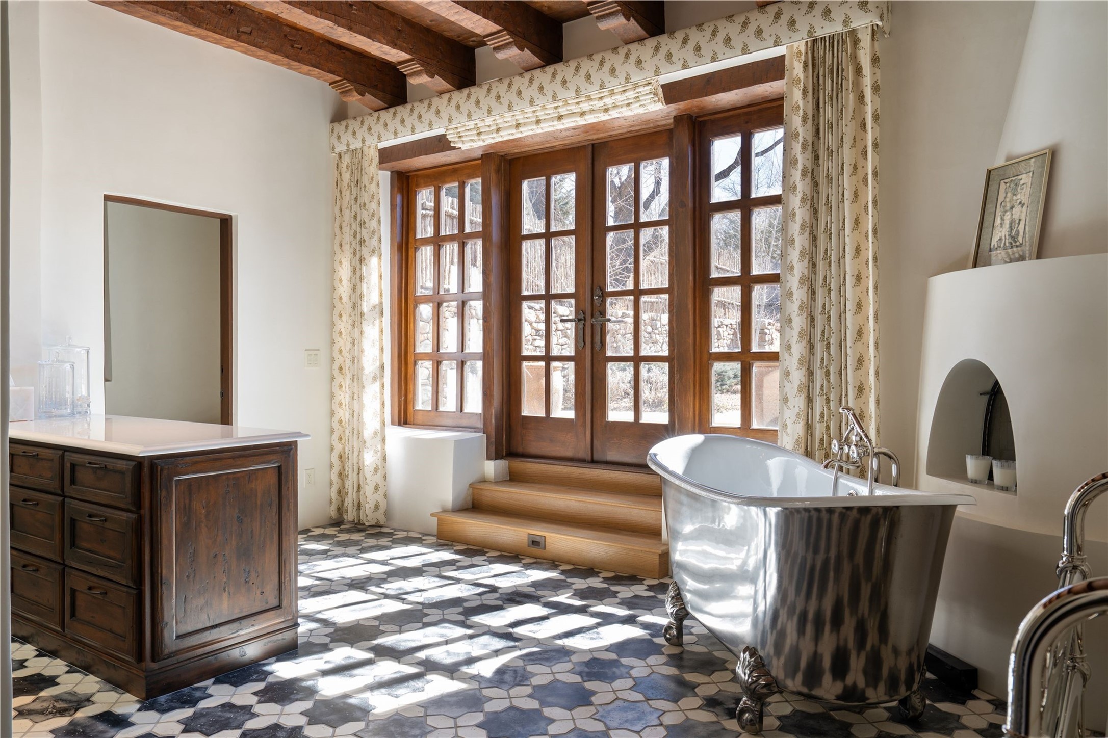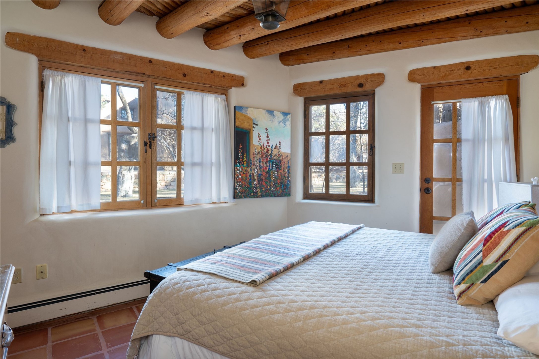 Experience the timeless elegance of The De La Pena/Frank Applegate Residence, a distinguished historical treasure nestled in Santa Fe's coveted Historic Eastside. An extraordinary opportunity to own a true piece of Santa Fe history, this landmark estate sits on 1.78 acres along a private lane, just moments from world-renowned Canyon Road and its celebrated galleries, boutiques, and fine dining. Constructed in 1650, and recognized for its National Historic Status, this remarkable property was acquired in 1845 by Spanish officer Francisco de la Pea and later purchased by esteemed artist and architect Frank Applegate. Meticulously restored to honor its past while seamlessly integrating modern luxury, the estate is designed around a picturesque placita courtyard, with a stunning 5-bedroom, 7-bath main residence and a welcoming guest casita. With every detail reflecting the finest level of artisanal craftsmanship, this incomparable estate offers a custom wine cellar with refrigeration, two garages, a clay tennis court, a ramada, and a private well for irrigation. The idyllic outdoor areas offer fabulous entertaining spaces, mature trees, multiple courtyards, along with a lush lawn, portals, and an abundance of privacy. Modern amenities are seamlessly integrated into the estate with a Control 4 Smart Home operating system. With its premier location and unparalleled provenance, this estate is a rare gem for discerning buyers seeking a luxurious lifestyle in the heart of Santa Fe.