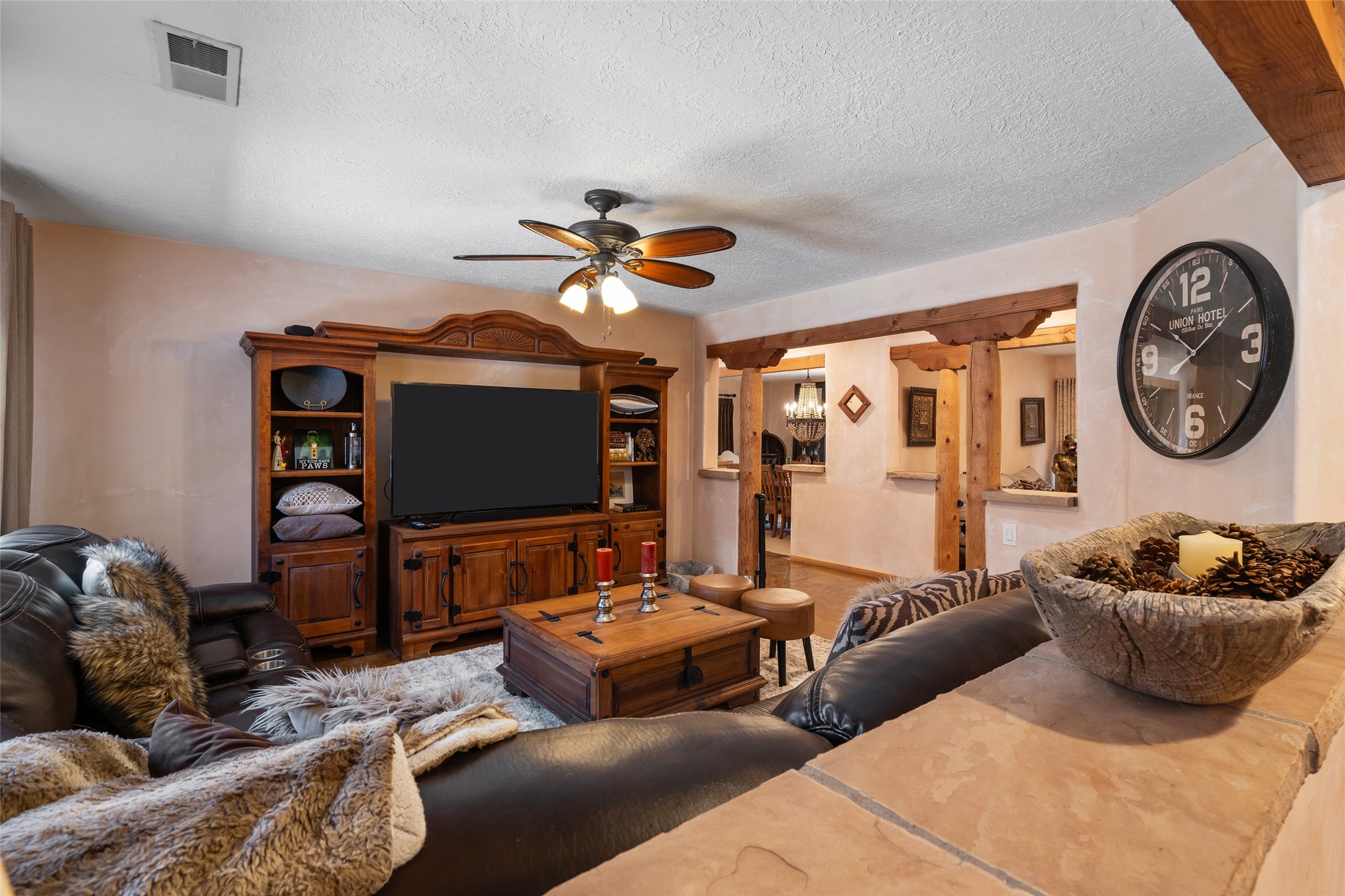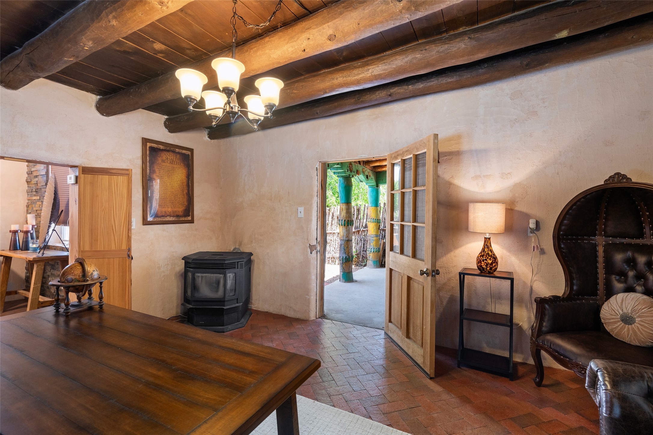 Step into a piece of history at 2 Short Rd in the charming community of Nambe, Santa Fe County. Constructed in 1904, this extraordinary adobe home offers a unique blend of historical charm and artistic legacy. With 3,223 square feet of expansive living space, this home invites you to explore its timeless character and stories etched into its walls.Set on nearly half an acre (.479 acres) of serene landscape, the property provides a peaceful retreat with ample space for outdoor enjoyment. A standout feature is a mural gracing the back portal--a stunning work of art that seamlessly marries the cultural richness of the past with the vibrant artistic spirit of the present.This is not just a home; it is a sanctuary where history and art come together to create an unforgettable living experience. Discover the allure of Nambe, and make this iconic piece of New Mexico's heritage your own. The beautiful mural on the back portal was painted by the Seller's grandfather and is featured in a book "Adobe! Homes and Interiors of Taos, Santa Fe and the Southwest by Sandra and Laurel Seth.