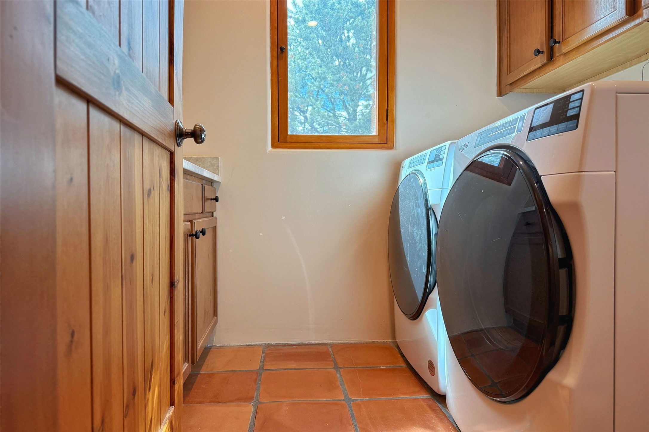 Southwest Elegance Meets Modern Luxury - Tesuque Estate Near Santa FeExperience timeless charm and refined upgrades in this exceptional Tesuque estate just 15 minutes from downtown Santa Fe. The property includes a beautifully renovated main house, a private guesthouse, and a versatile third structure ideal as a studio, barn, or additional guest quarters.The main residence showcases superior craftsmanship with diamond plaster walls, Loewen windows and doors, and Saltillo tile floors. The chef's kitchen features SubZero and Wolf appliances, an Asko dishwasher, an imported porcelain farmhouse sink, and striking Taj Mahal quartz countertops. The great room impresses with soaring ceilings, dual chandeliers, a wood-burning fireplace, and expansive western views, flowing onto two covered flagstone patios--perfect for indoor-outdoor living.The primary suite offers a luxurious retreat with its own fireplace, a spa-like bath with soaking tub, walk-in shower, dual pedestal sinks, and an adjacent study with fireplace and patio access. Two additional bedrooms complete the home--one with ensuite bath, the other with access to a nearby half bath. Comforts include radiant floor heating and central A/C.The guesthouse offers two bedrooms and two baths, with upgrades mirroring the main home: diamond plaster walls, quartz countertops, radiant heating, central A/C, and Loewen windows. Its primary suite features a kiva fireplace, soaking tub, and walk-in shower, while the second bedroom enjoys tranquil western views. A cozy living/dining area with kiva fireplace and a private flagstone patio complete the space.Set on a beautifully landscaped lot with mature junipers, fenced areas, and irrigated gardens, this private estate offers peace and elegance just minutes from the heart of Santa Fe.