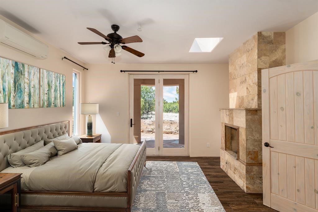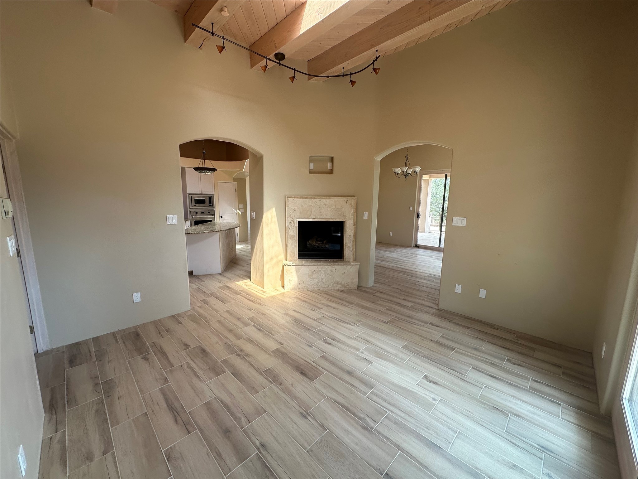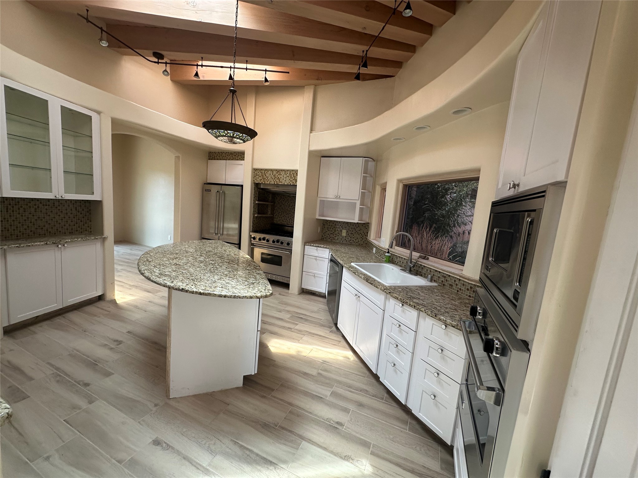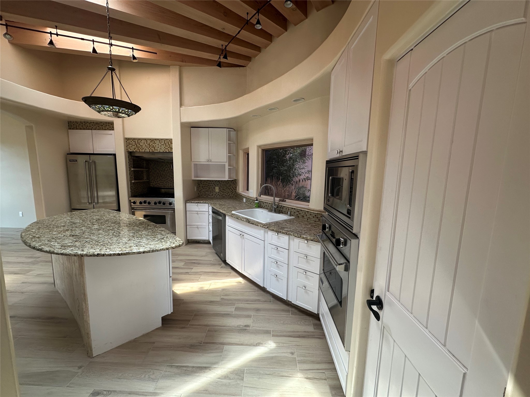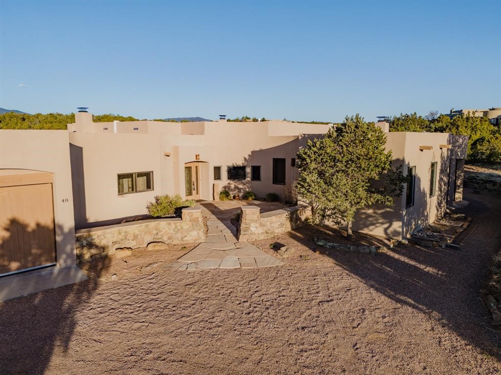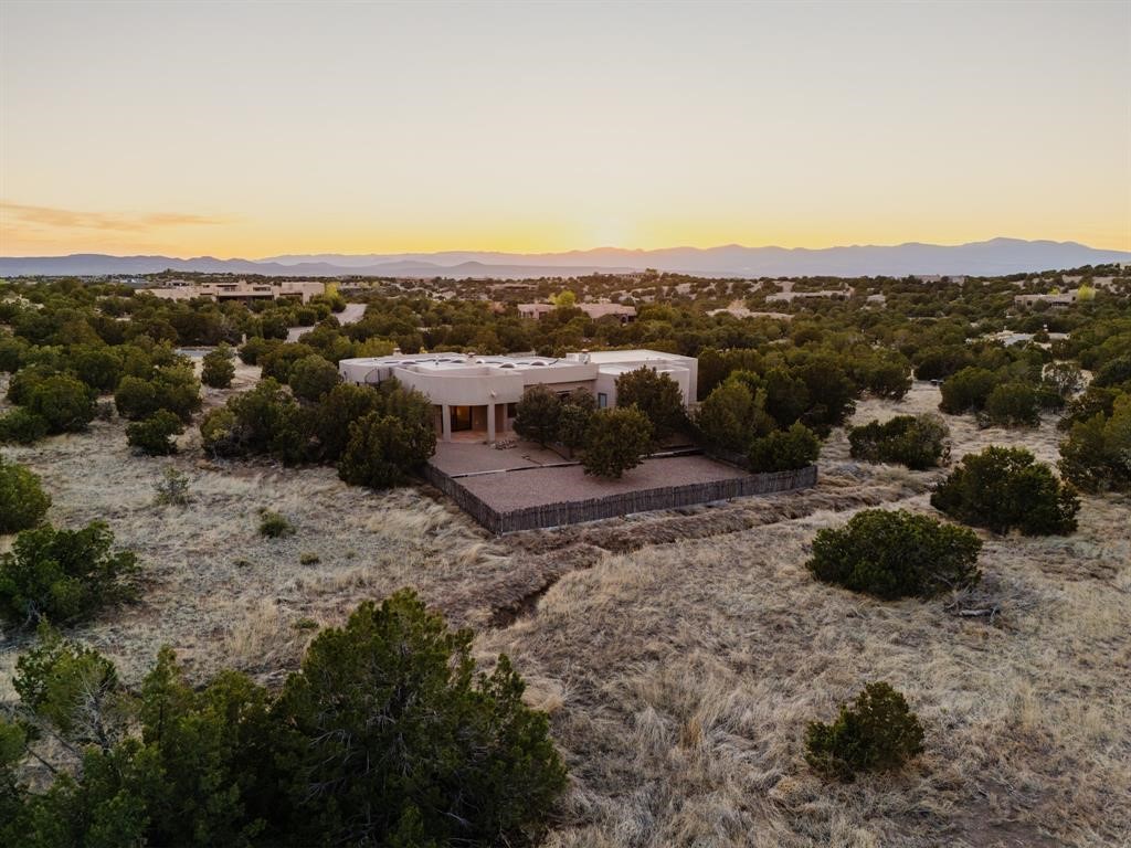 Luxury living in Sundance subdivision! This is where elegance meets natural beauty. This home is stunning with custom design and high-end finishes, an abundance of fireplaces, uniquely designed wood ceiling features and delightful nichos. You will find lovely outdoor portals, and an outdoor fireplace with lots of privacy to relax in a serene environment. Spiral staircase to the rooftop allows you to enjoy captivating views of the Sangre and Jemez. The gourmet kitchen features custom cabinetry, a high-end Viking stove, granite island that any gourmet cook would enjoy. 3 Bedrooms/3 1/2 bathrooms along with beautiful light filled living room, Formal Dining room, separate office as well as a guest wing with guest bedrooms with en-suite baths and their own private family room/media room. Enjoy the hiking path located directly behind the fenced-in back yard which leads to miles of La Tierrez hiking and biking. Your "Home Sweet Home" is calling your name.