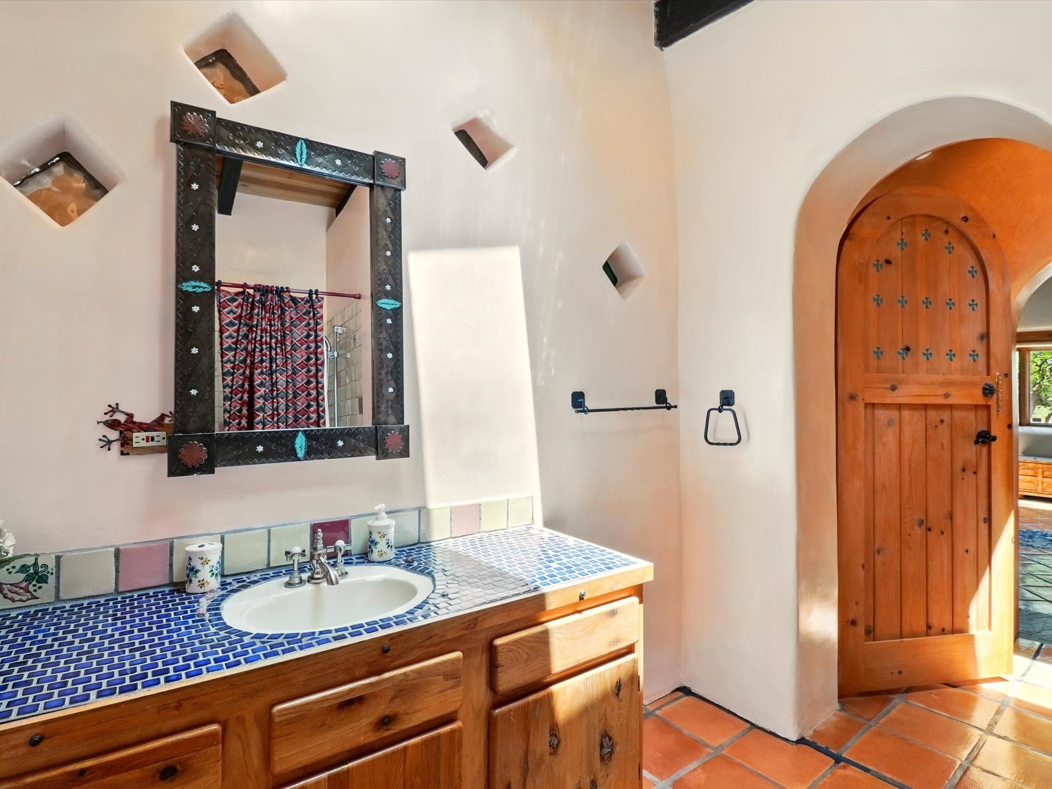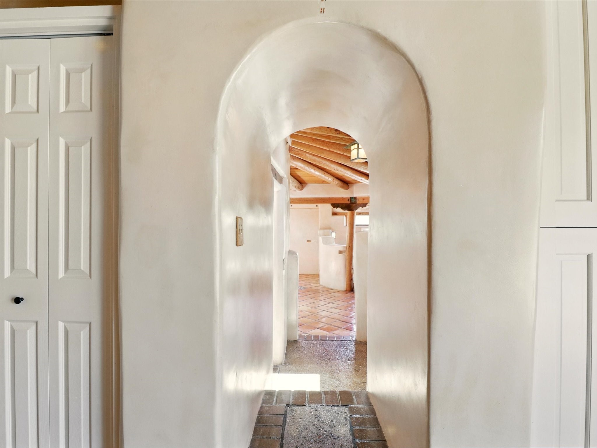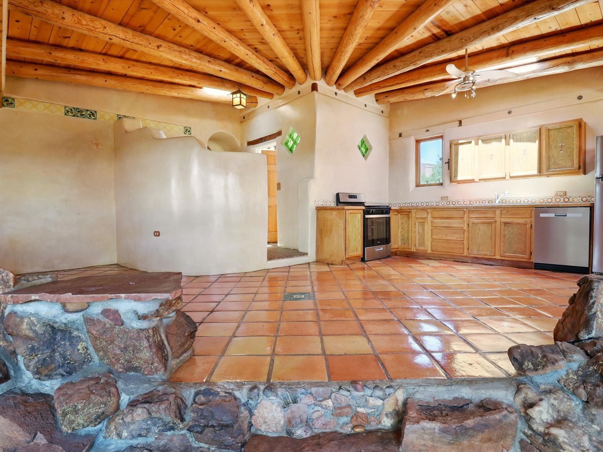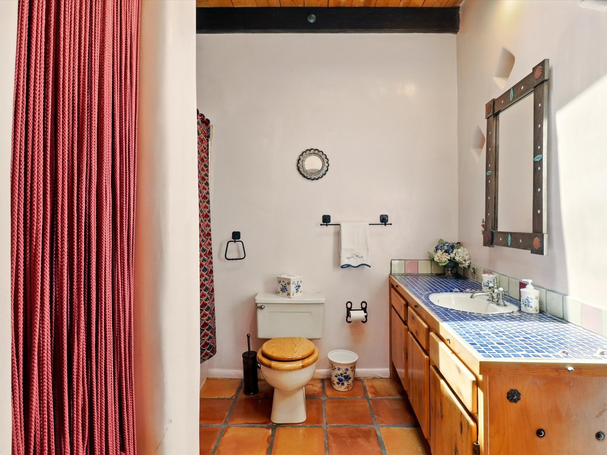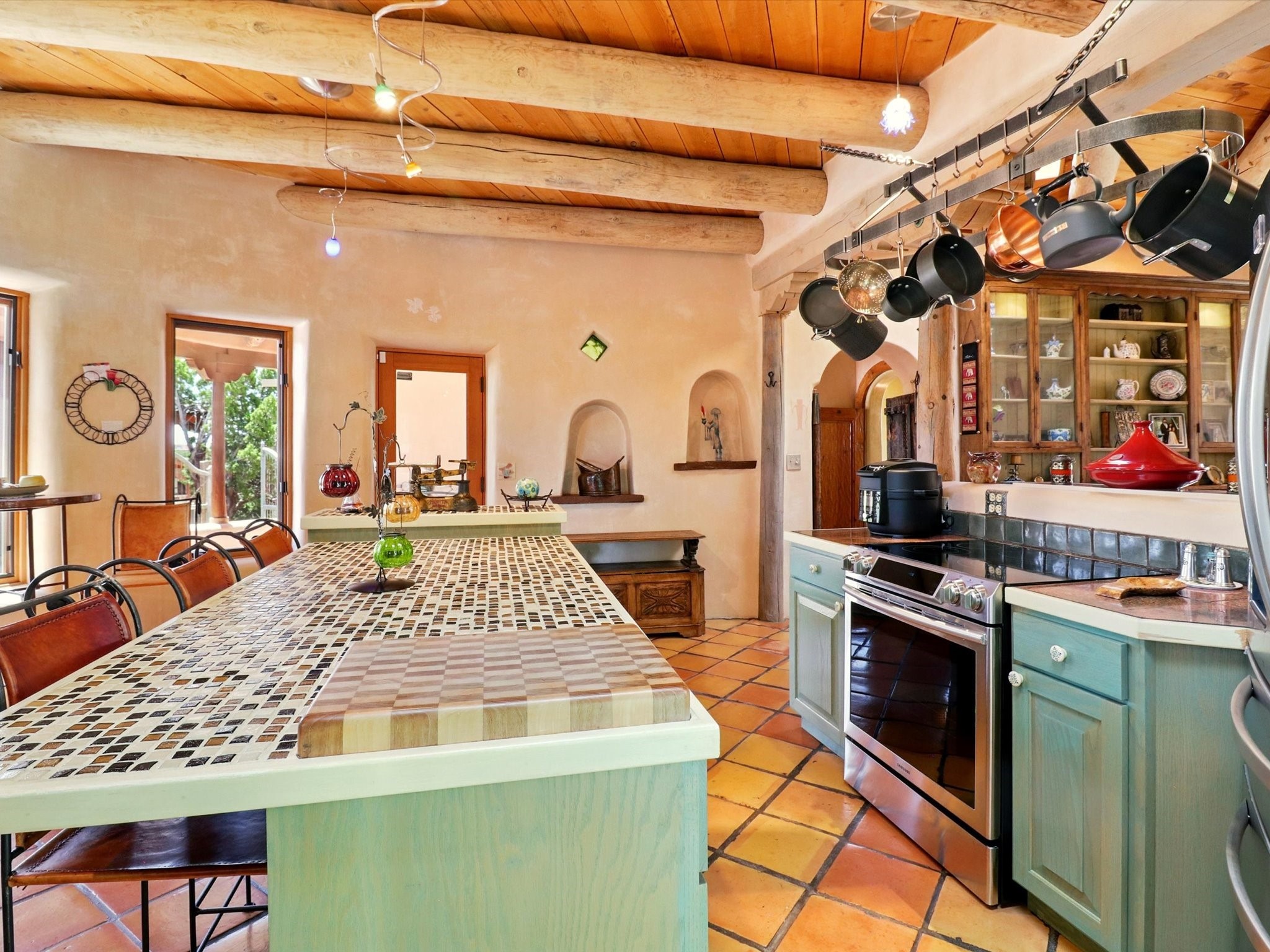 Enchanting Adobe Retreat with Guest Casita on 5 Private Acres - A timeless sanctuary nestled in the foothills of Santa Fe, where every sunrise brings serenity and every sunset invites reflection. For over three decades, this property has been cherished and curated, blending rich Santa Fe tradition with European influences.Begin your mornings on the covered kitchen patio, coffee in hand, as the sun rises over the Sangre De Cristo Mountains. Inside, the heart of the home unfolds with a kitchen island overlooking the living room's doors and windows -- framing an ornamental cherry tree and a 300-year-old pion tree.This custom adobe overflows with craftsmanship. Hand-carved beams, herringbone latillas, corbels, nichos, and structolite plastered walls speak to the region's architectural heritage. Thoughtful design details elevate the space: Venetian glass lighting, custom fixtures crafted by local artisans, and elegant Italian porcelain baths with satin nickel finishes from "Santa Fe by Design."Enjoy year-round comfort thanks to thick adobe walls, Marvin doors and windows, and radiant in-floor heating throughout the home. As the day winds down, indulge in a soak in the luxurious 6-foot clawfoot tub, gazing out the large picture window by sunset.Multiple portals -- two attached and two detached -- offer peaceful spots to unwind, each with its own perspective of the lush 5-acre grounds. Designed as an equestrian property, the land is both functional and magical, offering serenity, privacy, and space to explore.Included is a charming and fully private custom adobe guest house -- perfect for guests or as a proven income-generating rental.31 A&B Hondo Trail is more than a home; it's a living piece of art, a place of beauty, peace, and purpose. Come experience the enchantment for yourself.MAIN HOME HAS A NEW ROOF INSTALLED MAY 2025