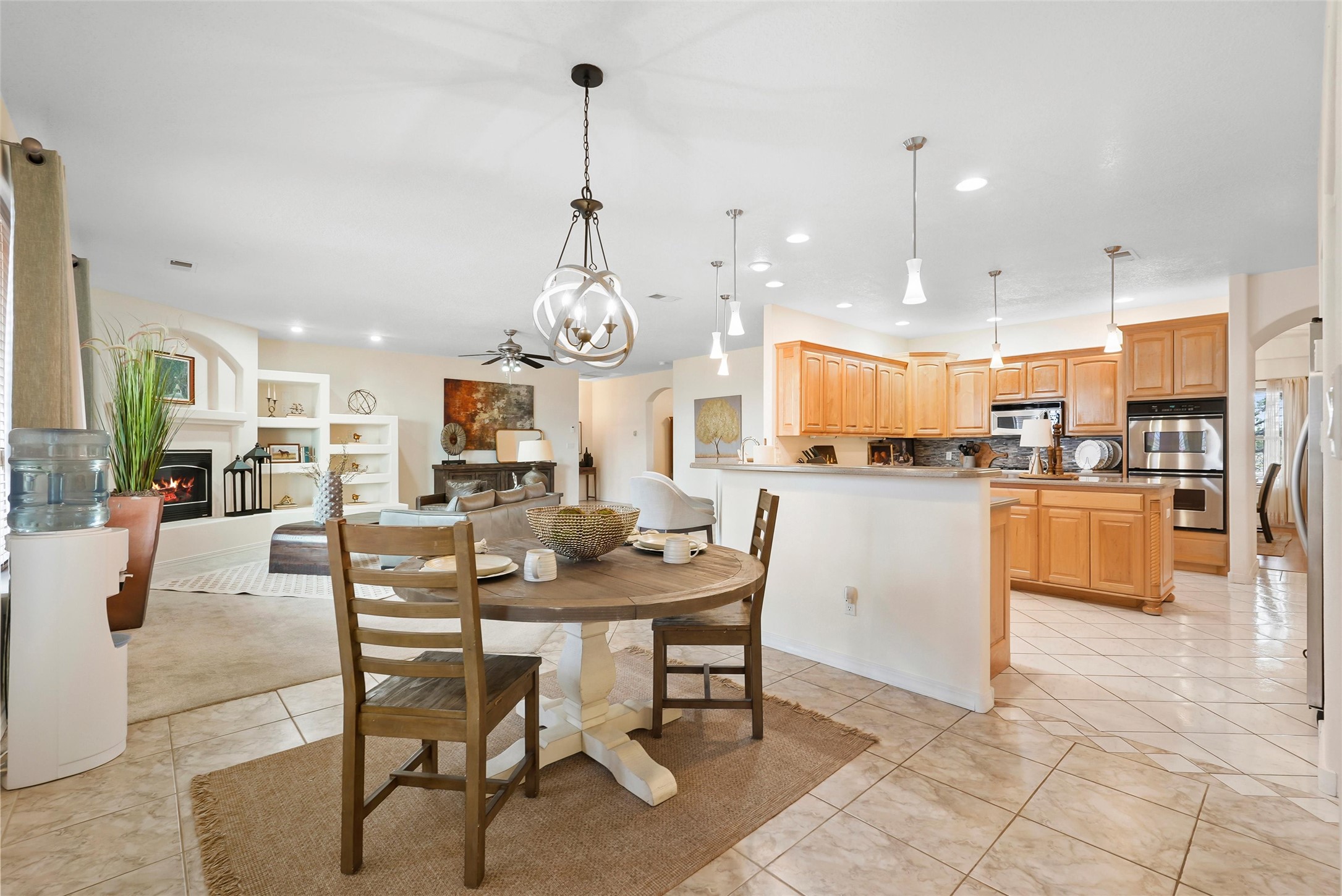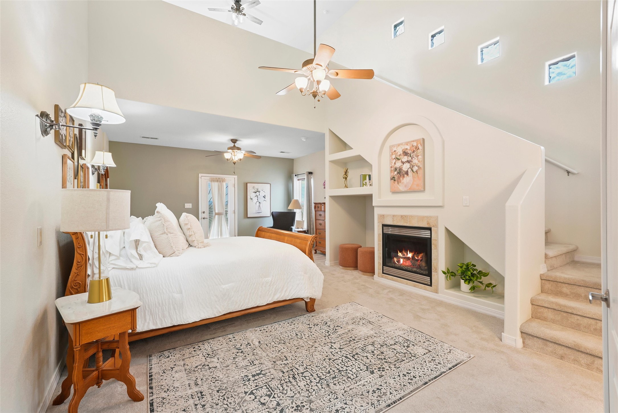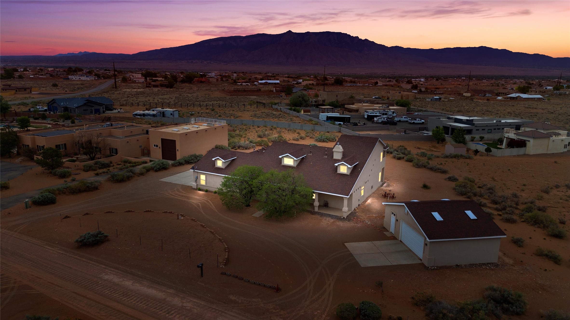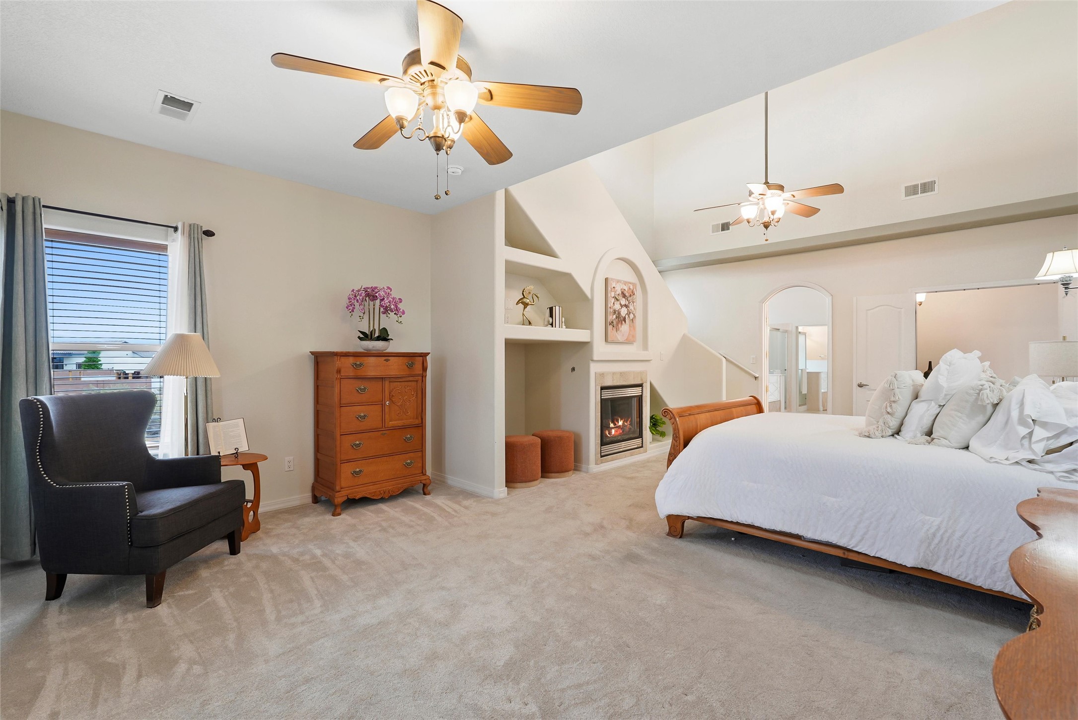 EVERY DETAIL WHISPERS ELEGANCE & EVERY ROOM INVITES YOU TO STAY. Nestled on 1.1 acre w/ 5 car garage spaces & radiant heating! Imagine evenings by the fireplace in the living room, or curling up in the primary suite with a second fireplace. Primary suite includes unique attached loft w/ balcony! This possible 4-bedroom, 2.5-bath home offers spaces to gather and retreat--from the formal dining room to the flex room w/ fireplace! Cook like a pro with double ovens, a built-in cooktop, island, bar, pantry, & a breakfast nook flooded with light. The master bath pampers w/ dual sinks, garden tub, & walk-in closet. Bring all your toys w/ both the attached & detached garage/workshop