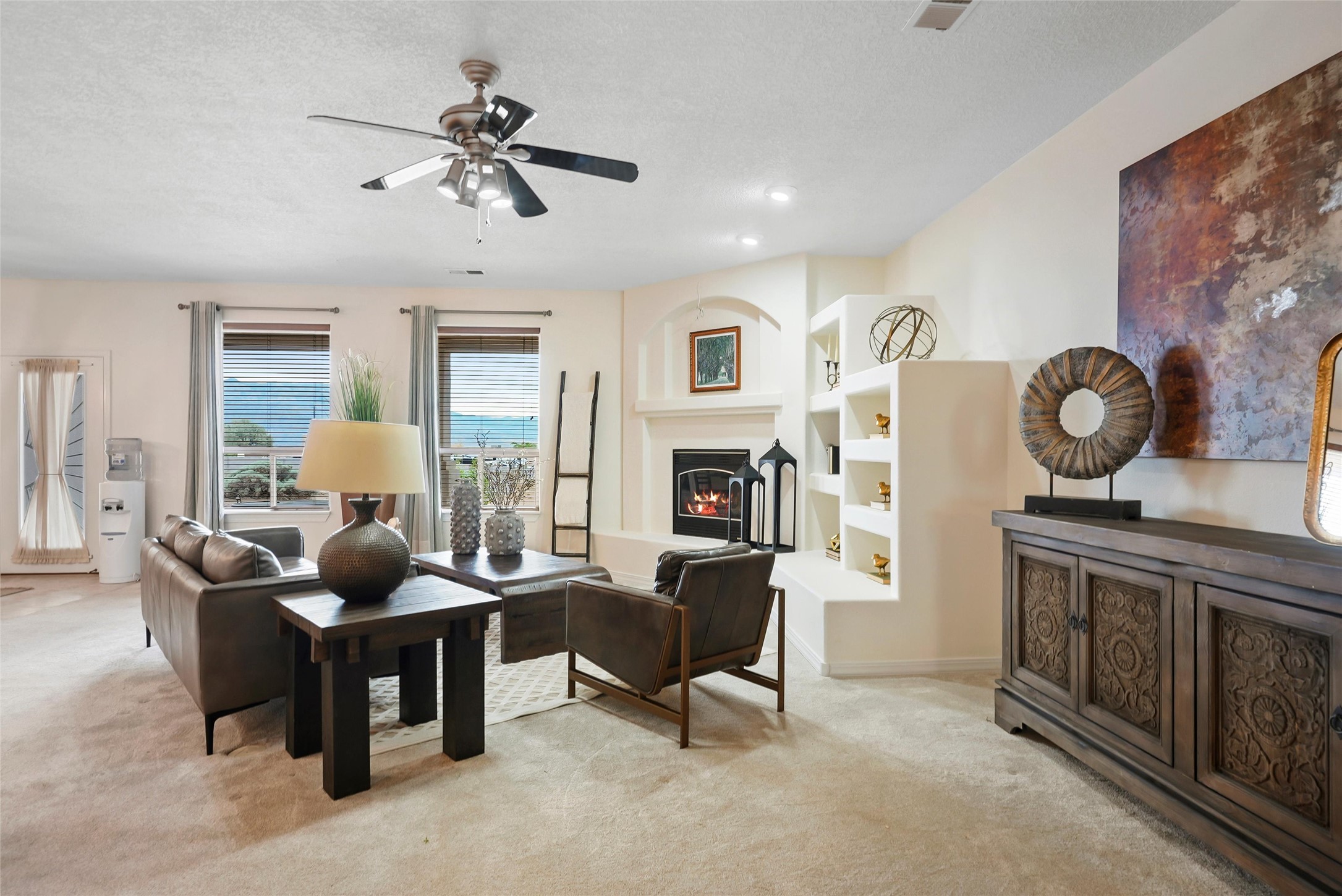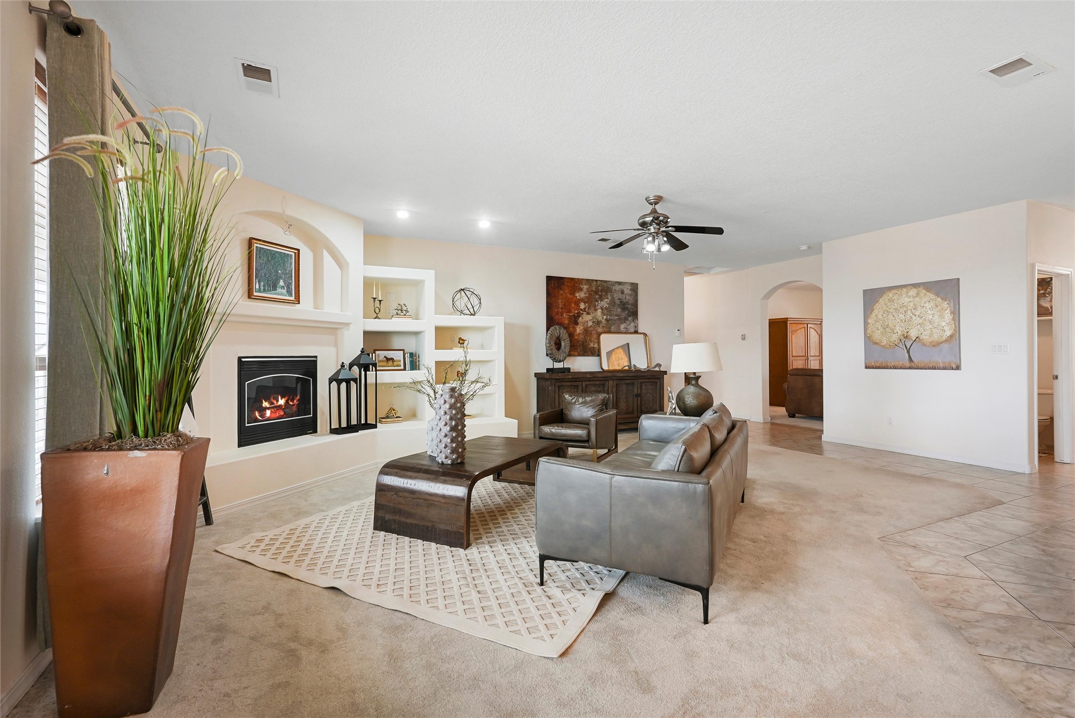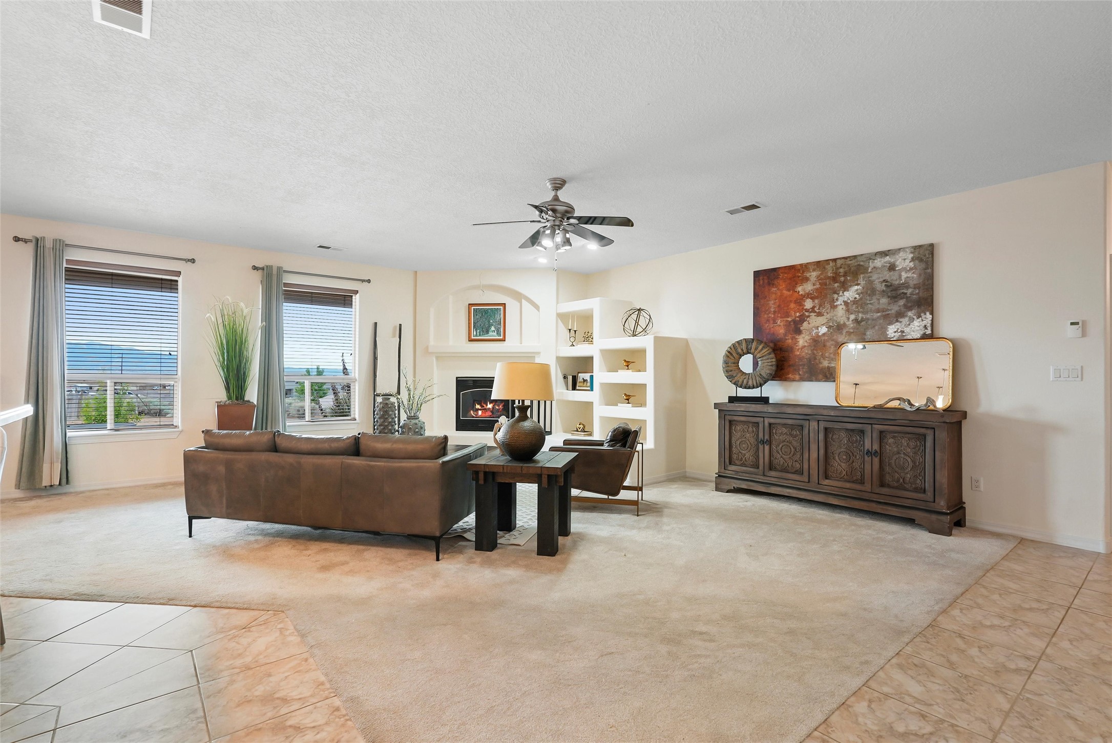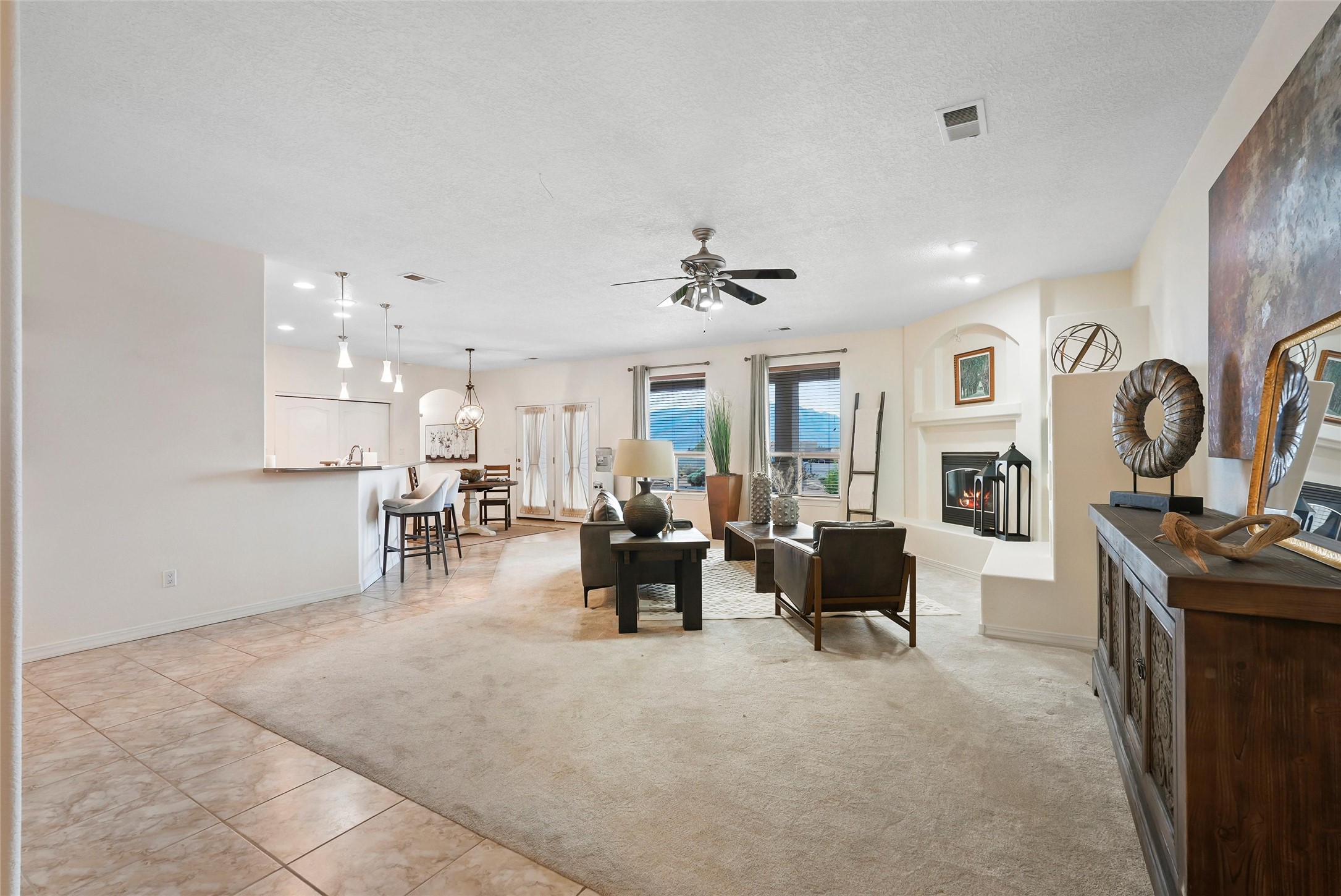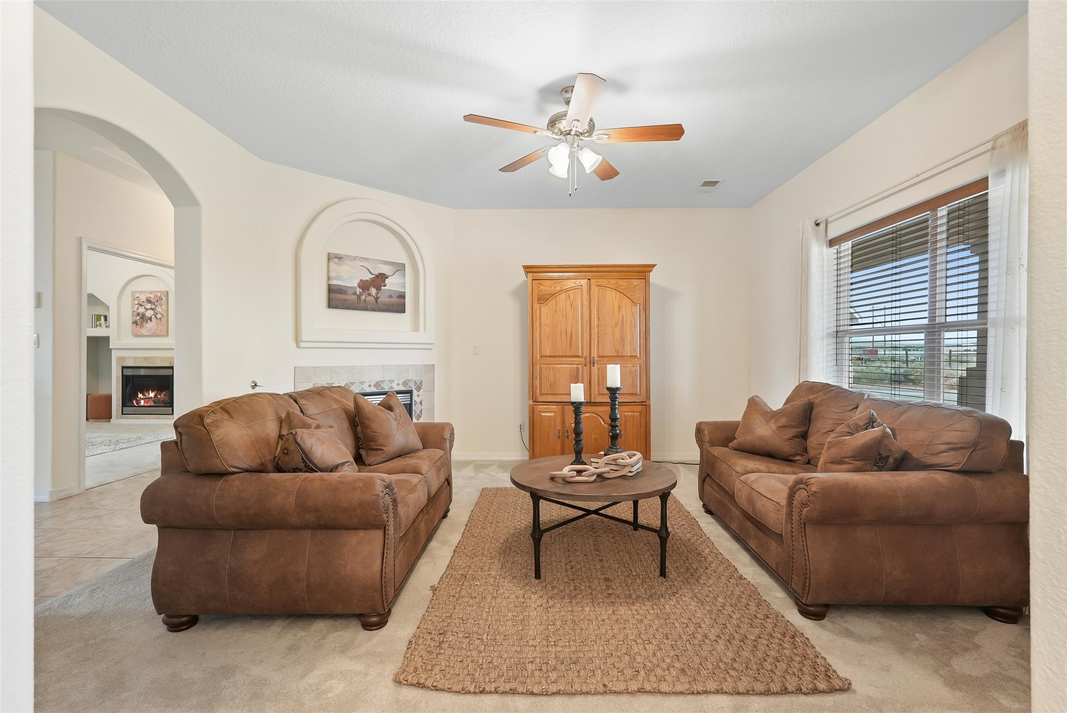 EVERY DETAIL WHISPERS ELEGANCE & EVERY ROOM INVITES YOU TO STAY. Nestled on 1.1 acre w/ 5 car garage spaces & radiant heating! Imagine evenings by the fireplace in the living room, or curling up in the primary suite with a second fireplace. Primary suite includes unique attached loft w/ balcony! This possible 4-bedroom, 2.5-bath home offers spaces to gather and retreat--from the formal dining room to the flex room w/ fireplace! Cook like a pro with double ovens, a built-in cooktop, island, bar, pantry, & a breakfast nook flooded with light. The master bath pampers w/ dual sinks, garden tub, & walk-in closet. Bring all your toys w/ both the attached & detached garage/workshop