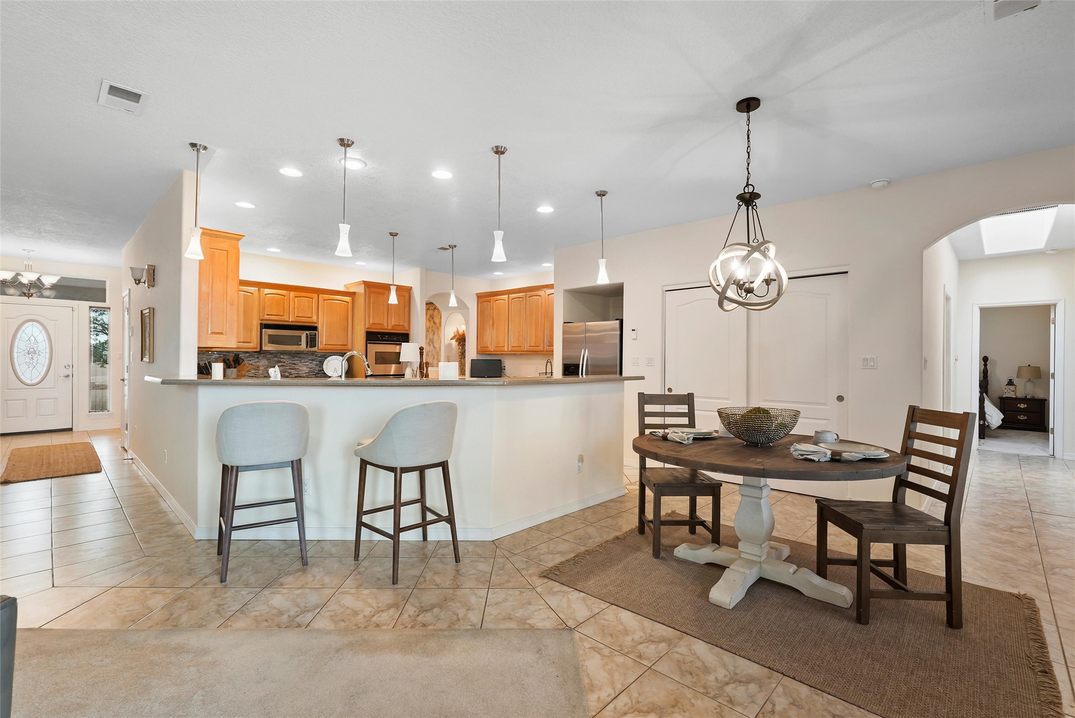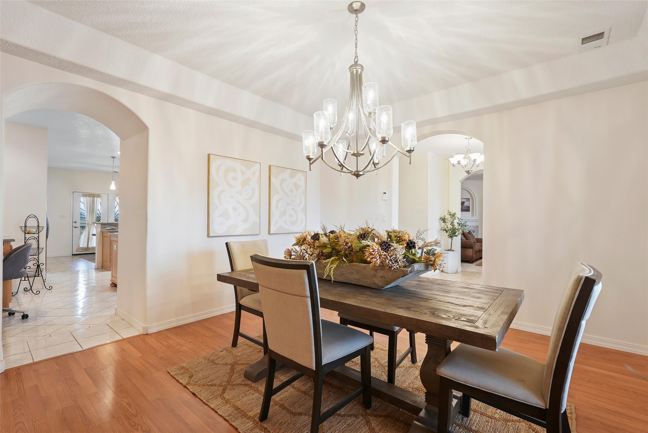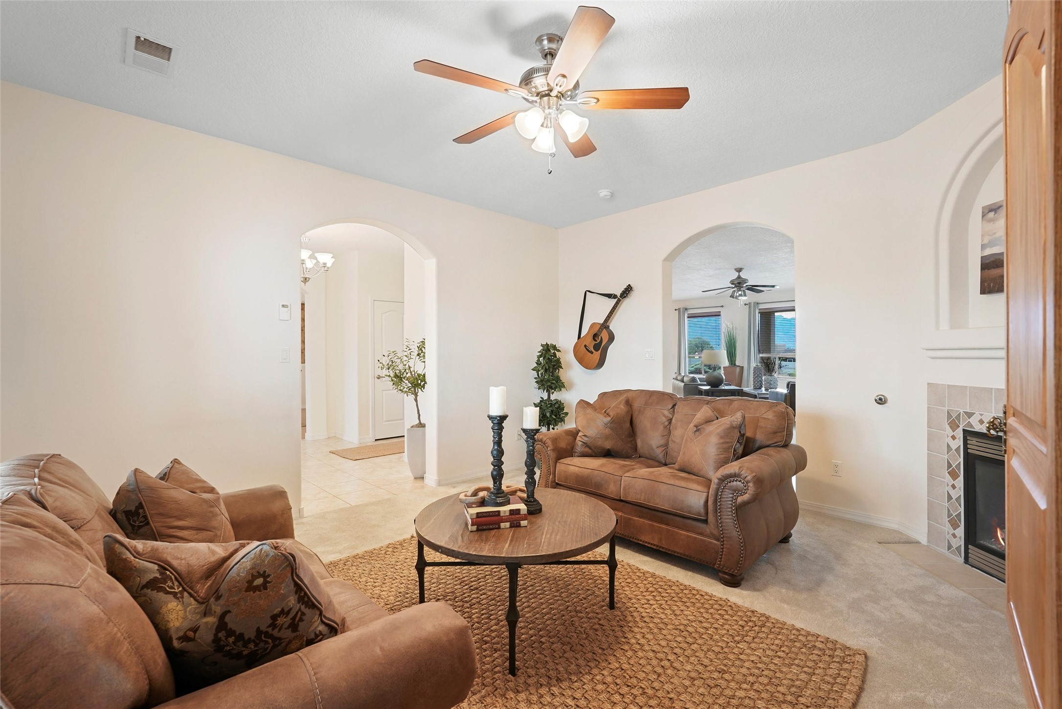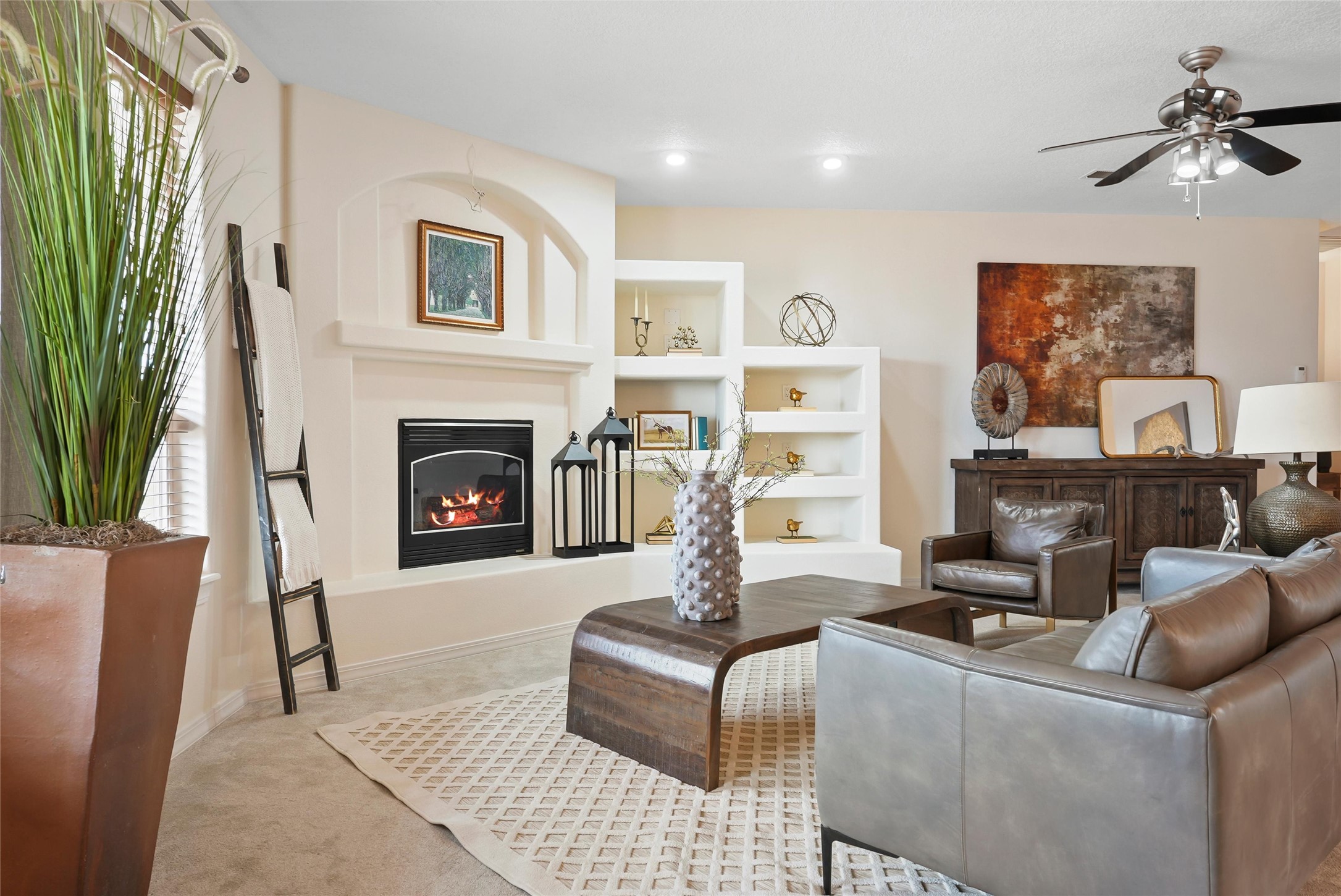 EVERY DETAIL WHISPERS ELEGANCE & EVERY ROOM INVITES YOU TO STAY. Nestled on 1.1 acre w/ 5 car garage spaces & radiant heating! Imagine evenings by the fireplace in the living room, or curling up in the primary suite with a second fireplace. Primary suite includes unique attached loft w/ balcony! This possible 4-bedroom, 2.5-bath home offers spaces to gather and retreat--from the formal dining room to the flex room w/ fireplace! Cook like a pro with double ovens, a built-in cooktop, island, bar, pantry, & a breakfast nook flooded with light. The master bath pampers w/ dual sinks, garden tub, & walk-in closet. Bring all your toys w/ both the attached & detached garage/workshop