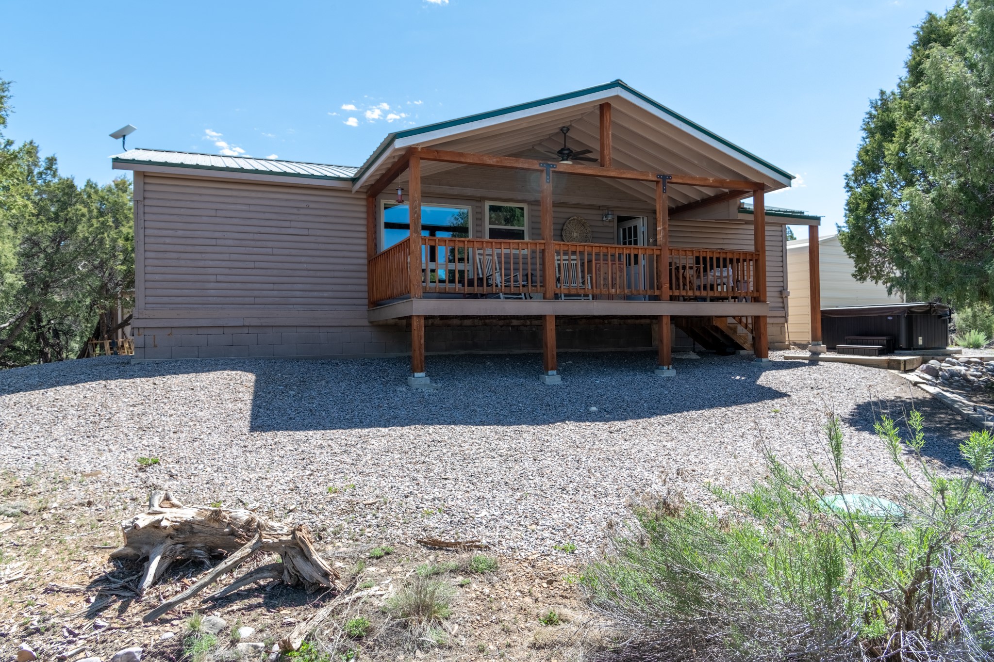 Welcome to your peaceful mountain retreat located in the tranquil Pinon Ridge subdivision of Los Ojos, NM. Situated on an acre, this single level, 3 bedroom, 2 bath home offers a harmonious blend of comfort and nature. This well-thought out split floor plan is spacious and inviting with a view from every room. Enjoy the breathtaking views of El Vado Reservoir from your north and south facing decks, while providing ample space to relax, entertain, and observe local wildlife in their natural habitat. Wrap up your evening enjoying the cool New Mexico temperatures while relaxing in your hot tub. This home comes equipped with a backup Generac generator and functional outbuildings including a carport and a detached, insulated and wired workshop perfect for hobbyists. Pinon Ridge amenities include a community well and maintained infrastructure. This lovingly maintained home is ready for you to embrace the peaceful mountain lifestyle. Whether you are seeking a year-round residence or a seasonal getaway, this home offers a unique opportunity to own a piece of New Mexico's natural beauty. Local amenities include the Stone House Lodge & Cafe offering dining, entertainment and social activities. The nearby, well-known community of Chama offers shopping and historic and natural monuments.