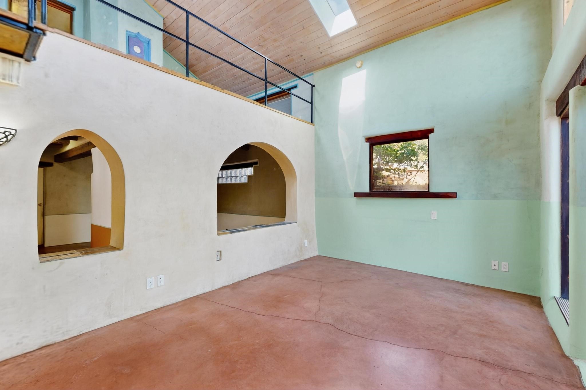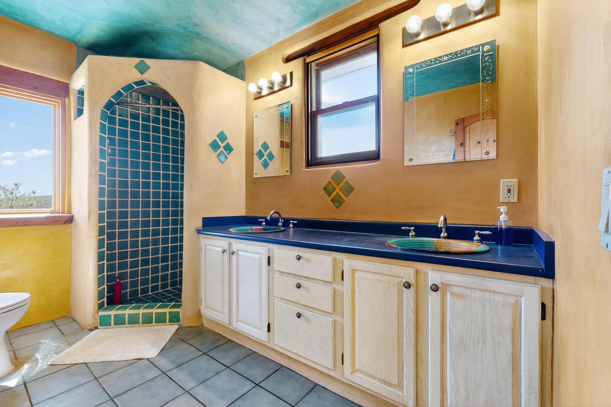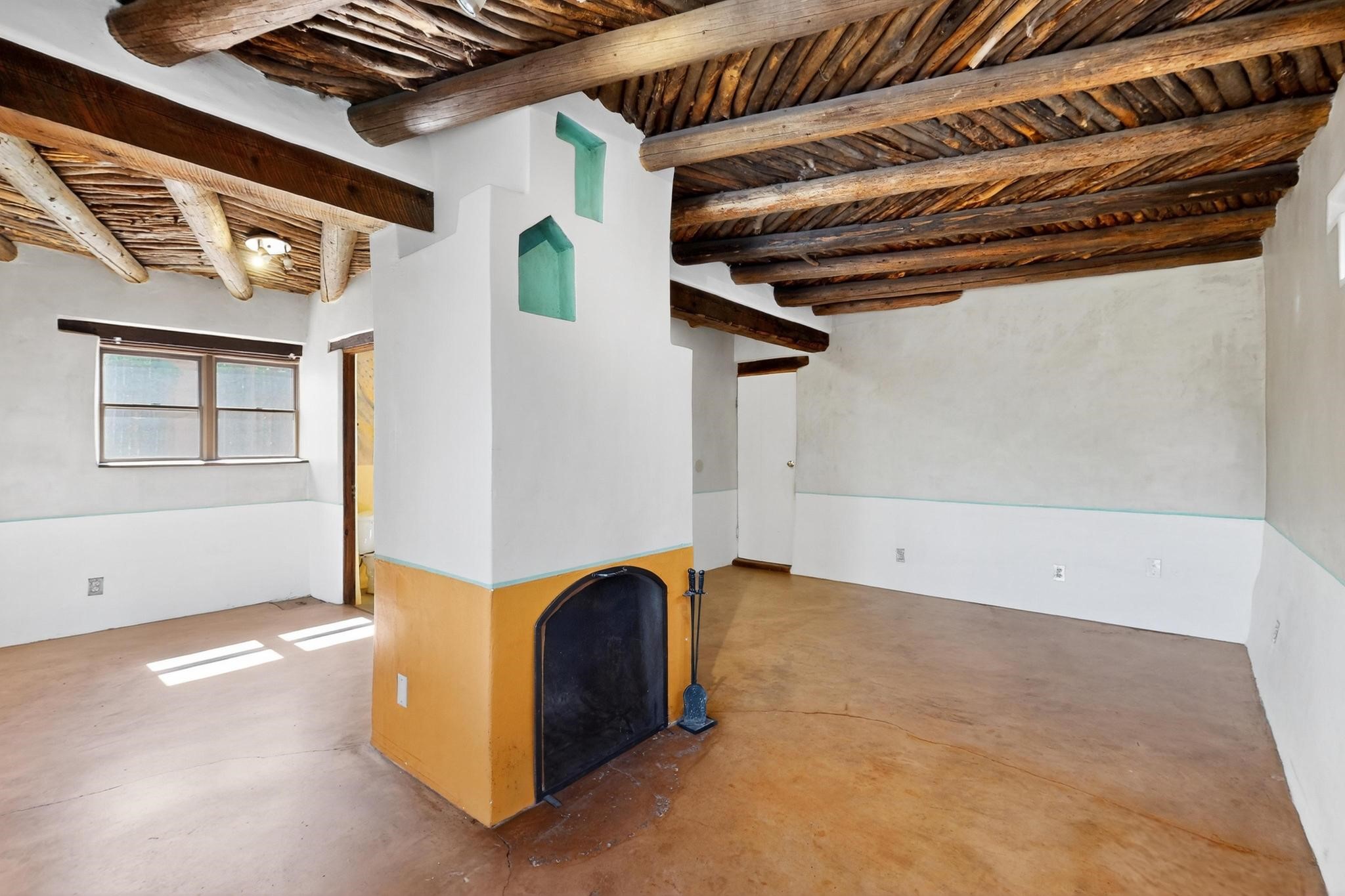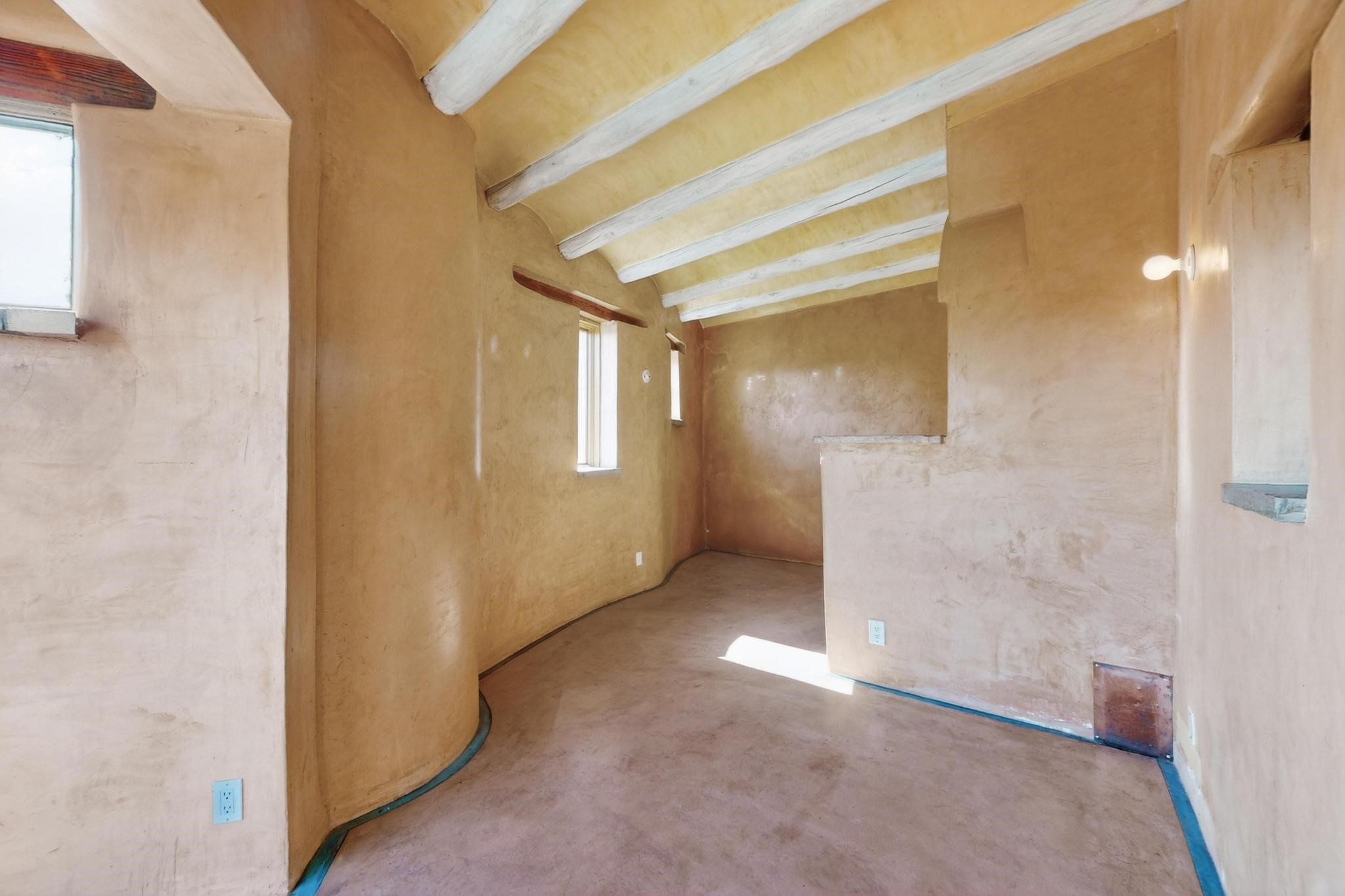 Two houses reside on this beautiful 5 Acre property that is nestled among old growth pine trees, offering numerous possibilities and conveniently located about 20 minutes from town The property features two distinct homes and a studio/workshop, all within a peaceful natural environment. House #A includes 2 bedrooms, 1 bath, fireplace, stained concrete floors, hard trowel plaster walls, radiant heat, a loft, and vigas, and a private deck. House #B known as the "Lily Pad House" offers 3 bedrooms, 2 baths, fireplace, saltillo tiles, vigas, radiant heat, hard trowel plaster, wood floors, vigas, spacious kitchen, portal, and delightful koi pond with lilies. Additionally, there is a versatile studio/workshop, consisting of an enclosed vintage travel trailer perfect for guests, and an attached site-built studio/workshop, providing multiple potential uses. The property also benefits from a private well, storage sheds, and no Homeowners Association.