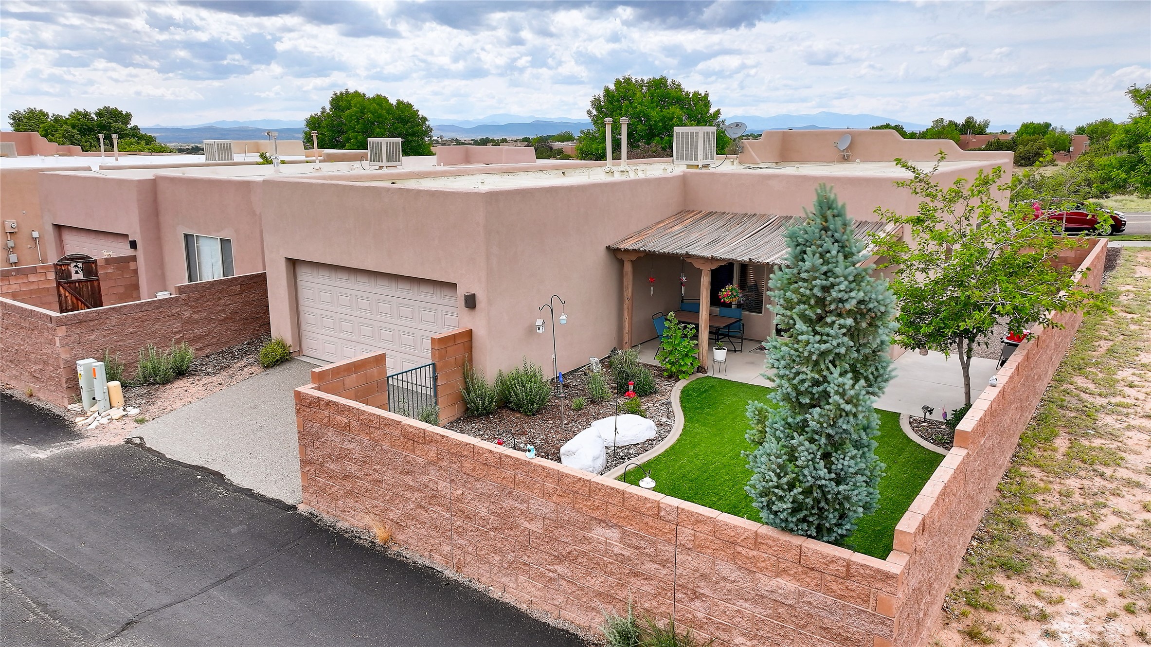 Well loved and cared for home. Move-In Ready with thoughtful touches! Why wait to build? Well designed, this updated lovely home with a newer roof, stucco, & appliances. Spacious layout and great outdoor space. Lots of privacy, end unit with open space and views surrounding it. One level, light and bright & impeccably clean. Guest parking out front of home. 2 car attached garage off alley for easy access. HOA includes trash pickup, road maintenance & snow removal. Community parks, walking, biking and hiking trails everywhere! The open-concept design combines the large kitchen dining area and the main large living room space. Outside, the covered portal showcases to a private backyard oasis enclosed by a privacy wall. Beautiful landscaping, combined with astroturf for pets, allows for beauty with low maintenance. Night time skies for relaxing while stargazing at night. Located in the highly desirable Rancho Viejo community, this home is part of a unique village concept dedicated to open space. With more than 14 miles of scenic walking trails and numerous parks, residents enjoy a serene and active lifestyle. Plus, you're roughly 14 miles from the Santa Fe Plaza, making it easy to experience all the culture, dining, & entertainment Santa Fe has to offer. Don't miss this rare opportunity to own this newly updated home in a tree filled community--schedule your showing today, this one won't be on the market long!