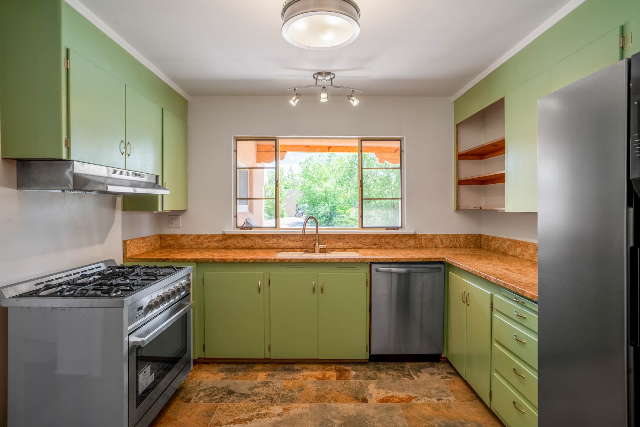 Stamm-built 3-br, 2-ba home located in highly sought-after Casa Solana. This 1,433 sf residence blends classic Santa Fe charm with fresh updates. Discover a warm & inviting interior featuring rich hardwood, slate & tile flooring. The living room centers around a Kiva fireplace, perfect for cozy evenings. With all-new lighting, fresh paint, the house is move-in ready! The kitchen has new appliances & both bathrooms have been redone. Outside, enjoy the clean look of new stucco. This property offers easy access to parks, trails, & all the culture & charm SF has to offer, as well as, close proximity to Casa Solana shopping ctr for grocery, restaurants, exercise & more.