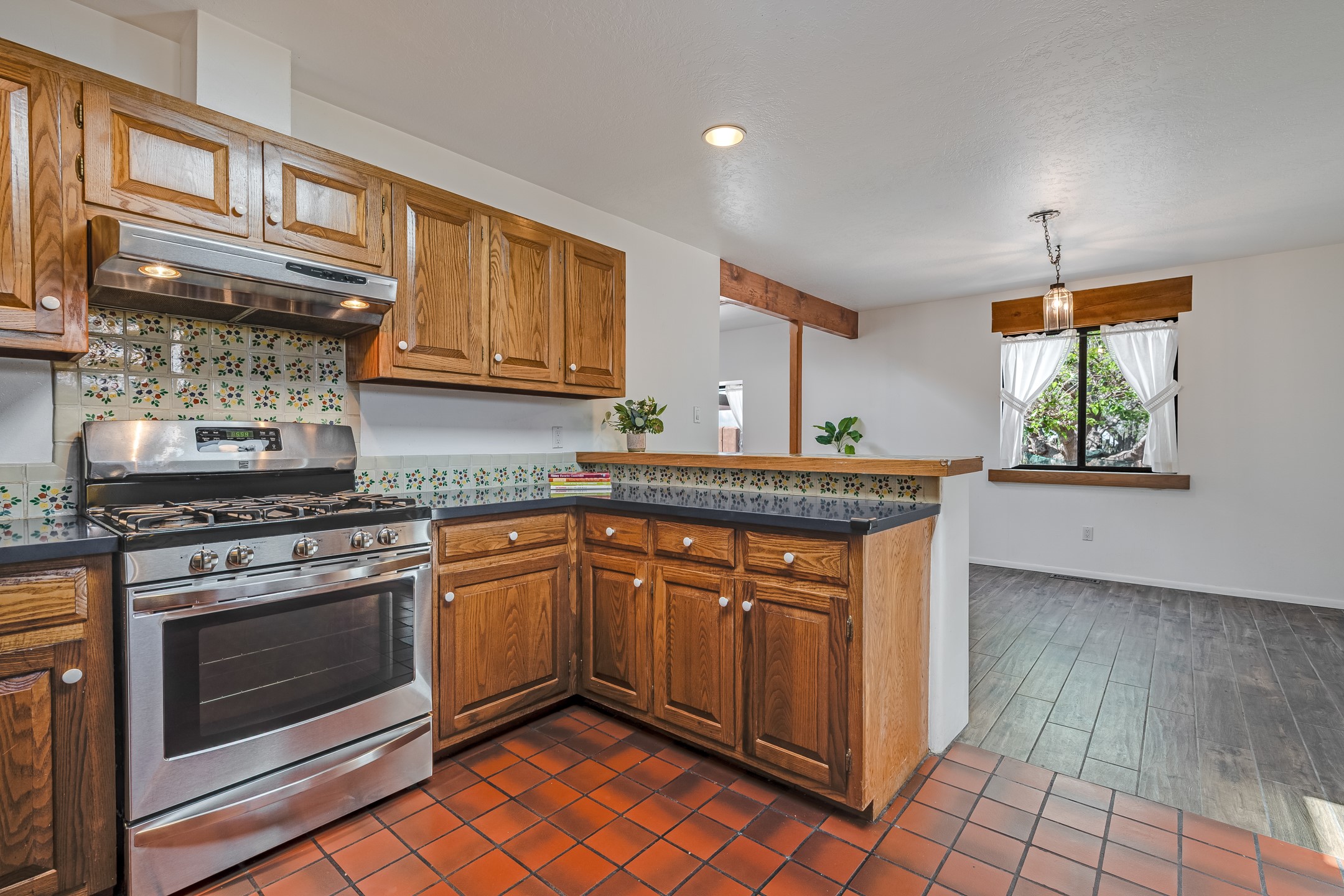 This move-in ready, DeVargas Heights home offers +/- 1,900 square feet of comfortable living space on a generous corner lot. The well maintained home features a classic, single-level floorpan with 3 bedrooms and 2 bathrooms, a central kitchen, dedicated living & dining areas, plus a large bonus sunroom with wood-burning stove. Tile flooring, high ceilings, and a cozy kiva fireplace add warmth and light to the interior. Outfitted with stainless steel appliances, and new countertops to enhance the sturdy cabinetry, the kitchen seamlessly transitions from intimate dinners to entertaining guests. The spacious primary bedroom is a peaceful retreat, while the two additional bedrooms offer flexibility for guests or a home office. Outside, the expansive 0.4 acre property boasts mature trees, established high desert plantings, outdoor patio with pergola, and ample room for outdoor living or gardening. A two-car garage offers additional storage or space for hobbies while the new roof c. 2018 and recent stucco will provide peace of mind for years to come. Located near parks, healthcare facilities, and within the Wood Gormley Elementary School footprint, this home combines comfort and practical amenities with Santa Fe charm, in a sought-after Santa Fe neighborhood. **See Broker Remarks for additional details, as provided by Seller.