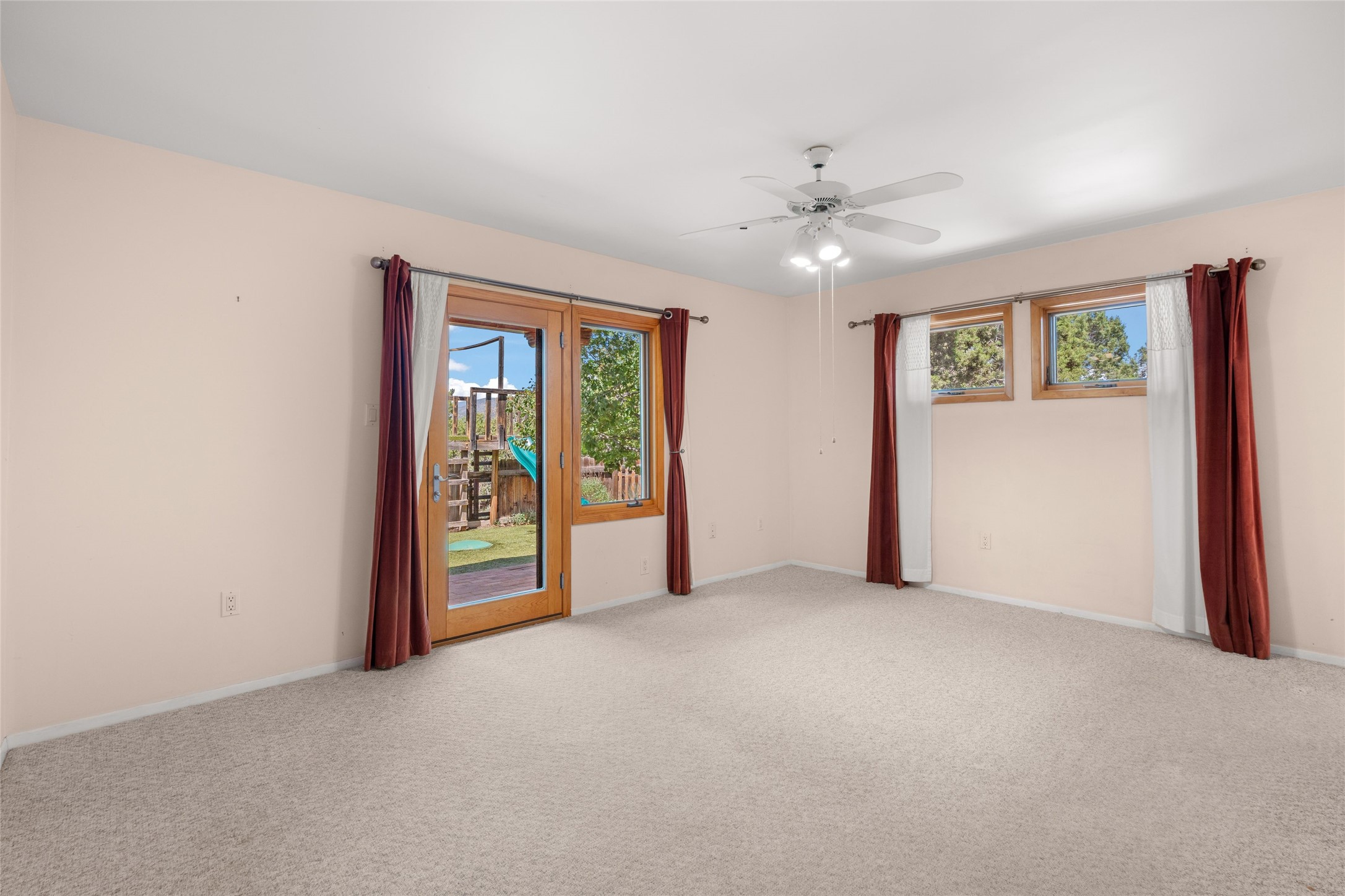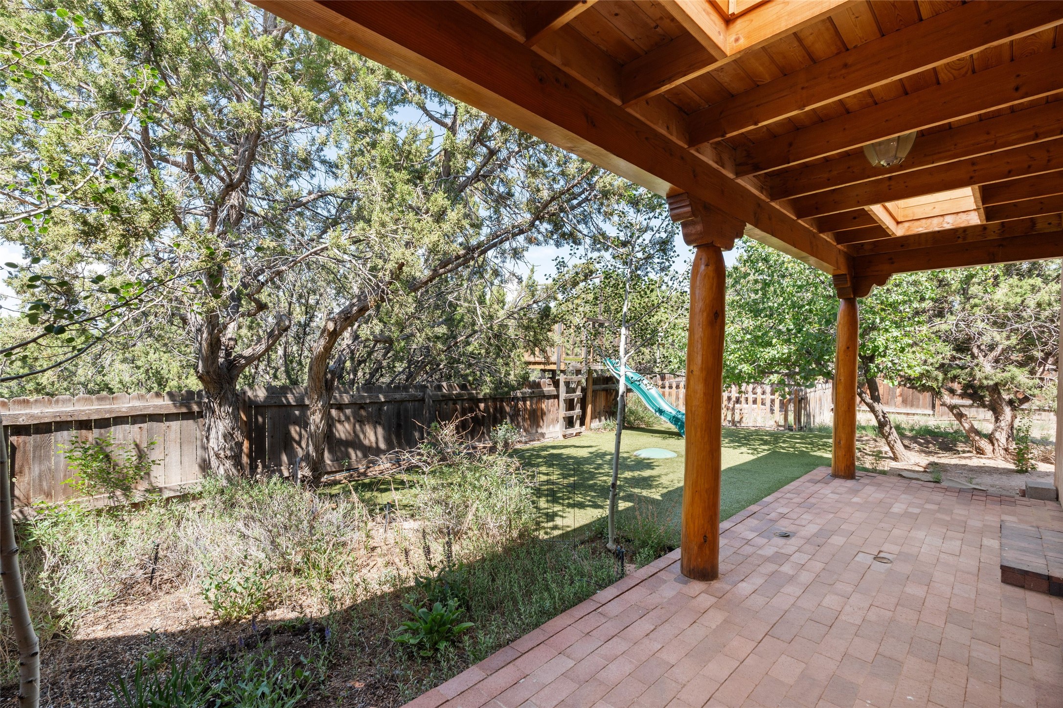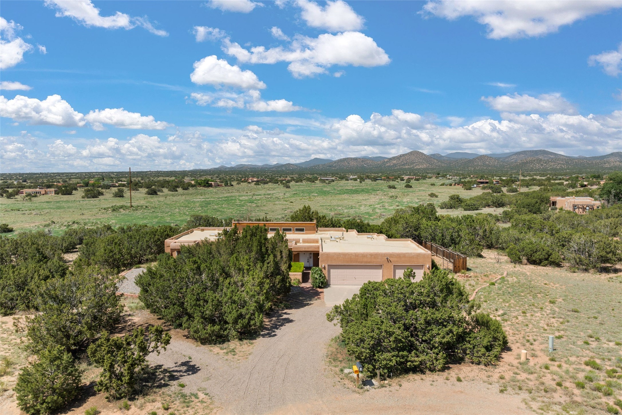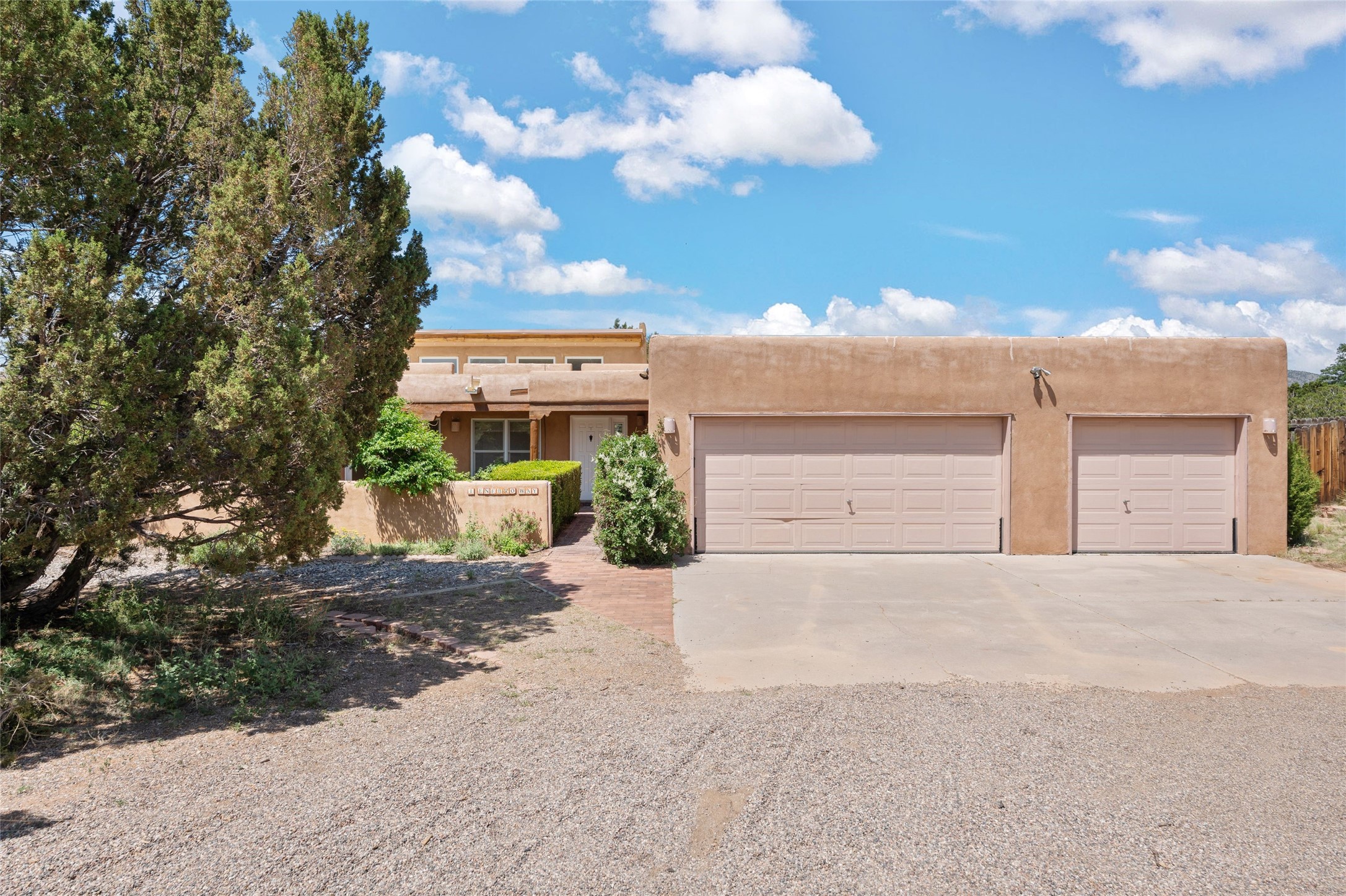 Great four-bedroom, four-bathroom home with a three-car garage, offering ample office or workspaces and storage. The home features a brand-new roof! This beautiful home backs up to open space and is located on a quiet cul-de-sac. It also has a private well. The floor plan features a mudroom entry, a separation of bedrooms, and one bedroom that could serve as an office. Additionally, there are built-in desks in the supporting bedrooms and window bancos, as well as formal and informal dining rooms, and a large kitchen with excellent counter space in the gourmet kitchen. The living room has Vigas and a gas Kiva fireplace. Be sure to take a look at this home!