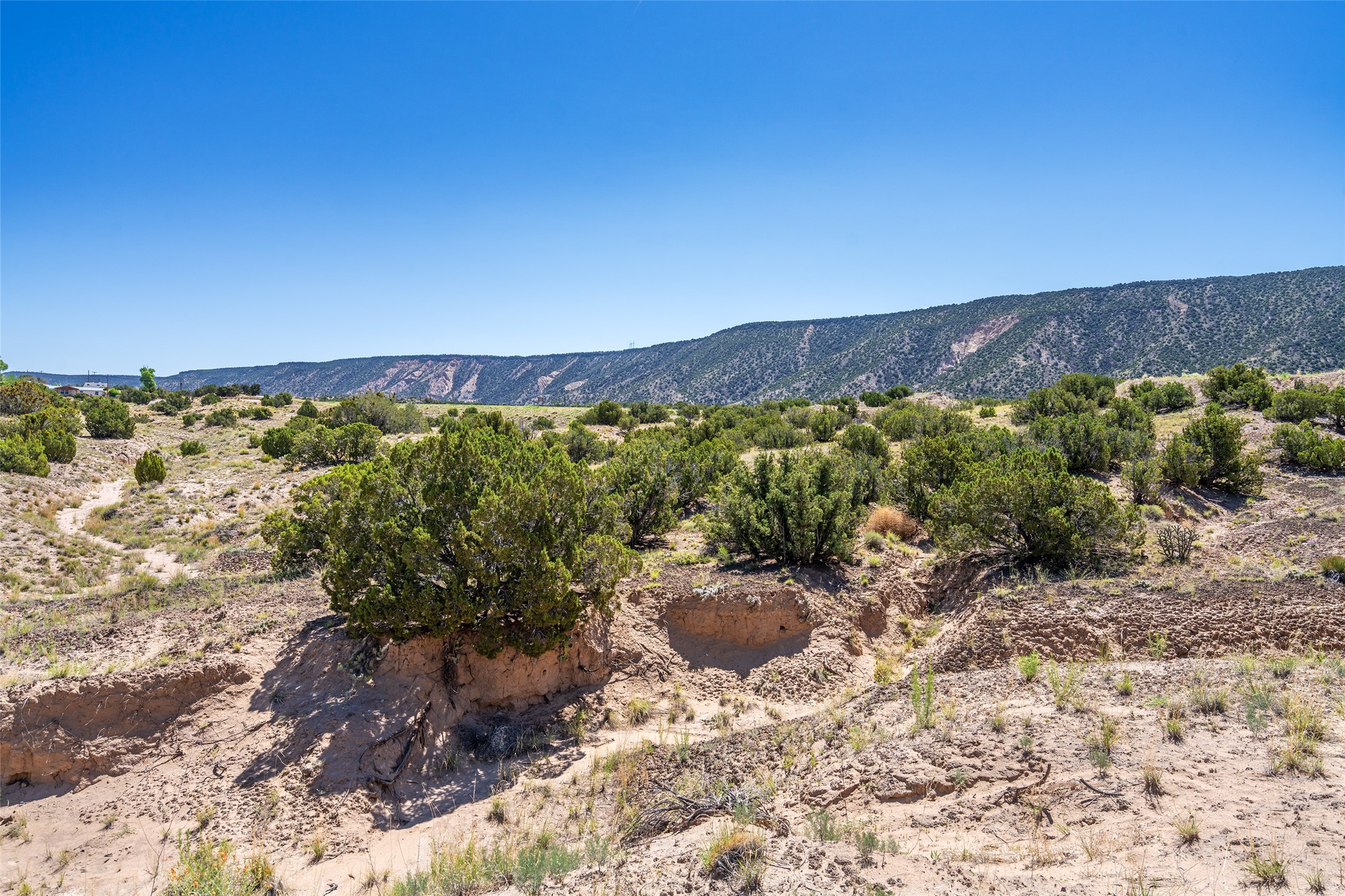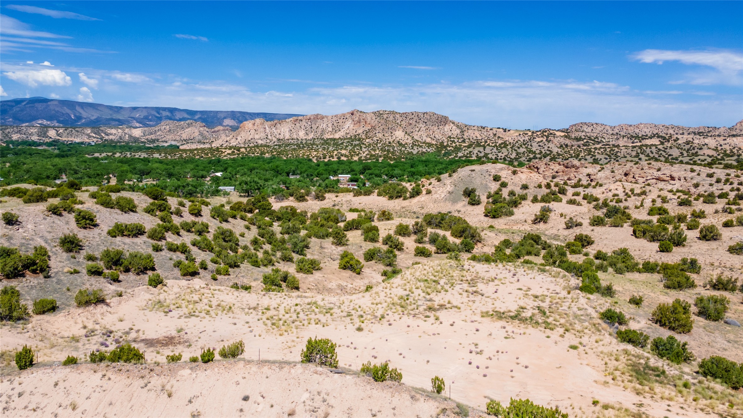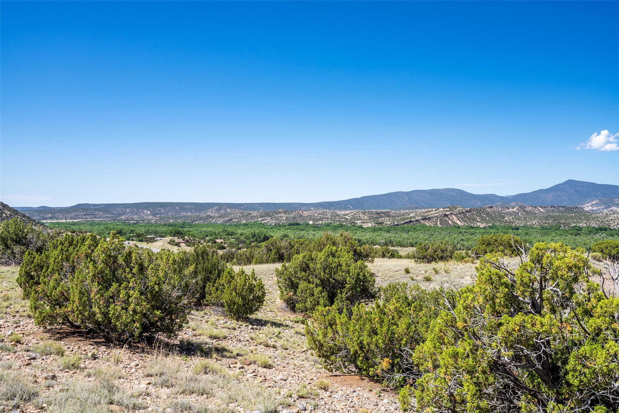 Amazing views without having a bumpy, out of the way trek up a mountain. This kind of opportunity doesn't come very often. Build your dream home, wake up to spectacular sights over the valley, but still have access directly off highway 285, and still feel secluded because of the hills on either side of the entrance which give buffers between home and highway. Perfection! The higher area has already been flattened in preparation for building. This point overlooks arroyos, valleys. and mountain formations. Electricity isn't very far away. Access directly off 285 will make other utilities easier to bring in as well. Not a far commute to Los Alamos. Two lots being sold together for a total of 3.93 acres.