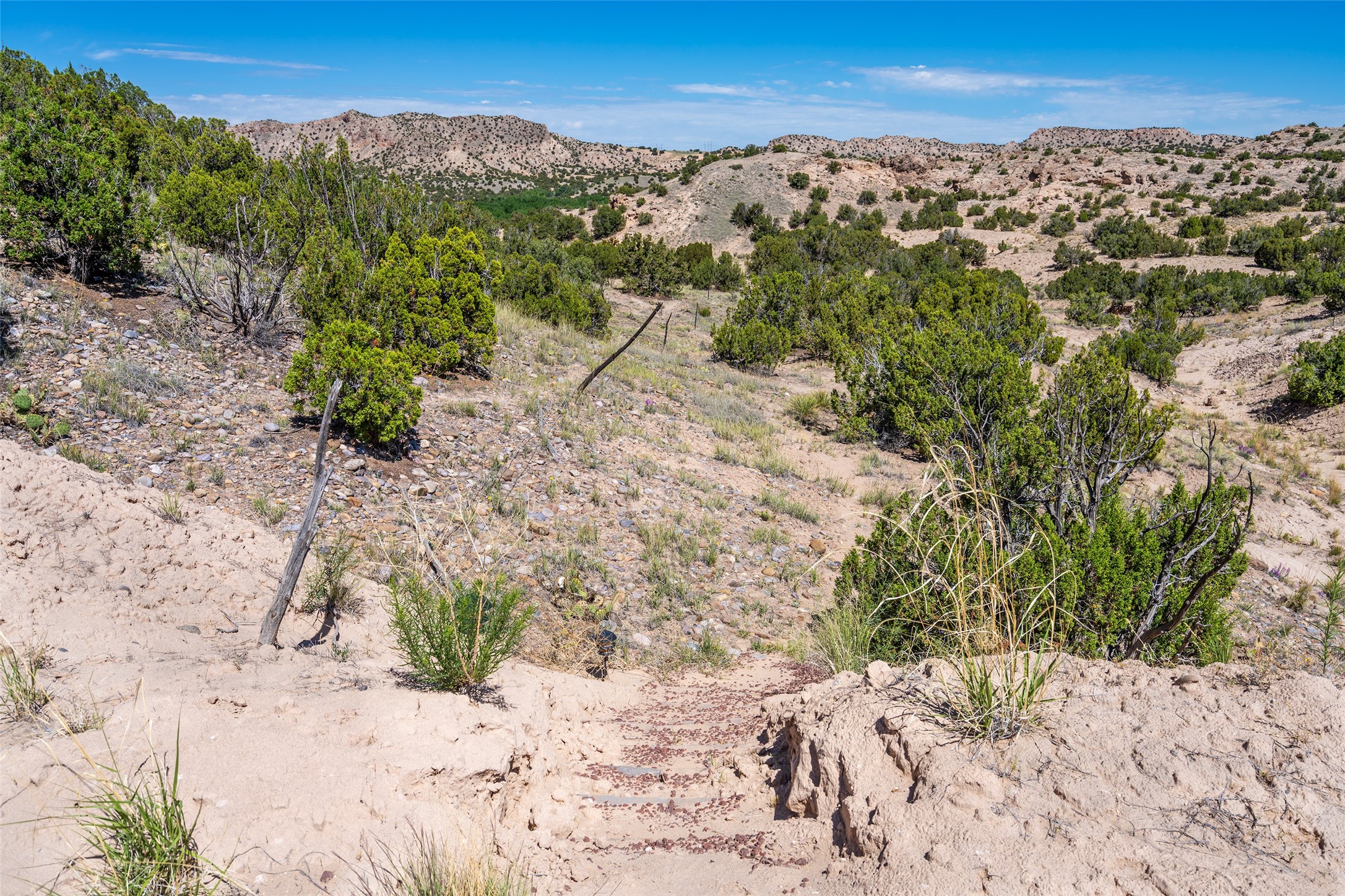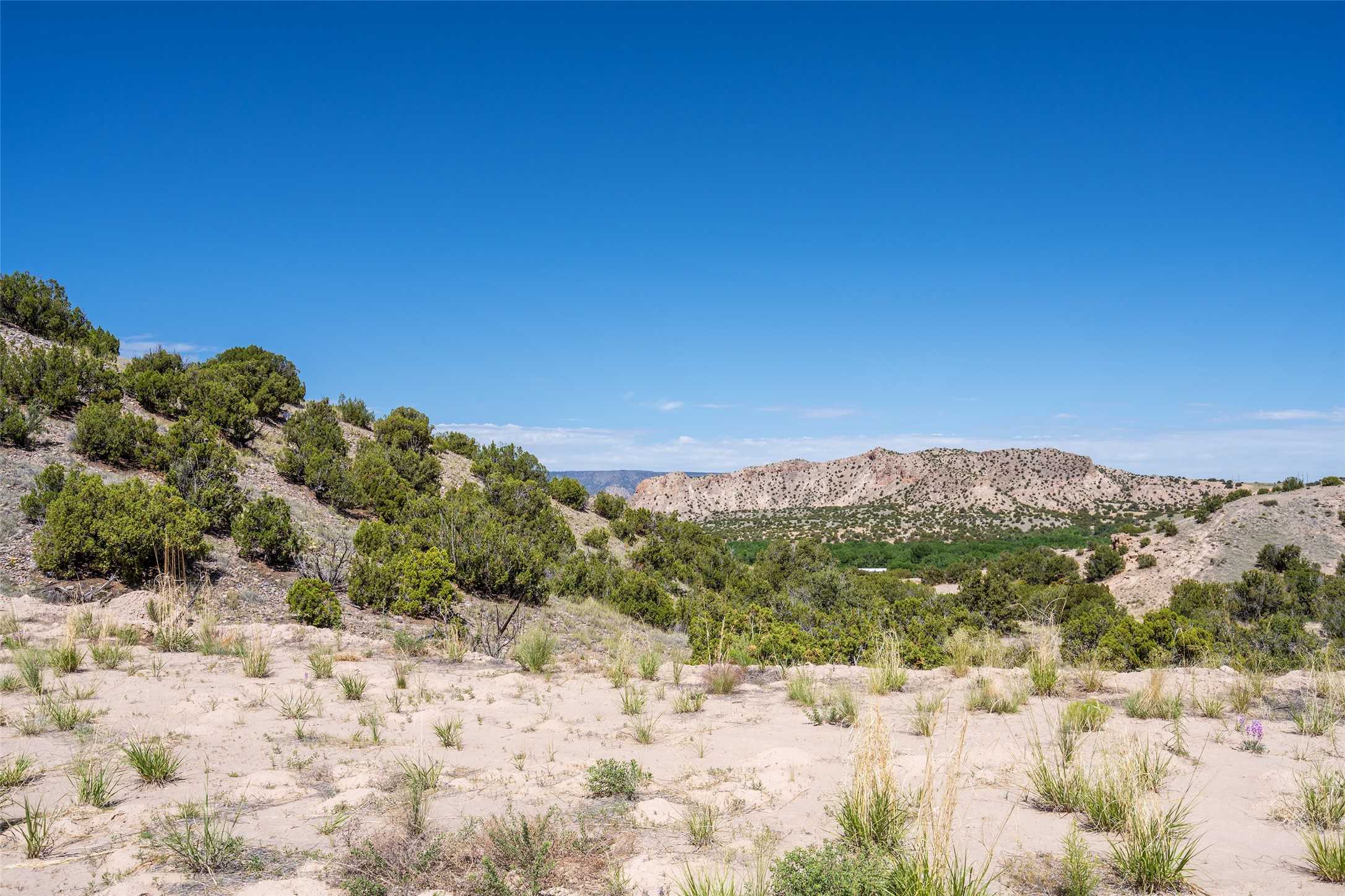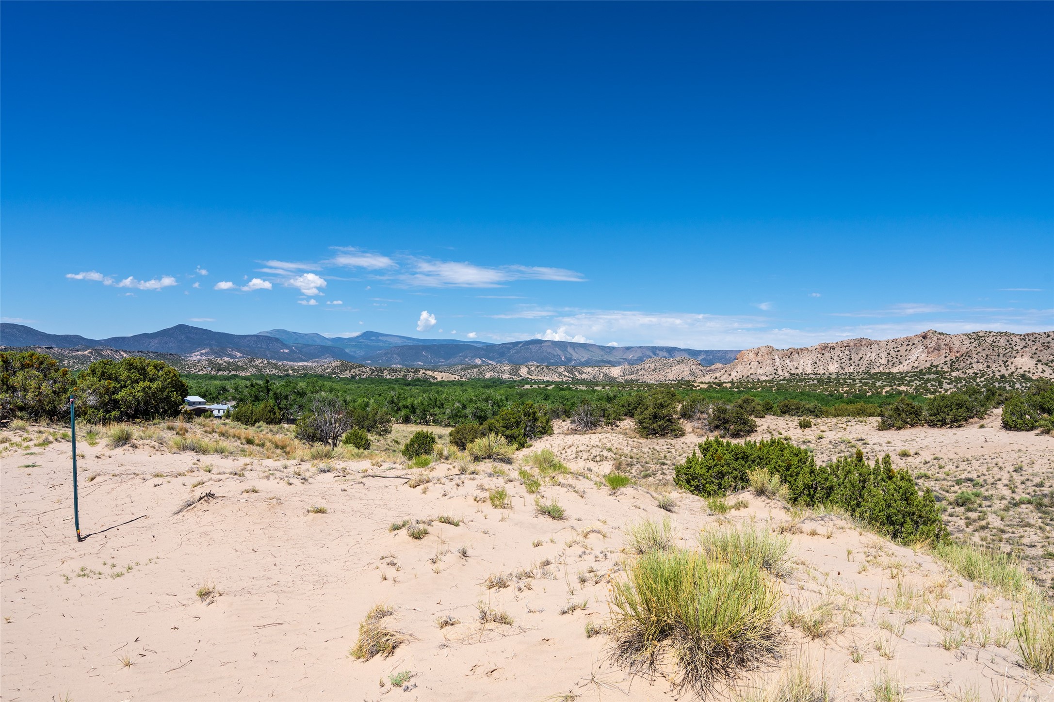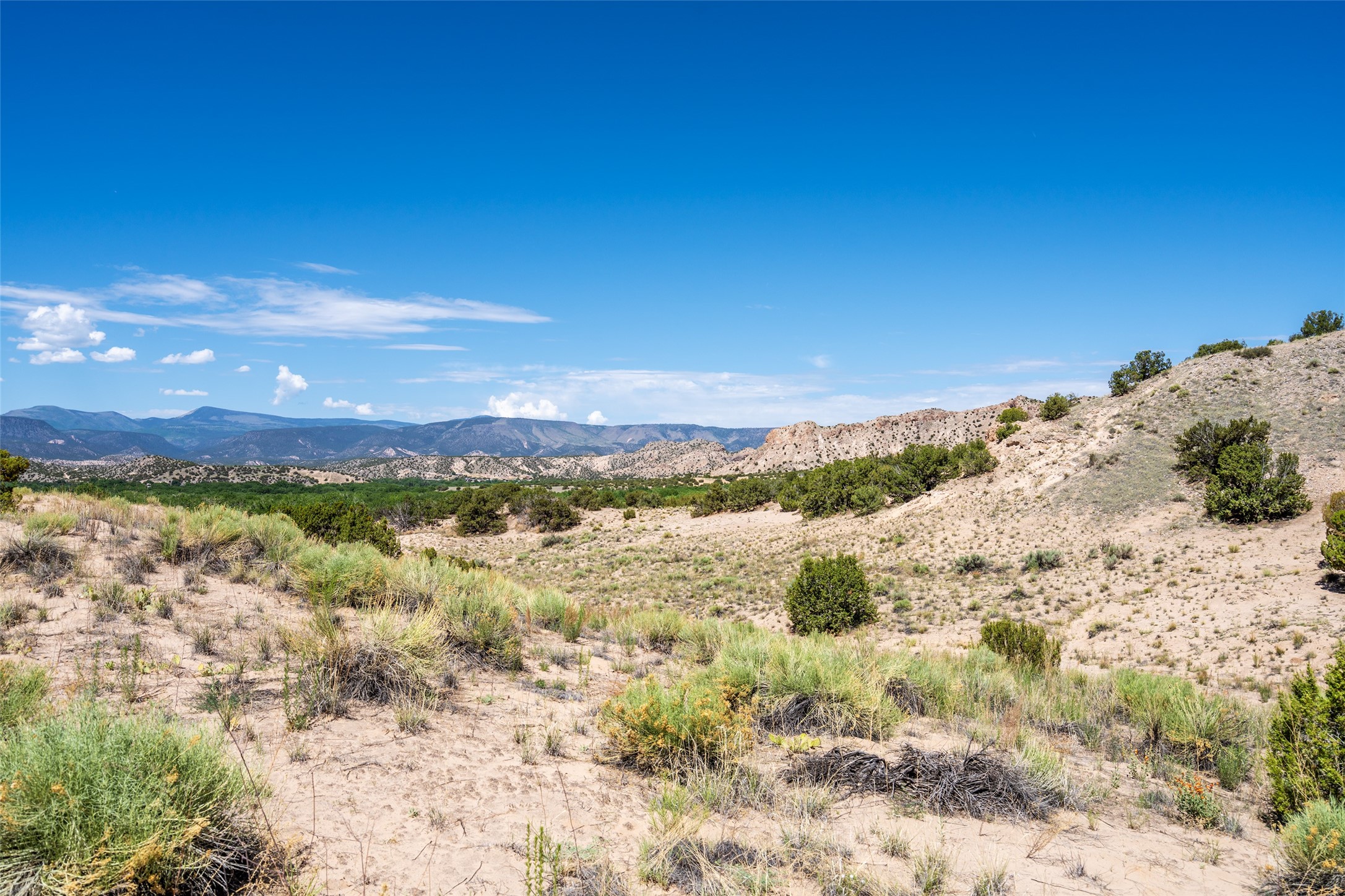 Amazing views without having a bumpy, out of the way trek up a mountain. This kind of opportunity doesn't come very often. Build your dream home, wake up to spectacular sights over the valley, but still have access directly off highway 285, and still feel secluded because of the hills on either side of the entrance which give buffers between home and highway. Perfection! The higher area has already been flattened in preparation for building. This point overlooks arroyos, valleys. and mountain formations. Electricity isn't very far away. Access directly off 285 will make other utilities easier to bring in as well. Not a far commute to Los Alamos. Two lots being sold together for a total of 3.93 acres.