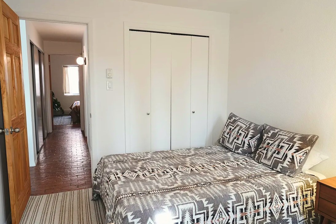 Located on a quiet, tree-shaded street just minutes from downtown, this cute two-bedroom, one-bathroom home offers a comfortable blend of charm and recent upgrades. Inside, rich brick flooring runs throughout, creating a warm, grounded feel that ties the home together. The entire interior has been freshly painted, and brand-new light fixtures brighten every room with a modern, welcoming glow.Designed with energy efficiency in mind, the home features a passive solar layout and an all-electric system to help maintain comfortable temperatures year-round. There's a cozy wood-burning stove that adds ambiance and warmth during cooler months. Clerestory windows bring in soft, natural light.The kitchen is well-equipped with sleek cabinetry, contemporary countertops, an induction range, and a new refrigerator. The bathroom has also been updated with a stylish new vanity and modern hardware, offering a clean, refreshed look.A storage shed in the back can house all of your tools or outdoor gear.Set back from the street, the property feels private and peaceful, with excellent insulation throughout for added quiet and comfort.