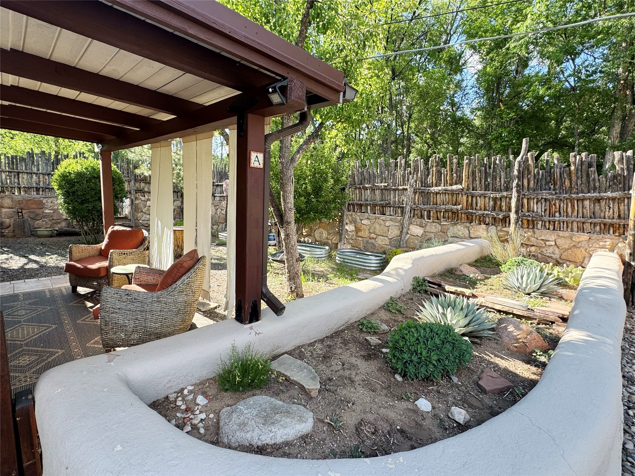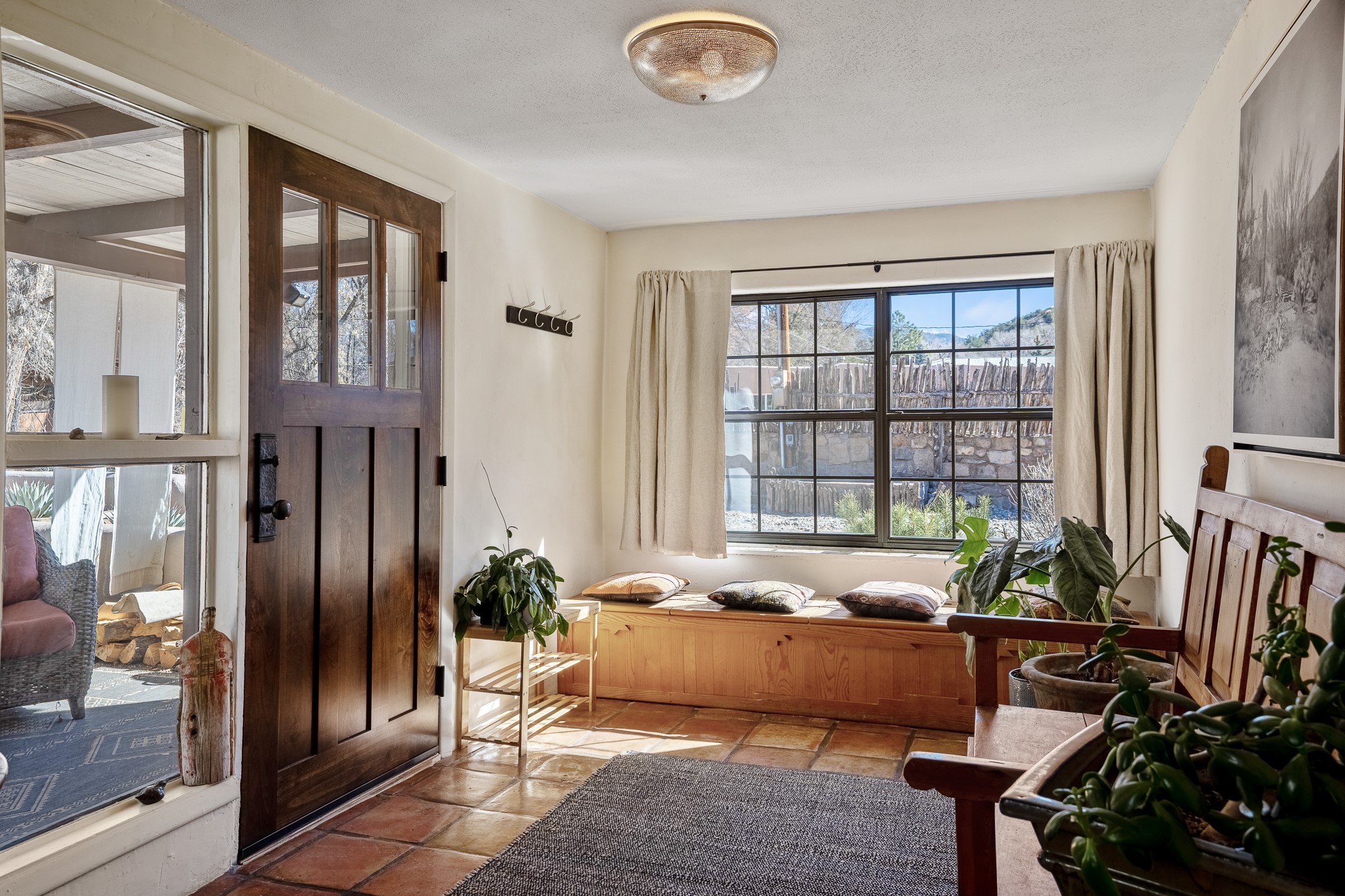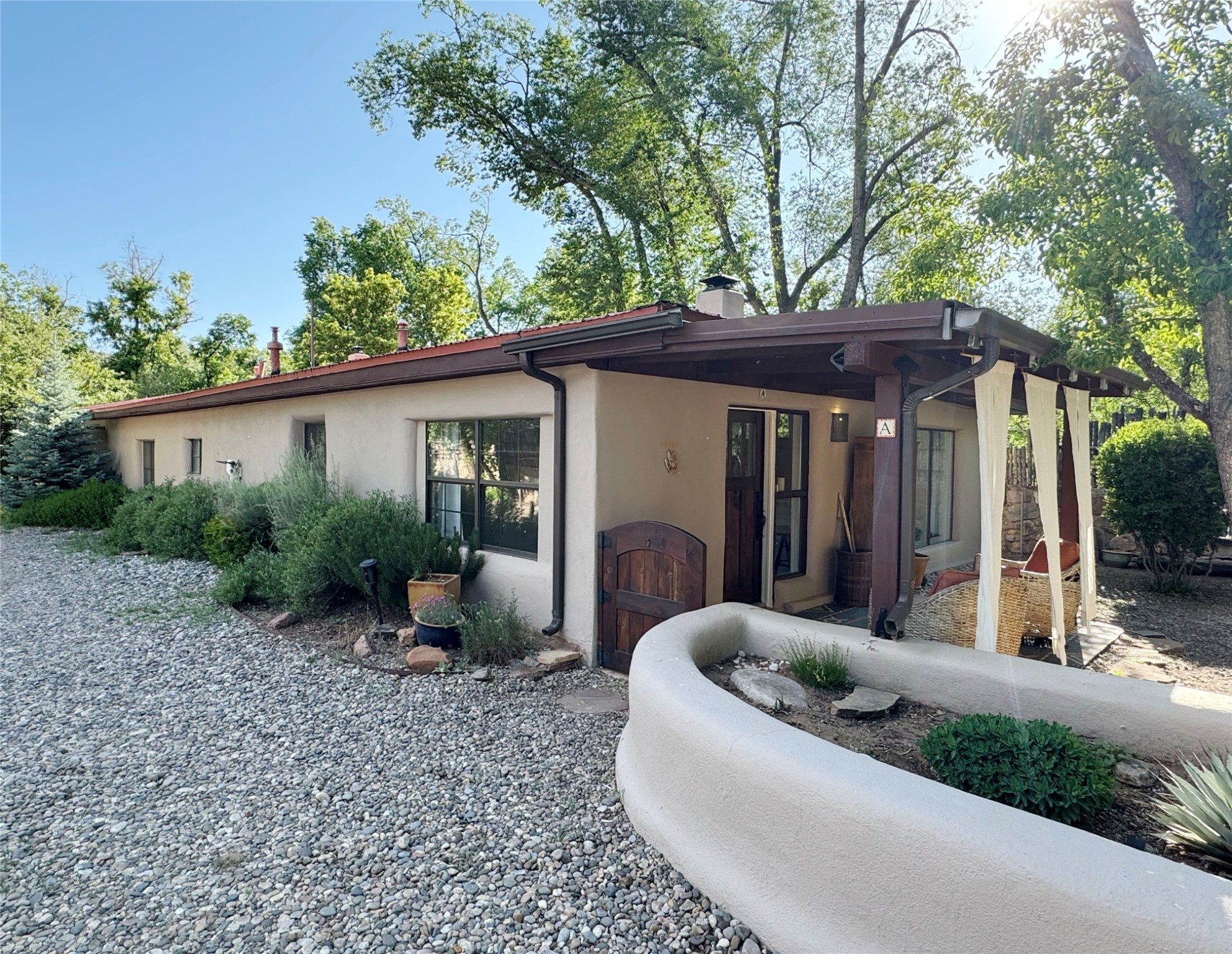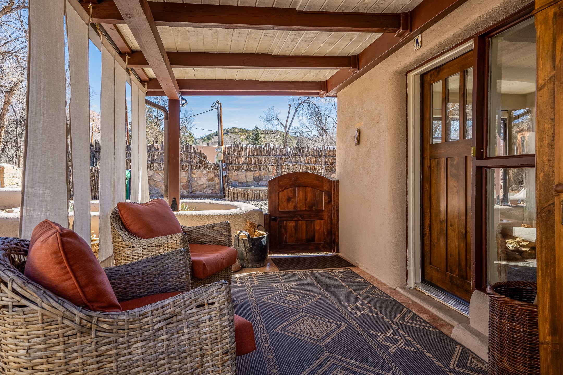 Historic Charm Meets Modern Elegance.Discover the perfect blend of historic charm and modern updates in this stunning, mostly adobe home located in the heart of Tesuque. This exquisite 3-bedroom, 2-bathroom residence features a spacious double-sided fireplace and an expansive dining area. The recently remodeled chef's kitchen boasts soapstone countertops, a quartz sink, and locally crafted cabinetry, including a hand-hewn mahogany pantry. The single-level layout ensures a seamless flow throughout the home. Interior highlights include a light-filled artist studio, skylights, handmade antique Saltillo tile floors, a Reverse Osmosis water system, a new washer and dryer, and a newer heating system (installed in 2022). Additional features include outdoor storage, a large attic, and ample parking.Step outside to a charming courtyard adorned with apple, pear, and pine trees--perfect for lounging during the warmer months. The native plant landscaping, surrounded by majestic Cottonwood trees, adds to the home's serene ambiance.Located just a few minutes' drive from Santa Fe Plaza, this home is conveniently near Tesuque Market and the Santa Fe Opera. Nature lovers will appreciate the proximity to the Santa Fe National Forest hiking trails and the Windsor Trail, with the soothing sound of the Rio Tesuque greeting you at the front door.This home is a rare find in the historic and highly sought-after Tesuque Village area of Northern New Mexico. It is part of a two-home condominium association with zero HOA fees. For more information, please visit http://tesuque-charm.com/