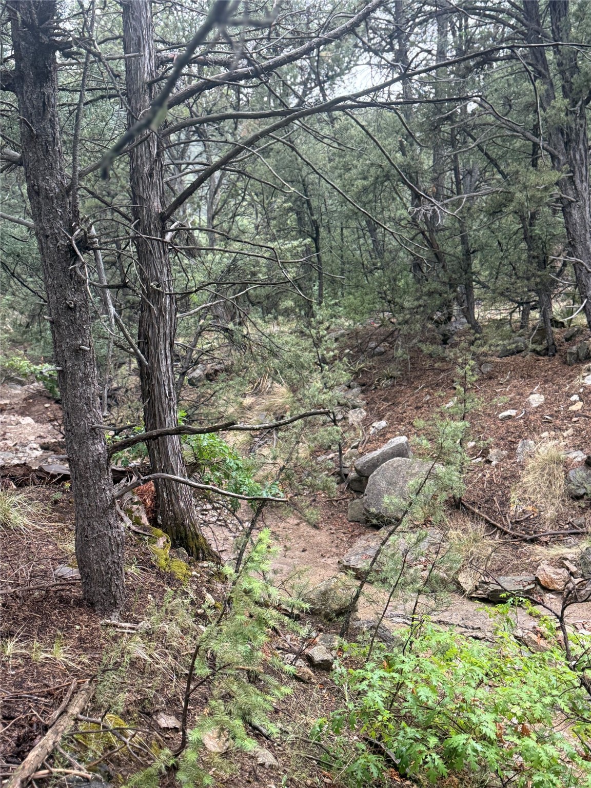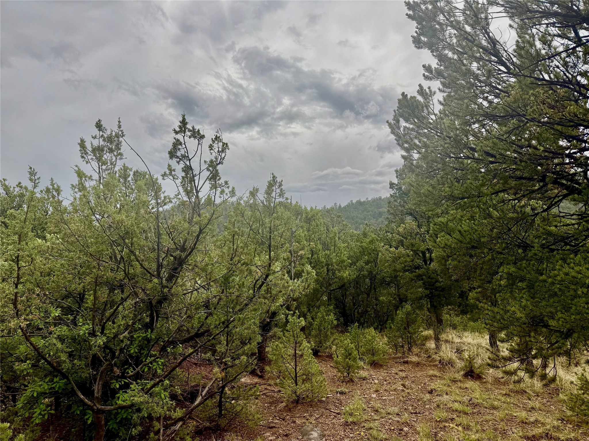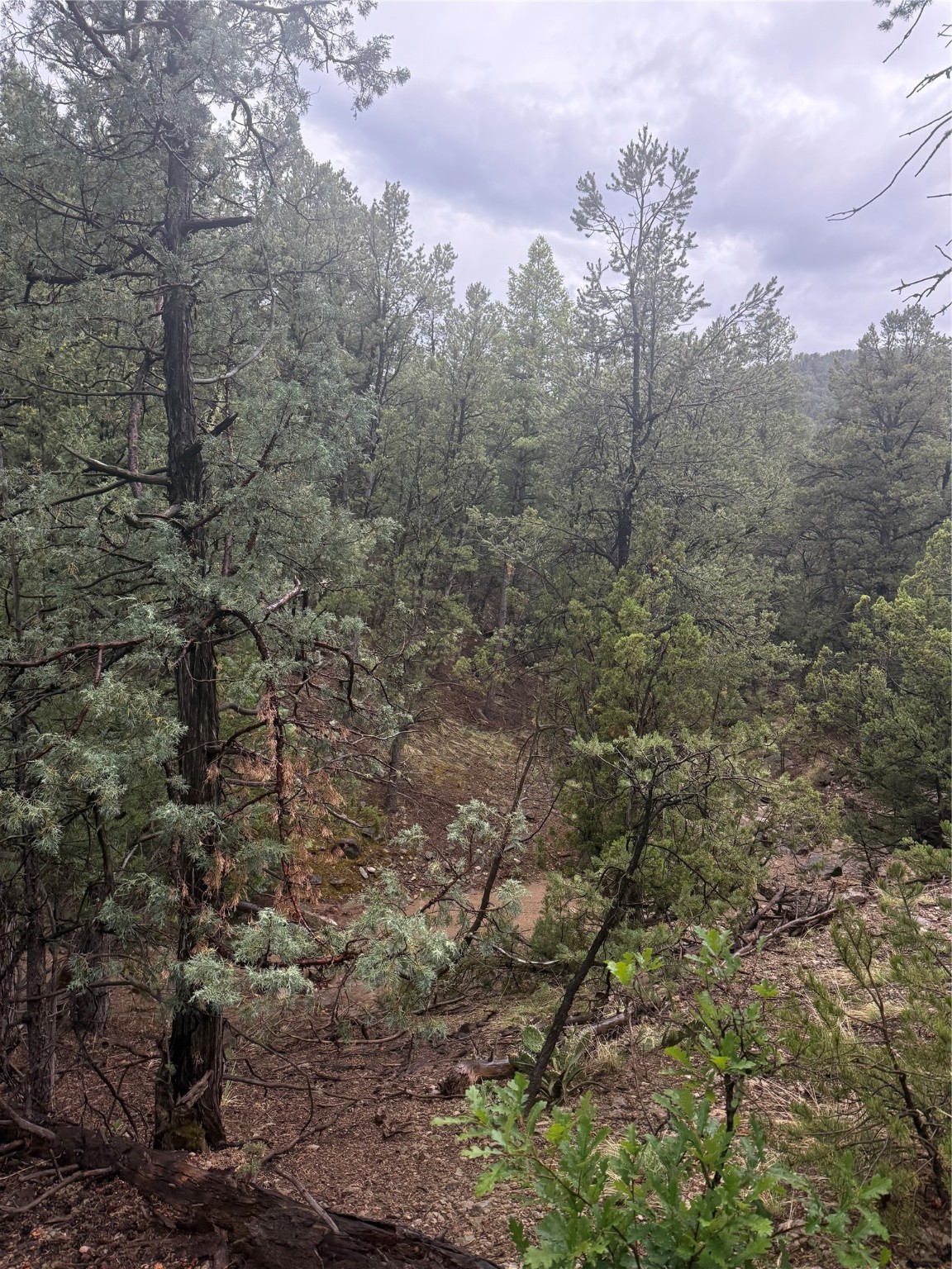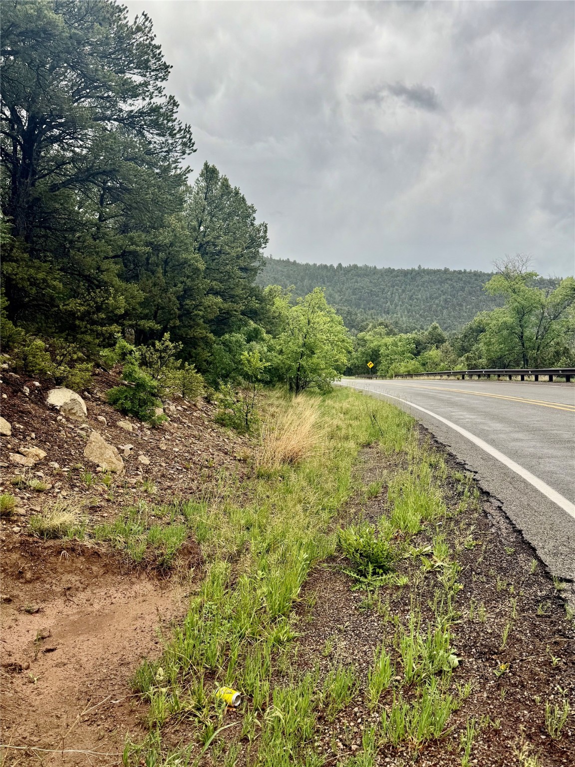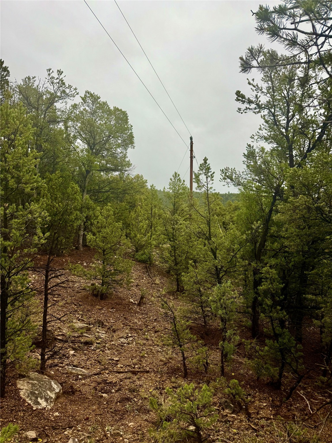 One acre wooded lot in the Pecos Canyon. This sloped lot is adjacent to Highway 63, and is within minutes of fishing and hiking, as well as being just 3 miles north of the town of Pecos for easy access for those who want to commute. The property has electricity nearby, and has no covenants, what you do with the property will be subject only to San Miguel County restrictions. Big pines, rock outcroppings, and outdoor adventure await, all within a convenient distance to Santa Fe.