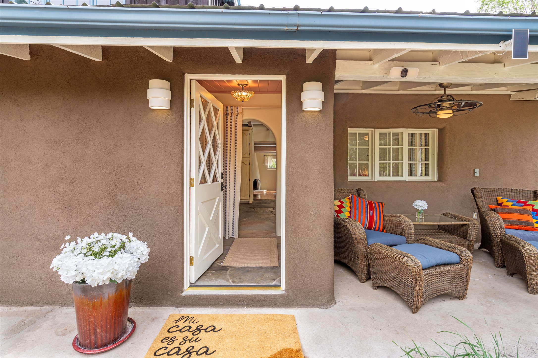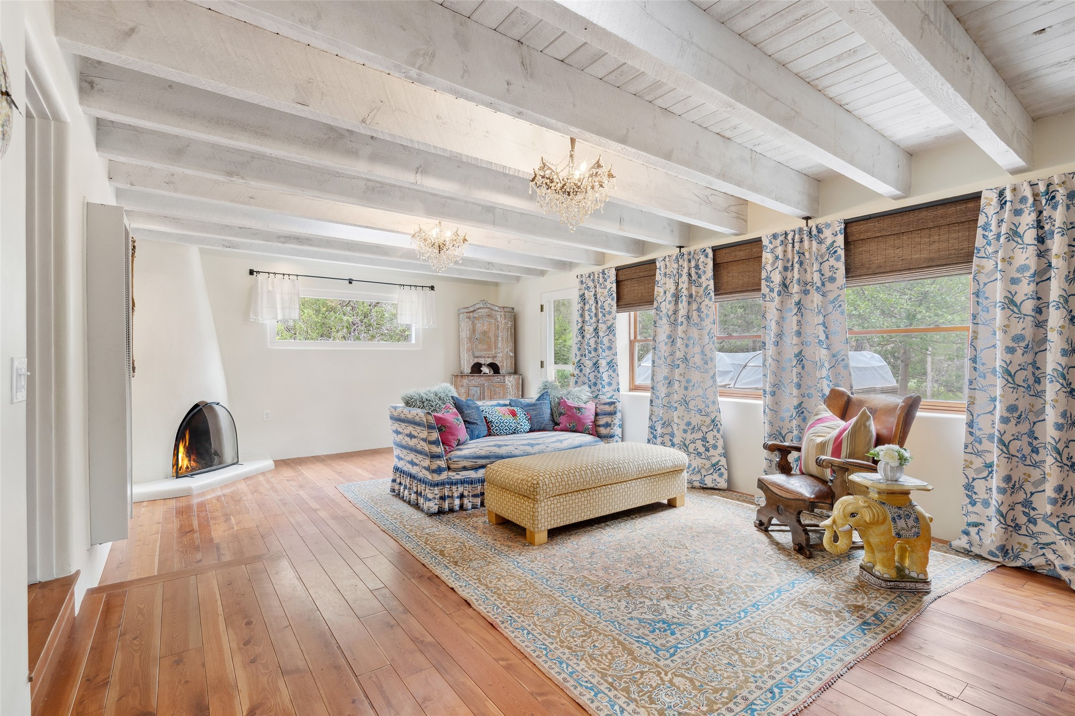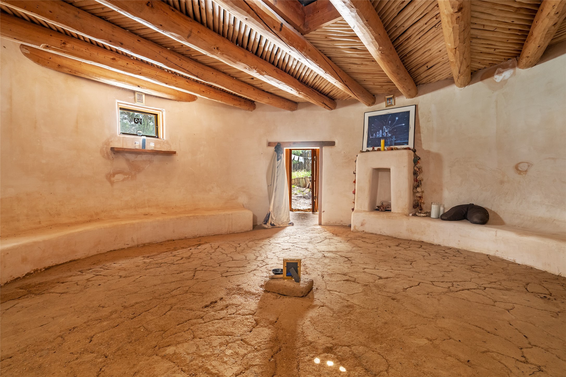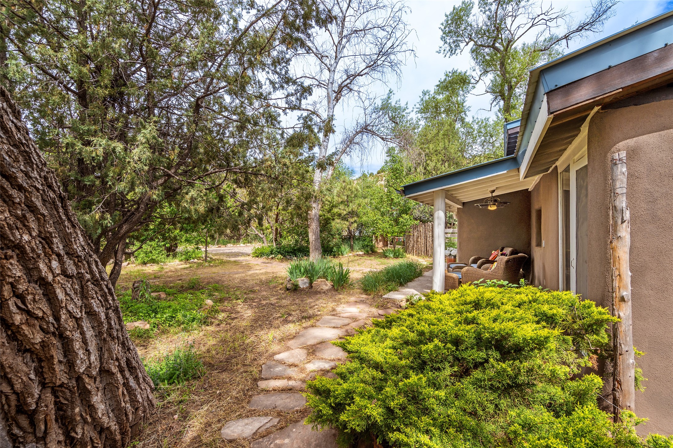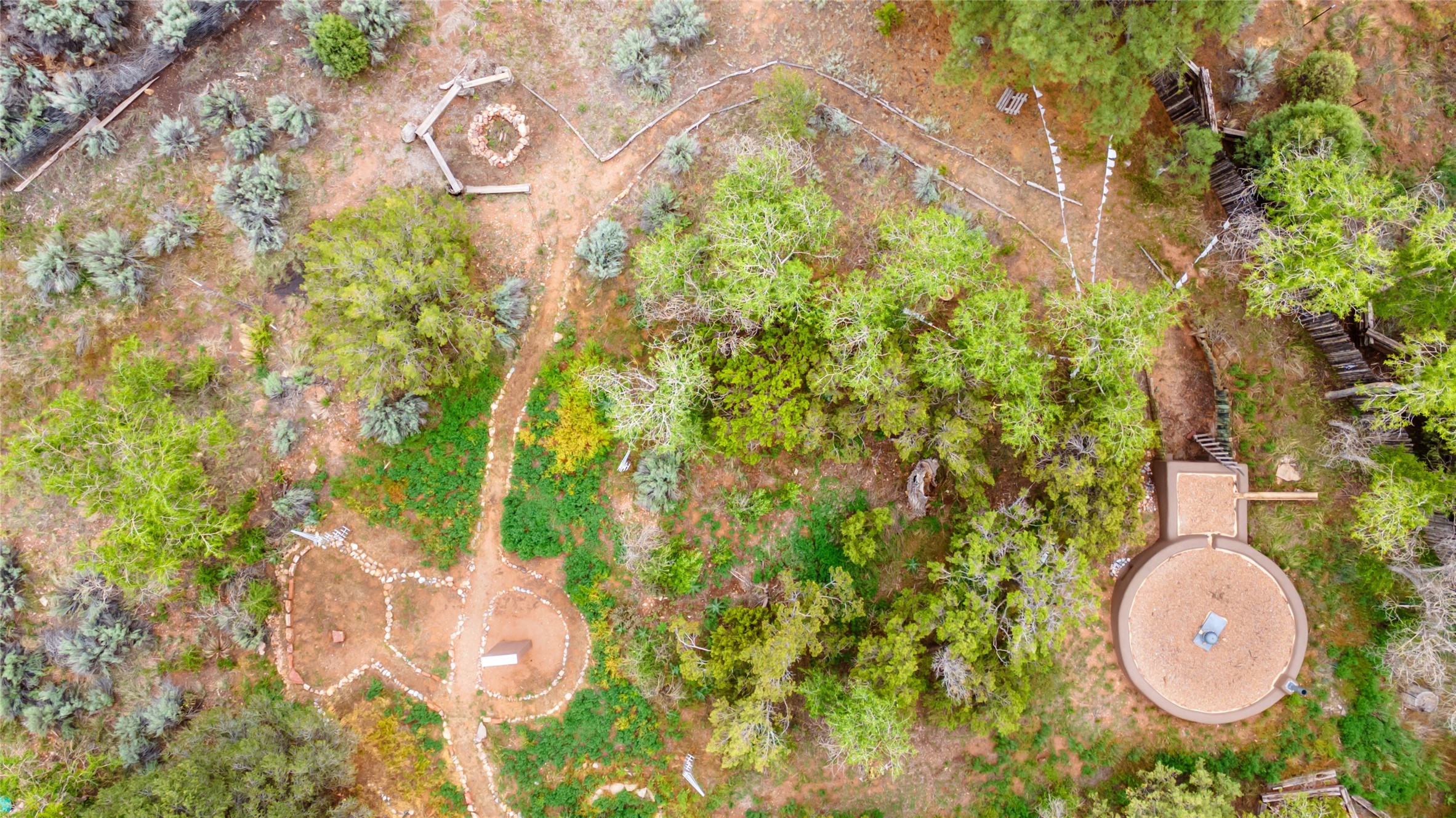 Nature-lover's paradise on 6 Acres- Tucked beneath red rock hills--Cross the bridge from Sibley Road and enter your private sanctuary nestled on six acres of lush, mature land in the serene community of Caoncito. This one-of-a-kind property features a thoughtfully updated three-bedroom, two-bathroom adobe and frame main house that blends timeless charm with modern luxury. Highlights include fully renovated luxury bathrooms and a gourmet kitchen with artisan tile, locally crafted ironwork throughout, and new sustainable wood floors. The home showcases diamond finish plaster and low-VOC finishes, ensuring both beauty and environmental consciousness. The hand-built guest house, perfect for visitors, rental income, or a creative studio, includes a cozy bedroom, bath, kitchenette, and a loft. Attached is a greenhouse for year-round gardening. Outdoors, you'll find a detached carport/shop featuring stonework sourced from the nearby Glorieta Mesa, which doubles as an open-air workspace or additional storage. A traditional underground kiva structure provides a private ceremonial space.The grounds are a horticultural haven with old-growth cottonwoods, pions, and raised garden beds. A private well adds to the property's potential for self-sufficient living. Whether you're a homesteader, gardener, artist, or seeking a peaceful retreat, this property offers the perfect setting.Set in a classic rural NM neighborhood, the house sits on three acres fenced in with coyote fencing, providing safety and privacy. An additional three acres remain wild, with a neighborhood path leading you to public hiking trails and sunset views. Located just 25 minutes from downtown Santa Fe, this tranquil retreat offers the best of both worlds: a private haven with access to the vibrant city. With its artisanal remodel and high desert landscape, this property is an extraordinary opportunity for those seeking comfort, luxury, and self-sufficient living.
