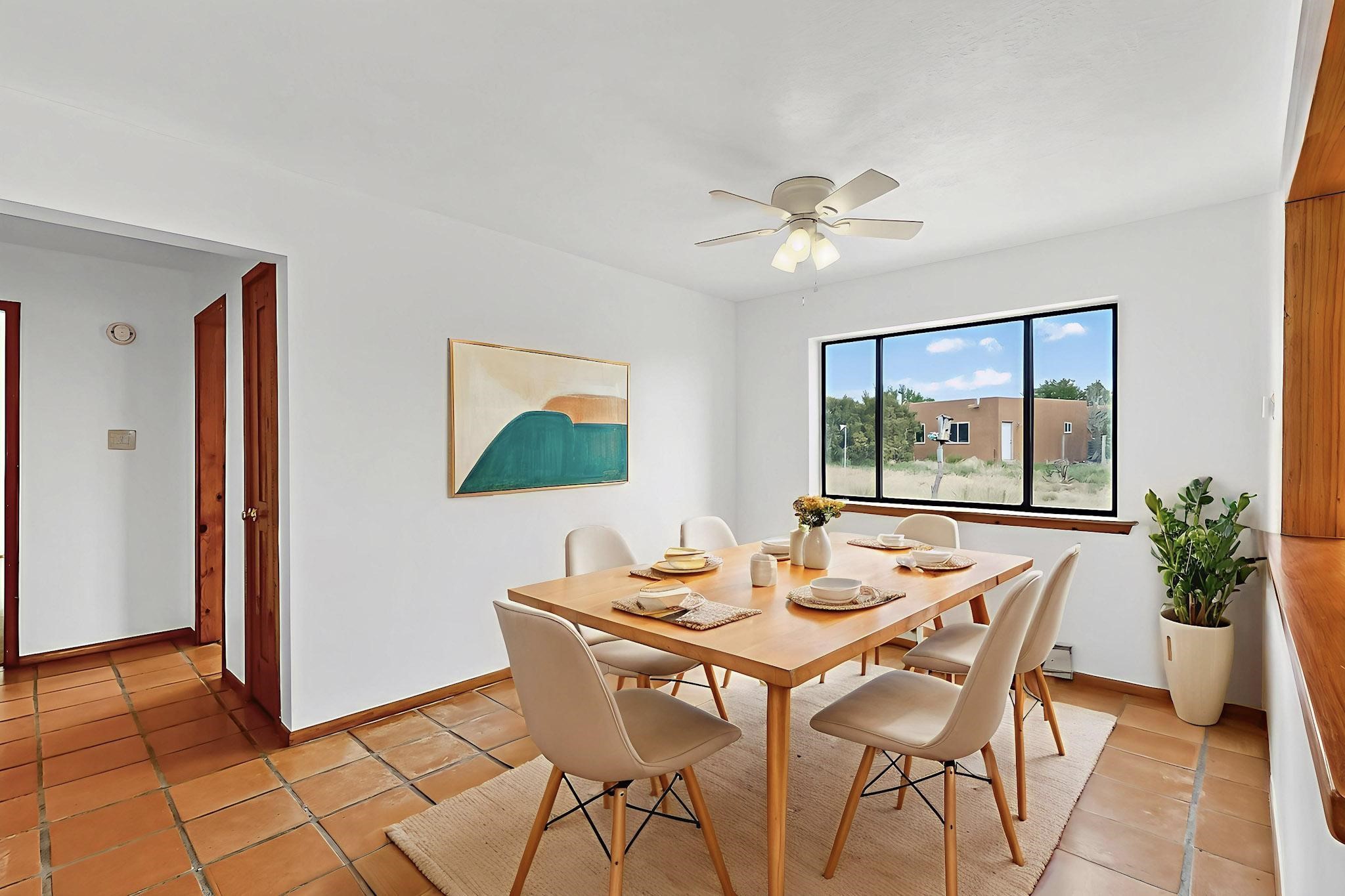 Submit an offer today!!! Beautifully refreshed Pueblo-style gem nestled on 1.33 acres in the highly desirable Eldorado subdivision of Santa Fe! Listed below the appraised value, this charming 3-bedroom, 2-bathroom home offers the perfect blend of comfort, character, and modern updates--ready for you to move right in and enjoy.Freshly painted inside and out, including doors and trim, this home shines with new life and pride of ownership. Step inside to discover a light-filled layout that includes a bonus office/den space with brand-new flooring--ideal for remote work, a creative studio, or a cozy reading nook.The kitchen boasts a brand-new electric stove, while the rest of the appliances have been cleaned and serviced for optimal performance. The home also features a 1-year-old gas wall heater, ensuring efficient warmth during Santa Fe's cooler months. All vanities, cabinets, window sills, and entry thresholds have been re-stained and sealed, adding a fresh, polished touch throughout.The oversized two-car garage provides ample storage space, and the spacious 1.33-acre lot offers stunning views in every direction, with nearby horse properties and open skies that capture the true essence of New Mexico living.Located in the Eldorado community, residents enjoy access to top-notch amenities including a community pool, miles of scenic hiking and biking trails, a library, senior center, local shopping, schools, and restaurants. Plus, with easy access to the highway, commuting to downtown Santa Fe or beyond is a breeze.This is more than just a house--it's a lifestyle. Don't miss your opportunity to own a refreshed, move-in-ready home in one of Santa Fe's most sought-after neighborhoods. Schedule your showing today and fall in love with 61 Verano!