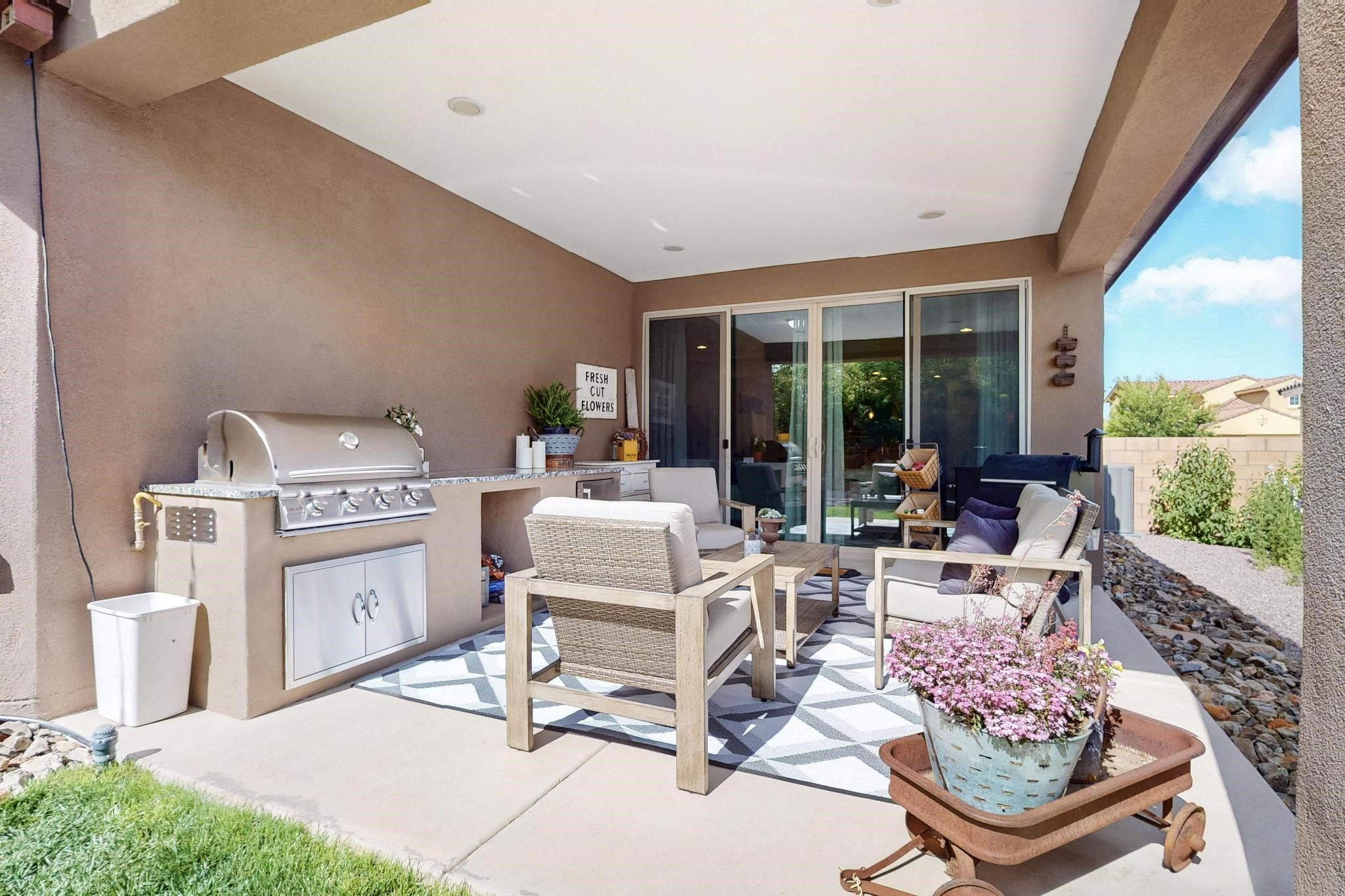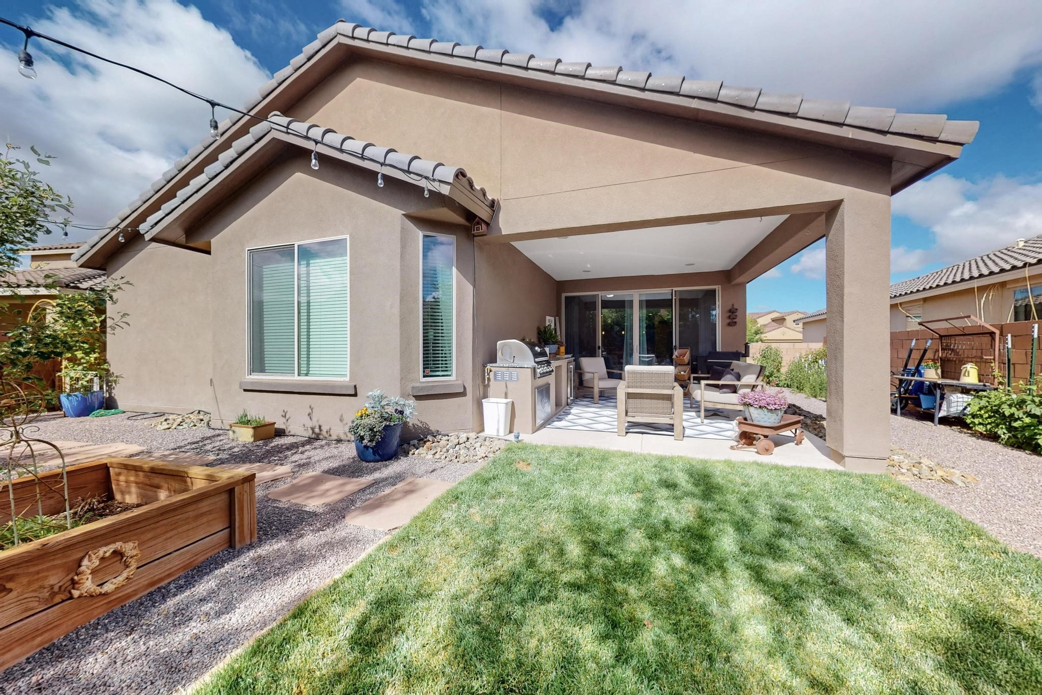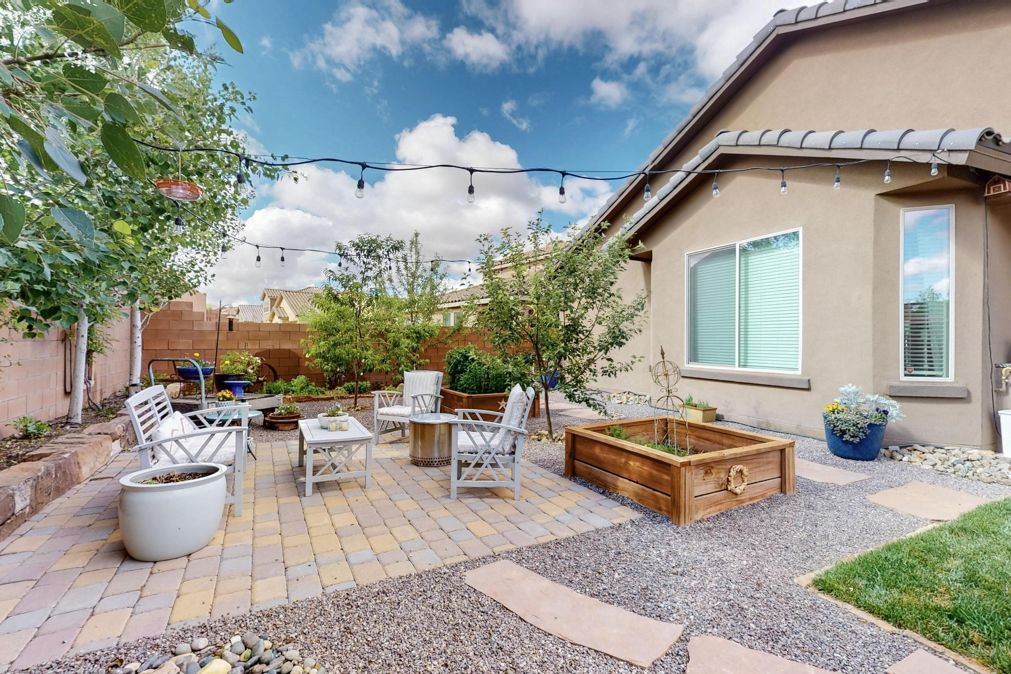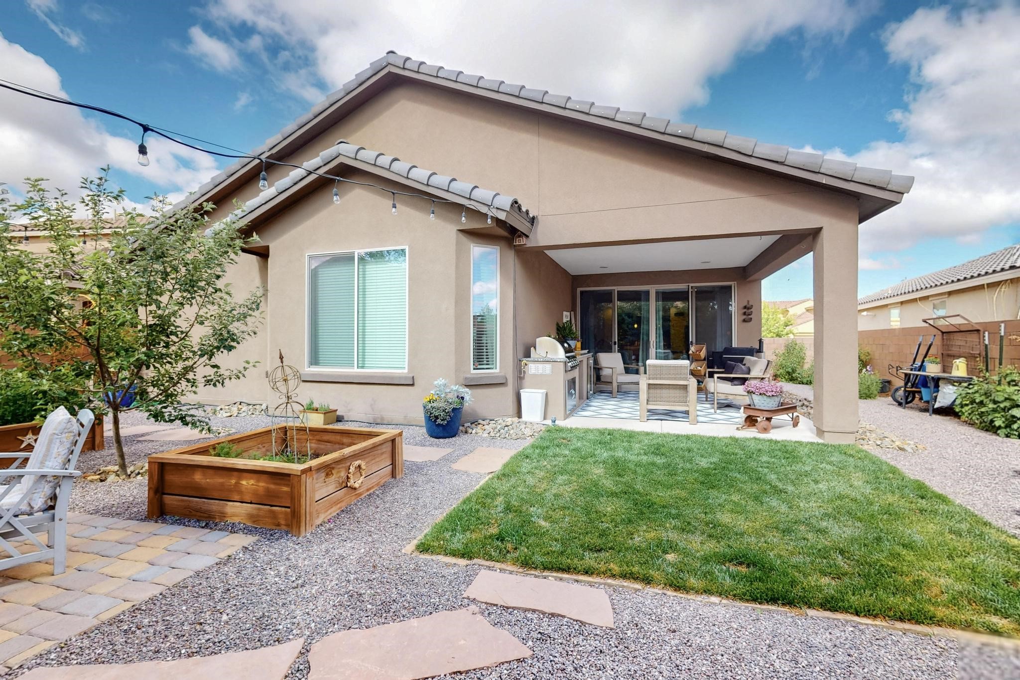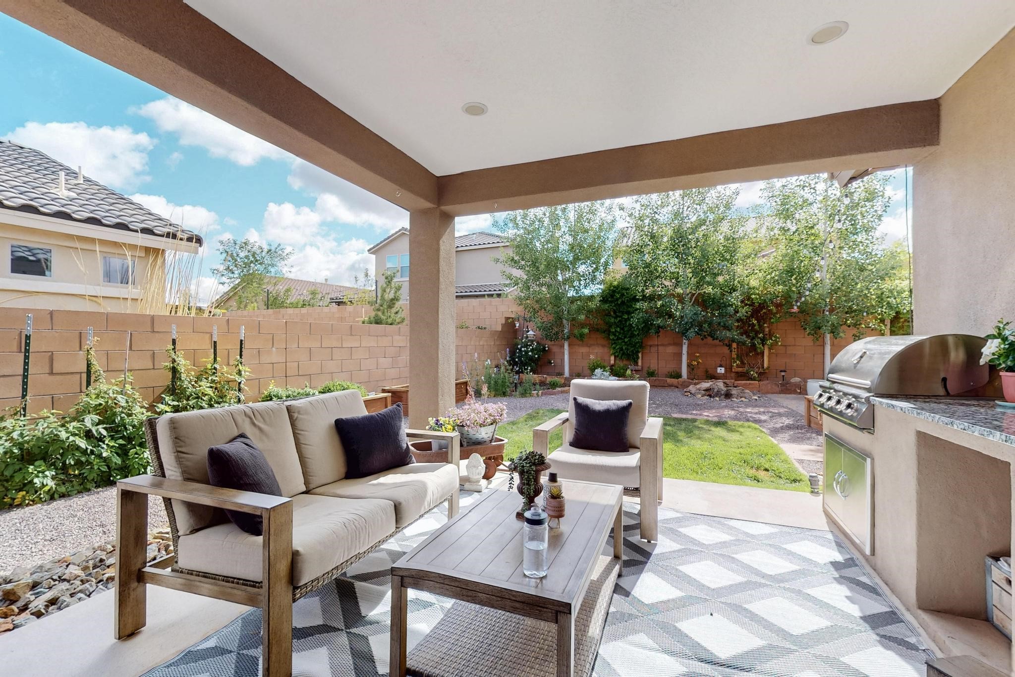 Wow! This smart home is absolutely stunning and should not be missed!! Not only is this beautiful 3 bedroom, (possible 4 bedrooms), 2 bath home meticulously maintained, the backyard has been transformed into an absolute oasis that is the perfect place to host all of your summer gatherings! As you walk into the chefs kitchen, you will notice the large double sliders that provide ample light into your open floor plan and will lead you outside to the back patio complete with an outdoor kitchen that makes indoor-outdoor living an absolute dream! In your new oasis you will find strawberries, raspberries, apple trees, a peach tree, and beautifully designed raised flower beds that currently house an abundance of kitchen herbs! The backyard is complete with the serene sounds of a lovely fountain, and outdoor lighting that will ensure 24 hour use of this incredible setting. Conveniently located near I-25 and Cerrillos road, providing an easy commute in any direction. This move in ready house is the perfect place to call your new home!