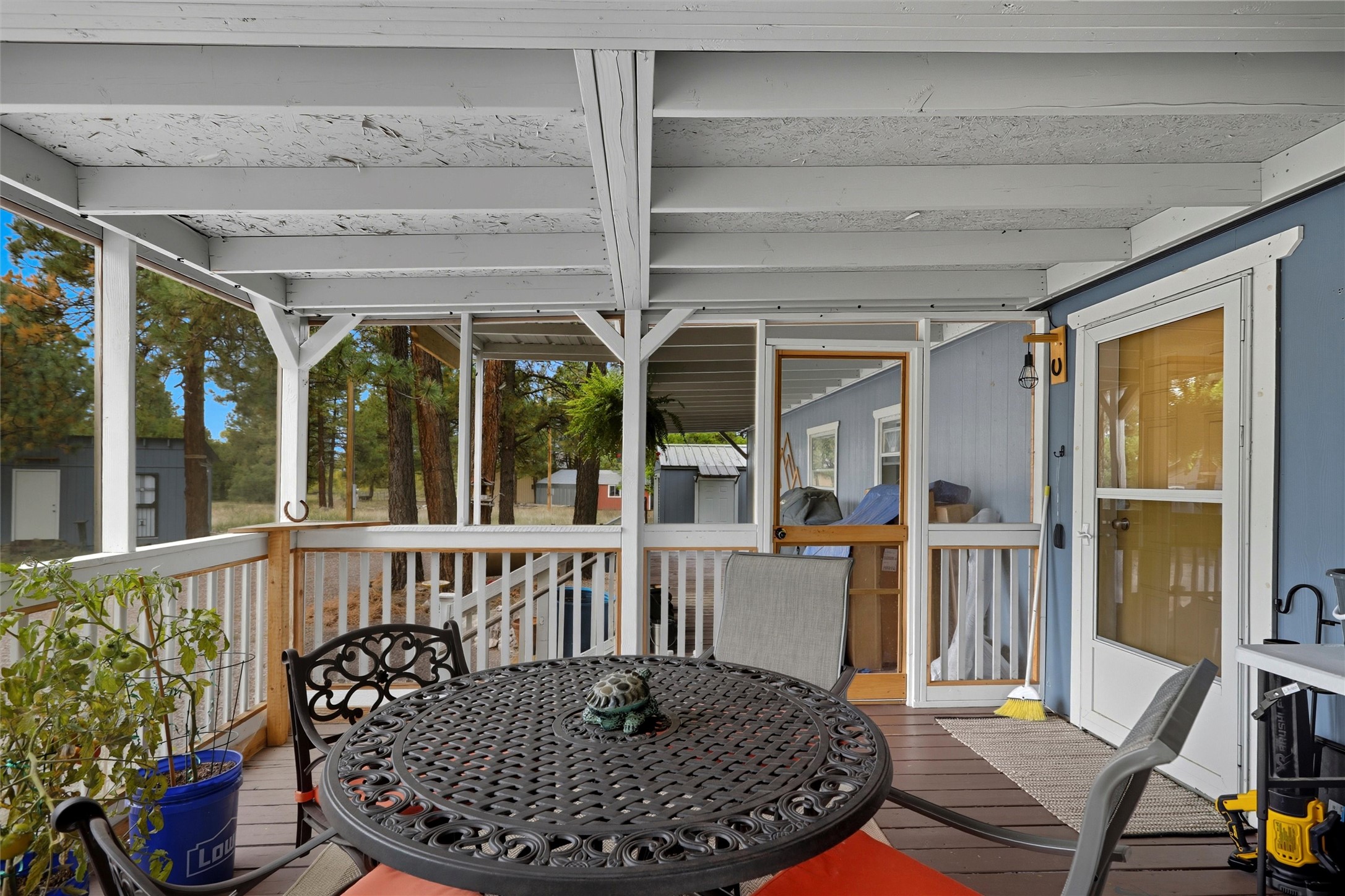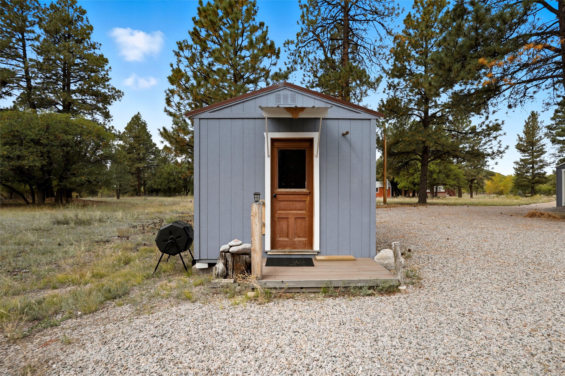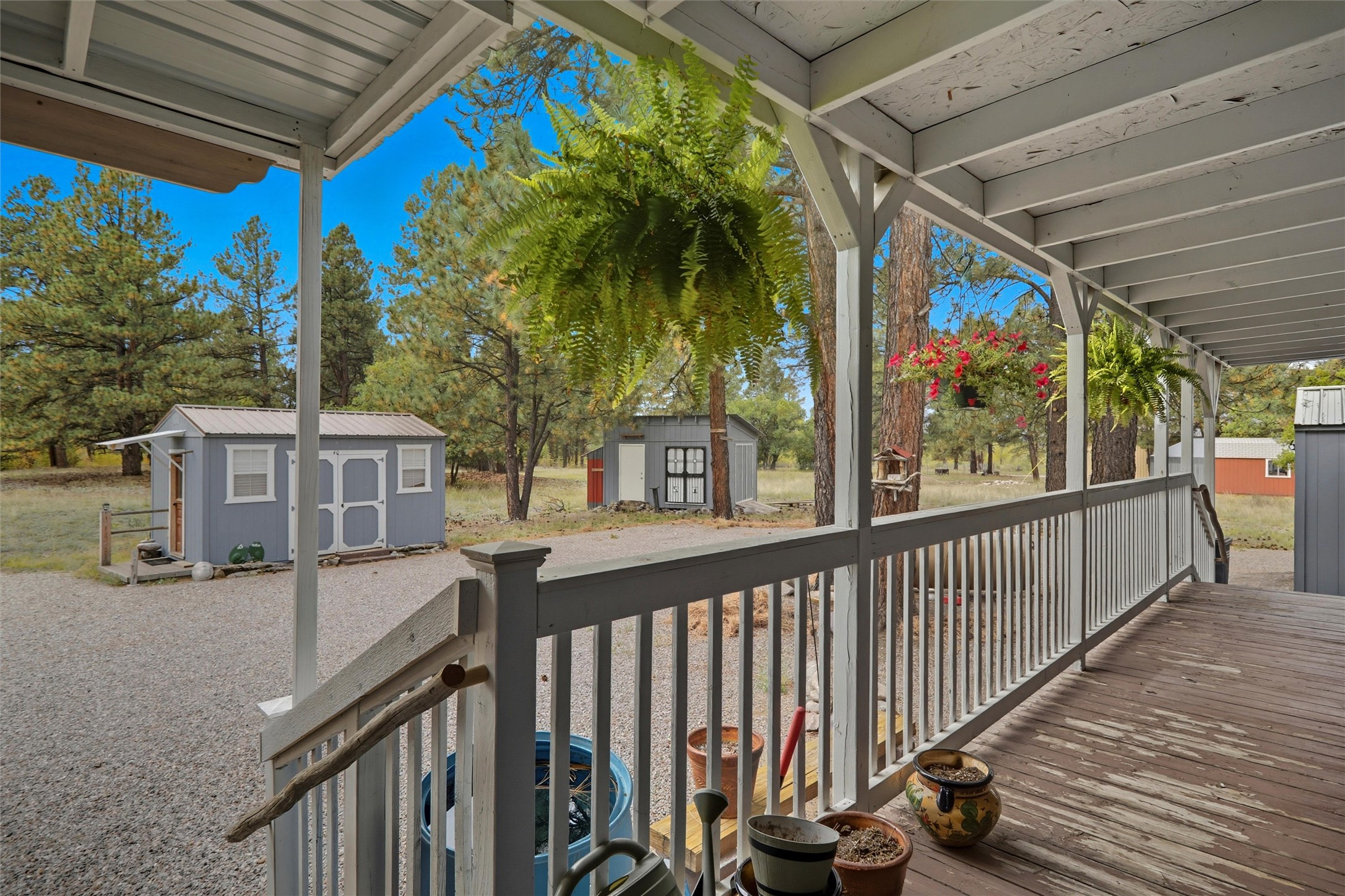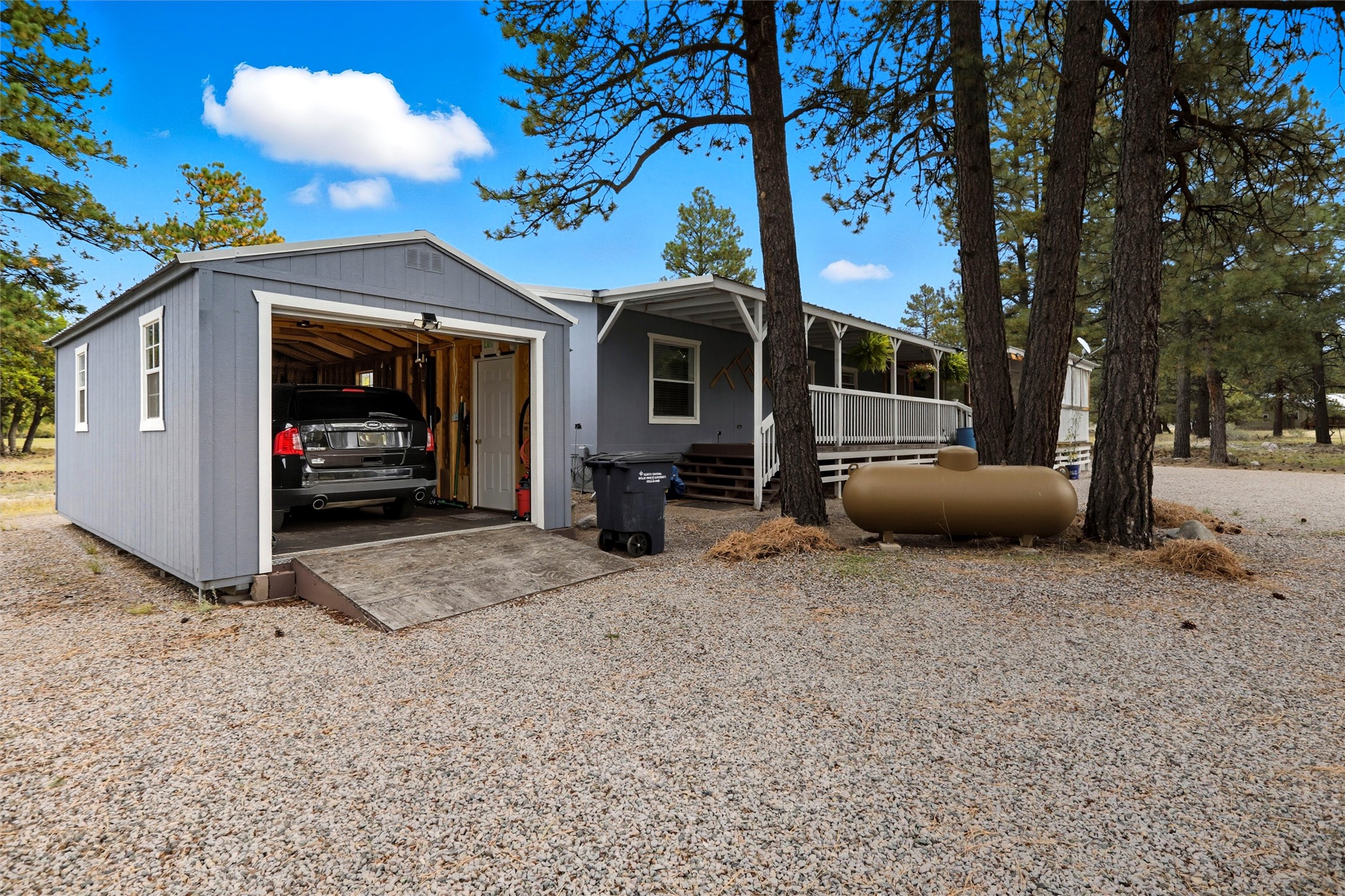 This well-maintained 3-bedroom, 2-bath home sits on 1.39 +/- acres with multiple outbuildings and a single-car detached garage, offering plenty of space for storage, hobbies, or toys. Enjoy easy year-round access directly off State Road 512, with the added benefit of no CCRs and the convenience of a private well and septic system.The property features both front and back decks, including a partially enclosed area on the back deck--perfect for relaxing mornings and evenings while watching deer and turkey wander through. Recent updates include a pellet stove, new flooring, countertops, and appliances, along with a water filtration system and spacious closets and pantry. The back half of the roof was replaced just last year, and electricity has been added to all outbuildings, including the garage. Fresh gravel has also been leveled throughout the circular driveway, making access simple and neat. A backup generator provides extra peace of mind.Outdoor recreation is close at hand with nearby access to the Rio Chama, Brazos River, Lake Heron, and Lake El Vado. Located only 15 minutes from the Village of Chama, the home also offers spectacular views of the Brazos Cliffs right from your front yard. The house sits on a permanent foundation and is HUD approved, making it a versatile option for year-round living or a getaway retreat.This is a must-see property in the heart of the Chama Valley--don't miss the chance to make it yours.