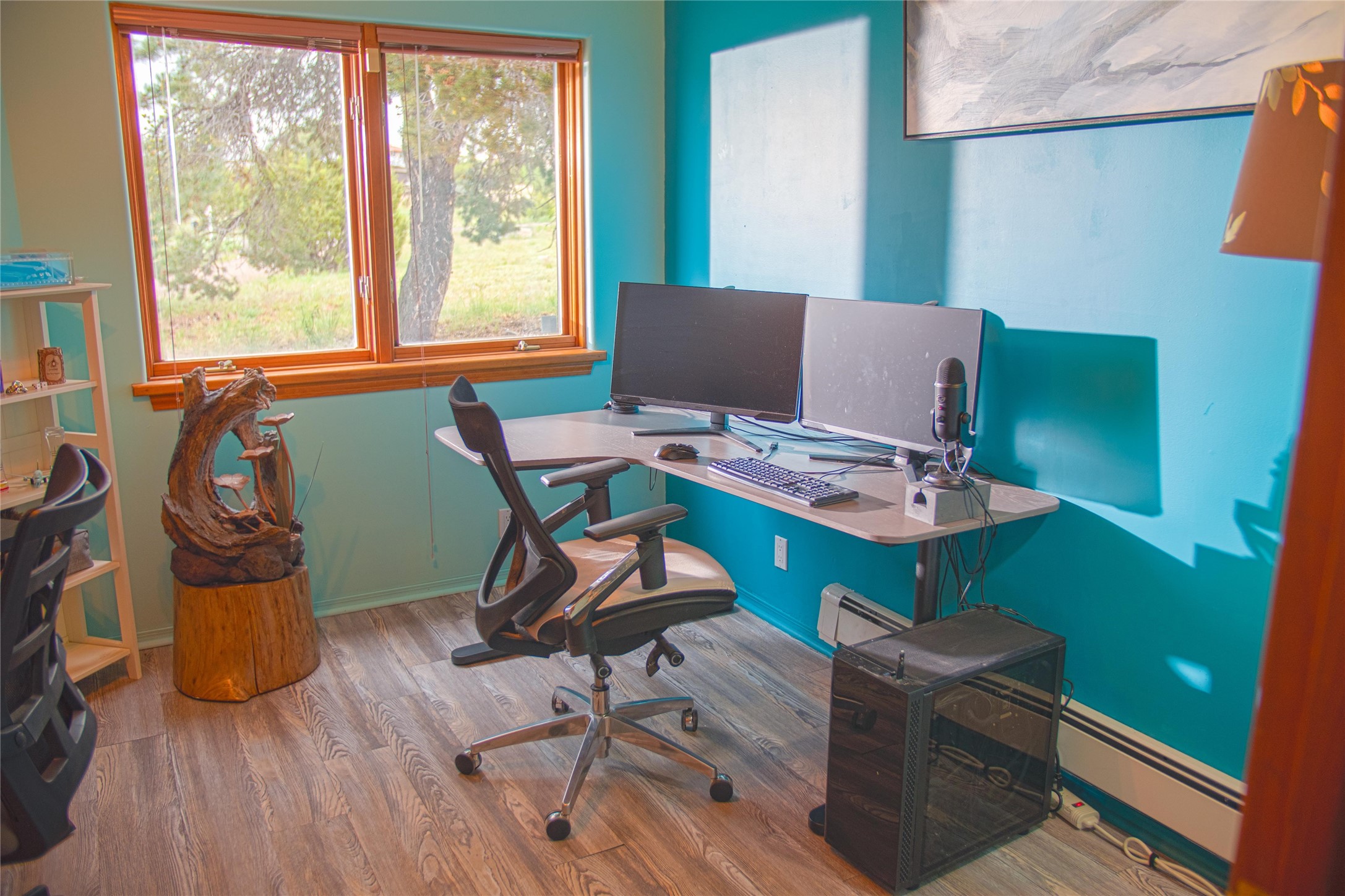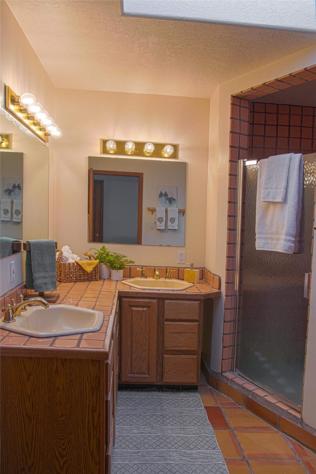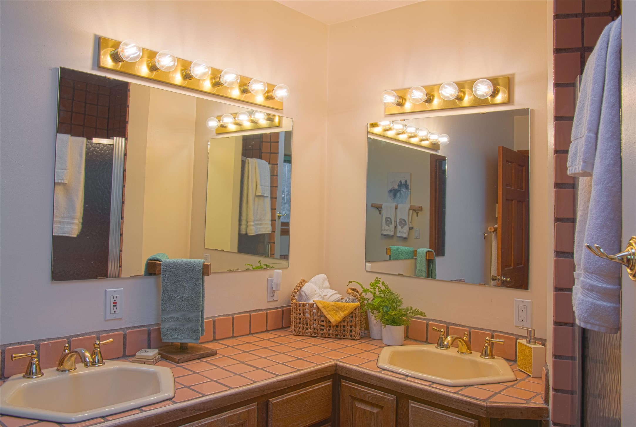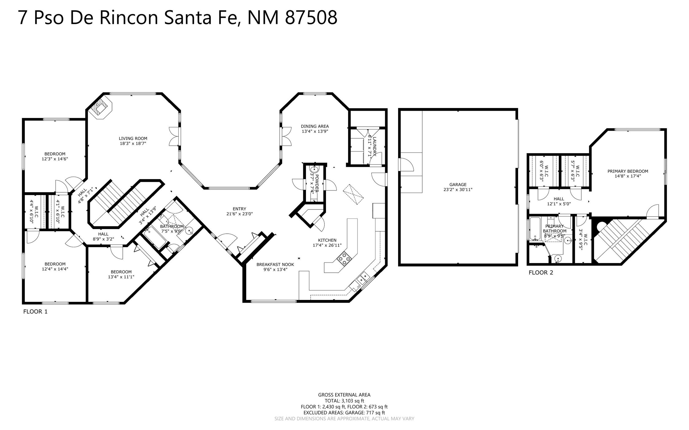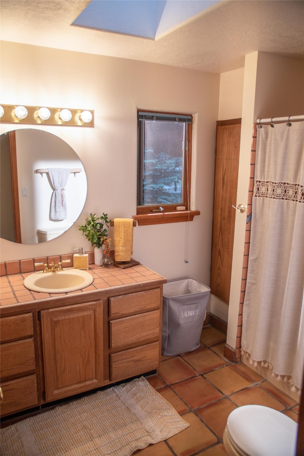 This stunning Santa Fe-style home features saltillo tile, with rustic vigas and charming latilla ceilings downstairs, celebrating the timeless Southwestern aesthetic. Create a culinary delight in the chef's kitchen or cozy up by the warm, inviting fireplace. Unwind in the soothing hot tub while soaking in panoramic views from your expansive lot. This residence is not only visually striking but also environmentally conscious, featuring a solar system with 200 amp service and EV charging capabilities in the garage. Ideally situated close to I-25, it provides an effortless commute to Albuquerque and Los Alamos, making it a perfect sanctuary for those seeking both luxury and convenience.