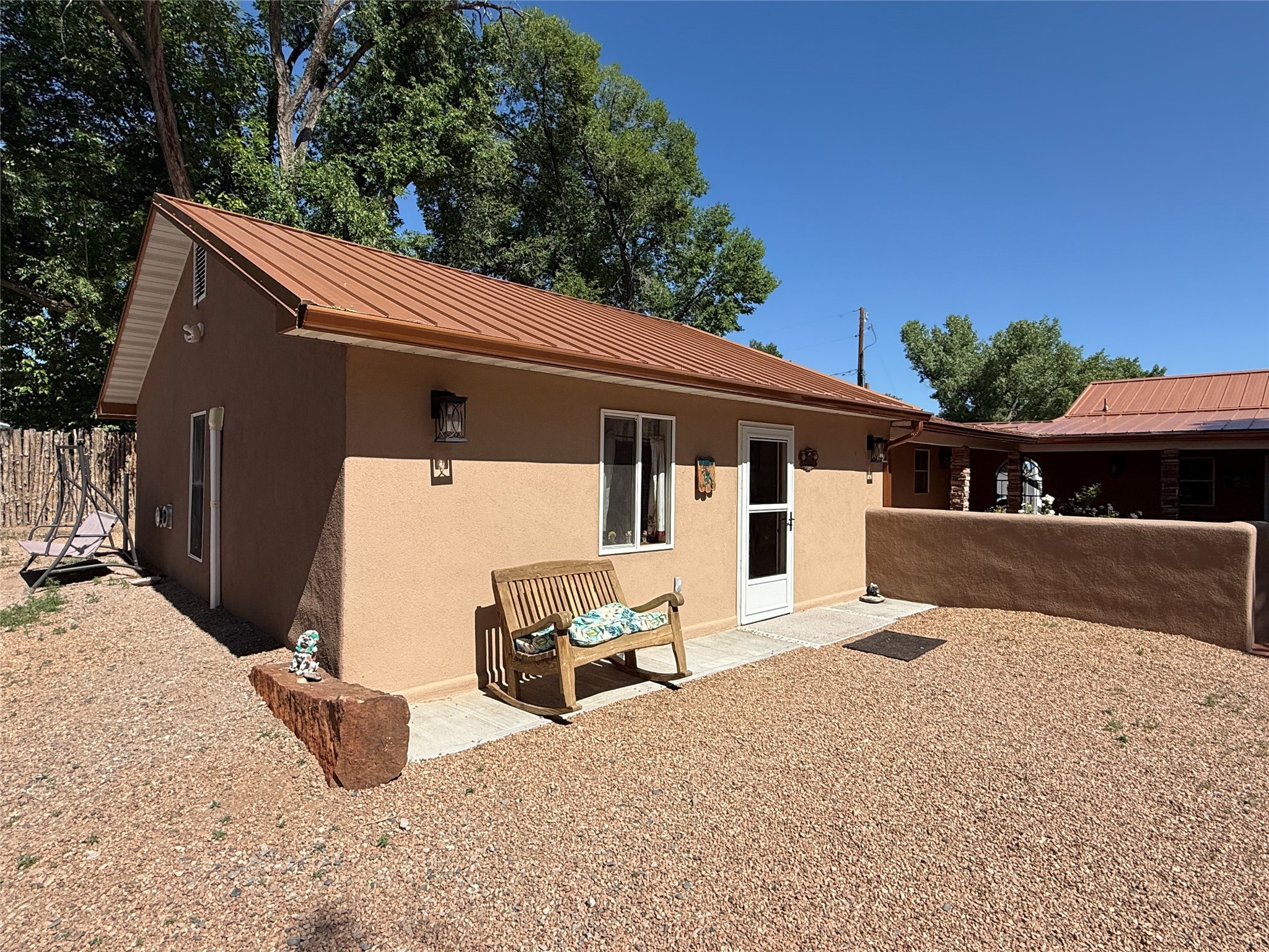 Welcome to this beautifully renovated home with a detached guest house, nestled on a half acre in the peaceful community of Sombrillo. The spacious main home features high vaulted ceilings with exposed beams, a generous open-concept living and dining area, and tasteful tile flooring throughout. The chef's kitchen has been fully updated and offers both style and functionality. The main house includes 2 bedrooms and 2 fully remodeled bathrooms.The detached guest house provides 2 additional bedrooms and 1 bathroom--perfect for guests, rental income, or multi-generational living. Enjoy the fully enclosed walled courtyard and a covered outdoor entertaining area, ideal for gatherings or quiet evenings. Additional features include: Private well and irrigation rights. Recent renovations: new roof, new windows, updated 220 electrical system. Remodeled kitchen and bathrooms in both homes. Tankless water heaters in both main and guest houses. Refrigerated air in the main house and three mini-splits in the guest house. Completely fenced property with latilla fencing on the side and back, rock wall with custom metal gates in front. Landscaped yard with sprinkler system for grassy areas. Designated concrete area for RV/camper parking. This move-in ready property offers a unique blend of modern upgrades and peaceful rural charm--don't miss your opportunity to own a versatile home in a serene setting.