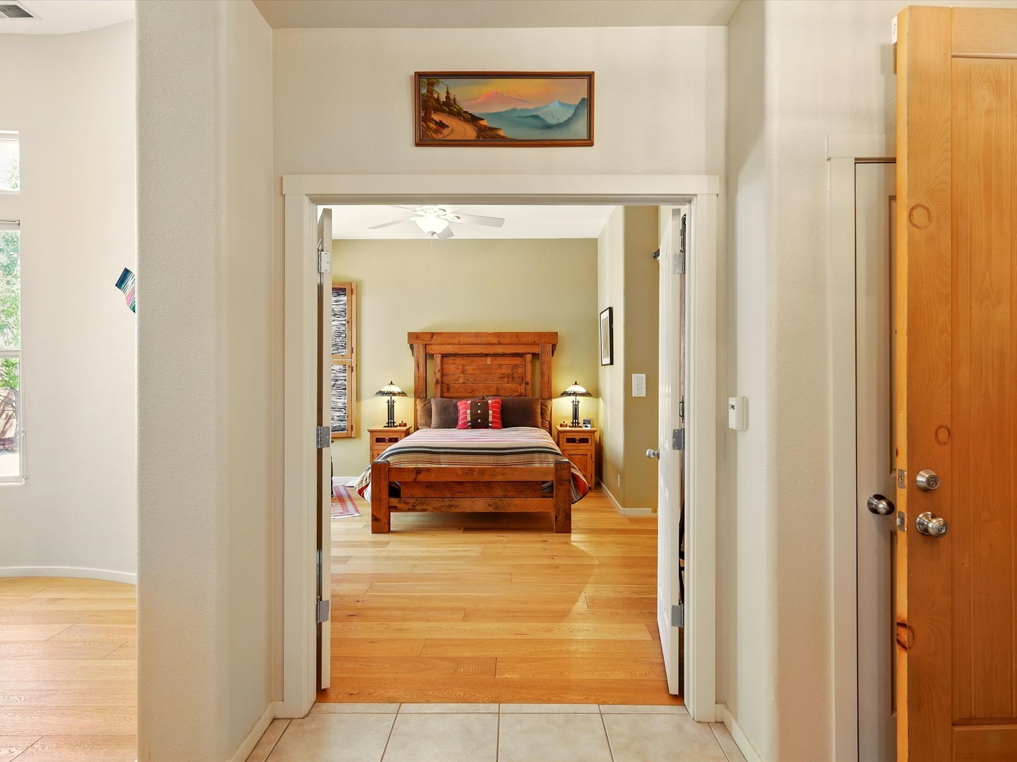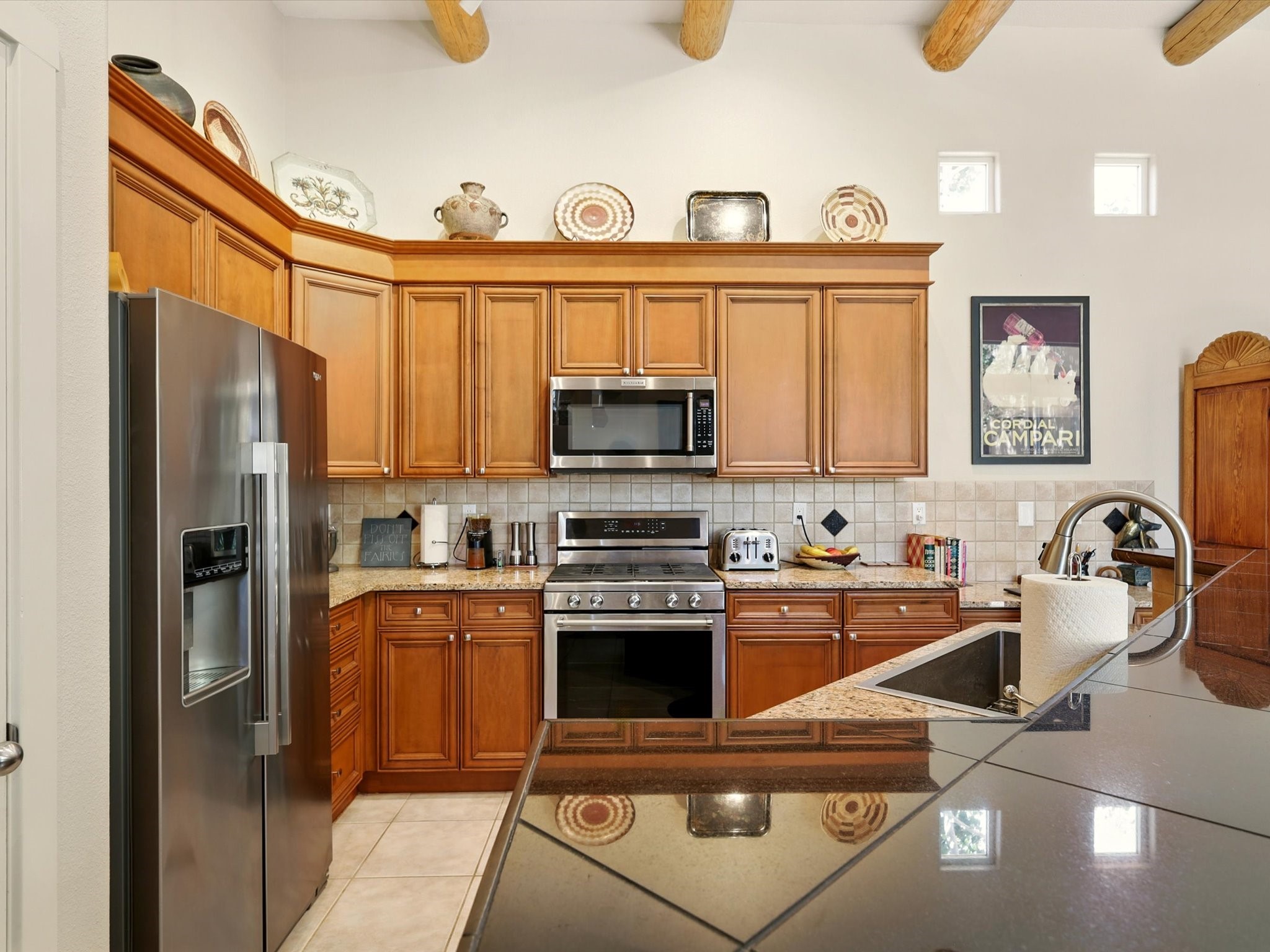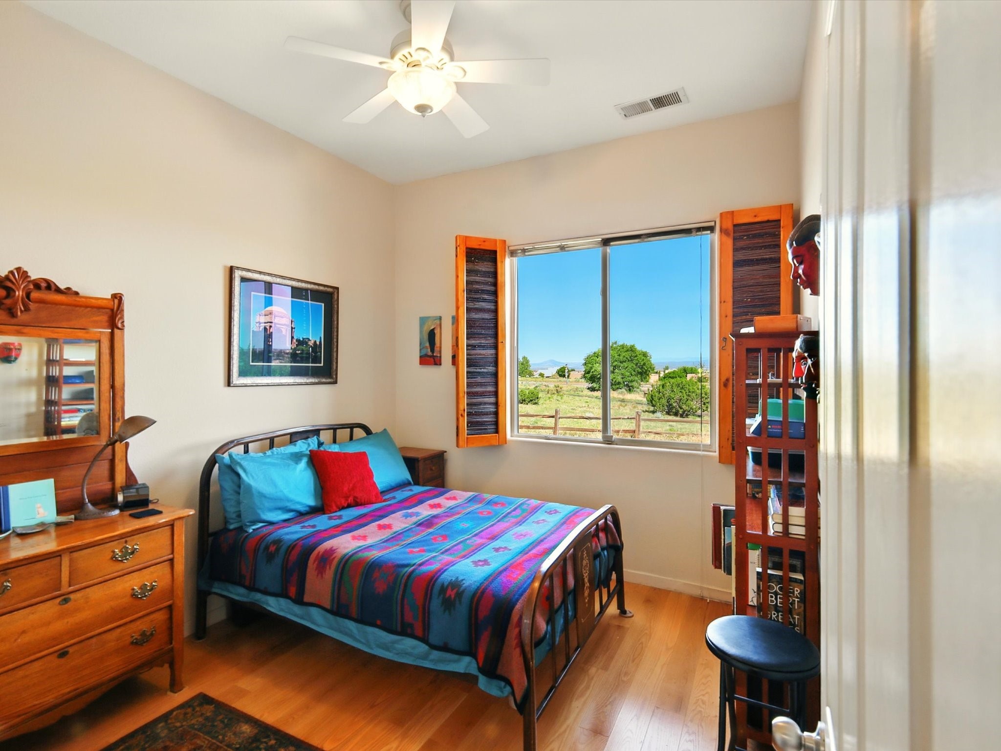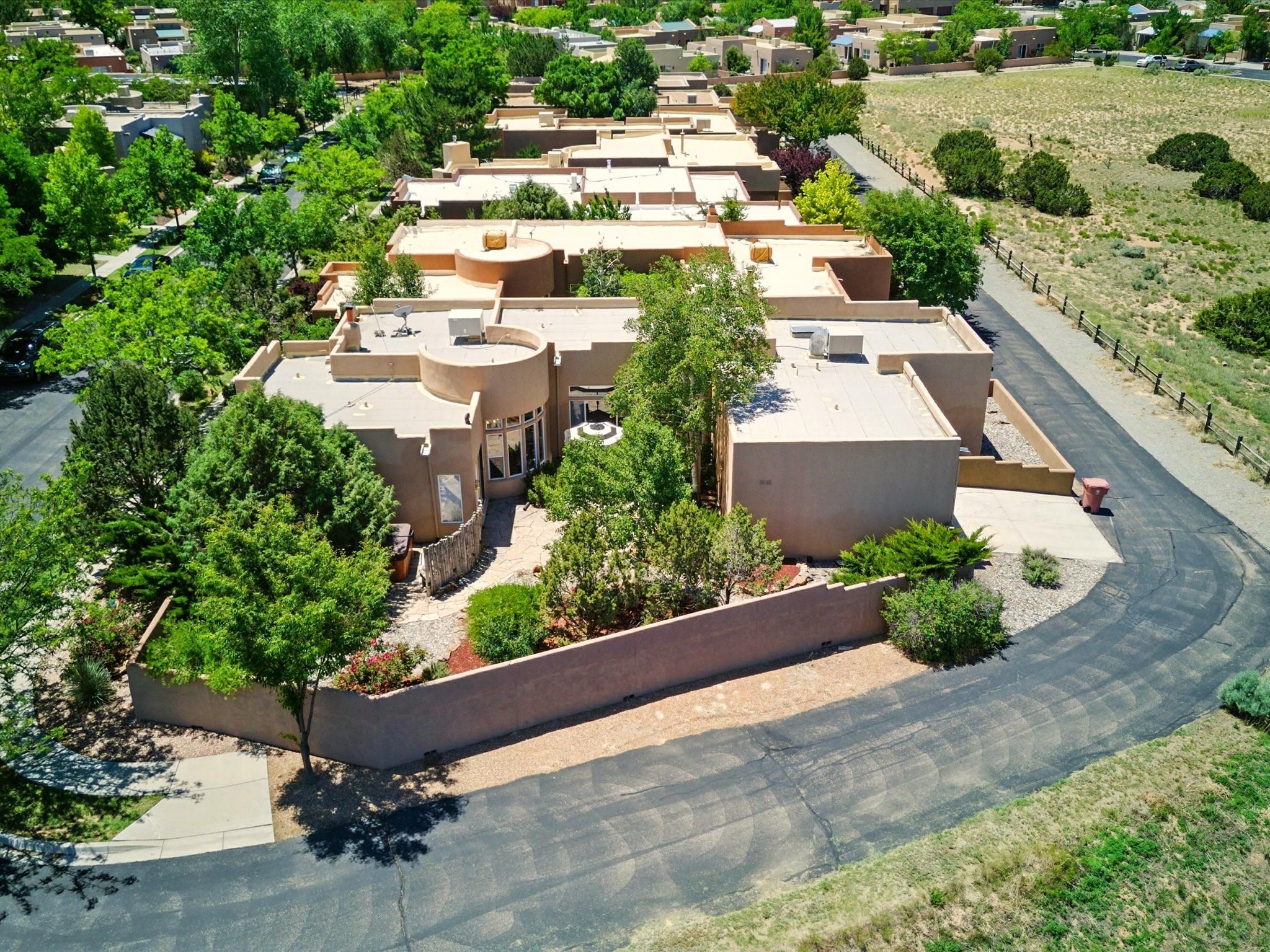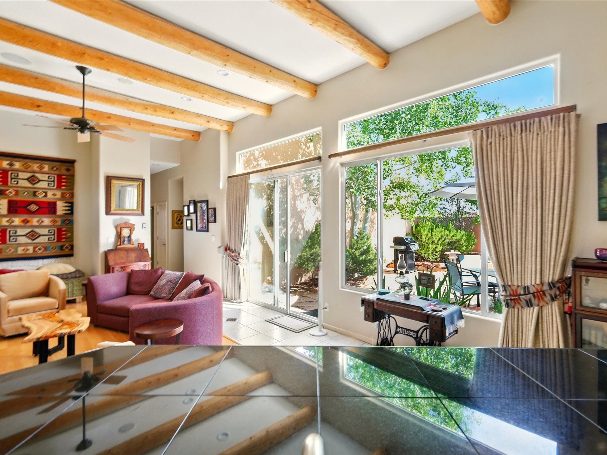 This is the special Rancho Viejo home you've been waiting for-- positioned on a fully landscaped corner lot at the end of the road, backing to open space and offering mountain views. The tranquil patio garden is a true retreat, featuring lush landscaping, custom wood doors, handcrafted sconces, and a tucked-away hot tub for ultimate relaxation. Inside, the home offers a thoughtful and spacious layout: three bedrooms, an office, a dedicated dining room, and two separate living areas, each with its own kiva fireplace. Every detail has been lovingly maintained. The primary suite includes a custom-designed closet, while the great room features upgraded Dolby Atmos ceiling speakers for an immersive audio experience. Throughout the home, lighting fixtures have been replaced with designer selections--no builder-grade finishes here. Set within the sought-after Rancho Viejo community, this home offers not just comfort but a connection to the land and sky. Known for its dark night skies and peaceful atmosphere, Rancho Viejo is ideal for stargazing from your own patio or enjoying the surrounding miles of walking trails. If you love a pastoral setting that feels quiet and removed, yet is still within easy reach of shopping, restaurants and short commuter routes, 29 Brilliant Sky Dr is a beautiful place to call home. Please enjoy the video tour attached to this listing.