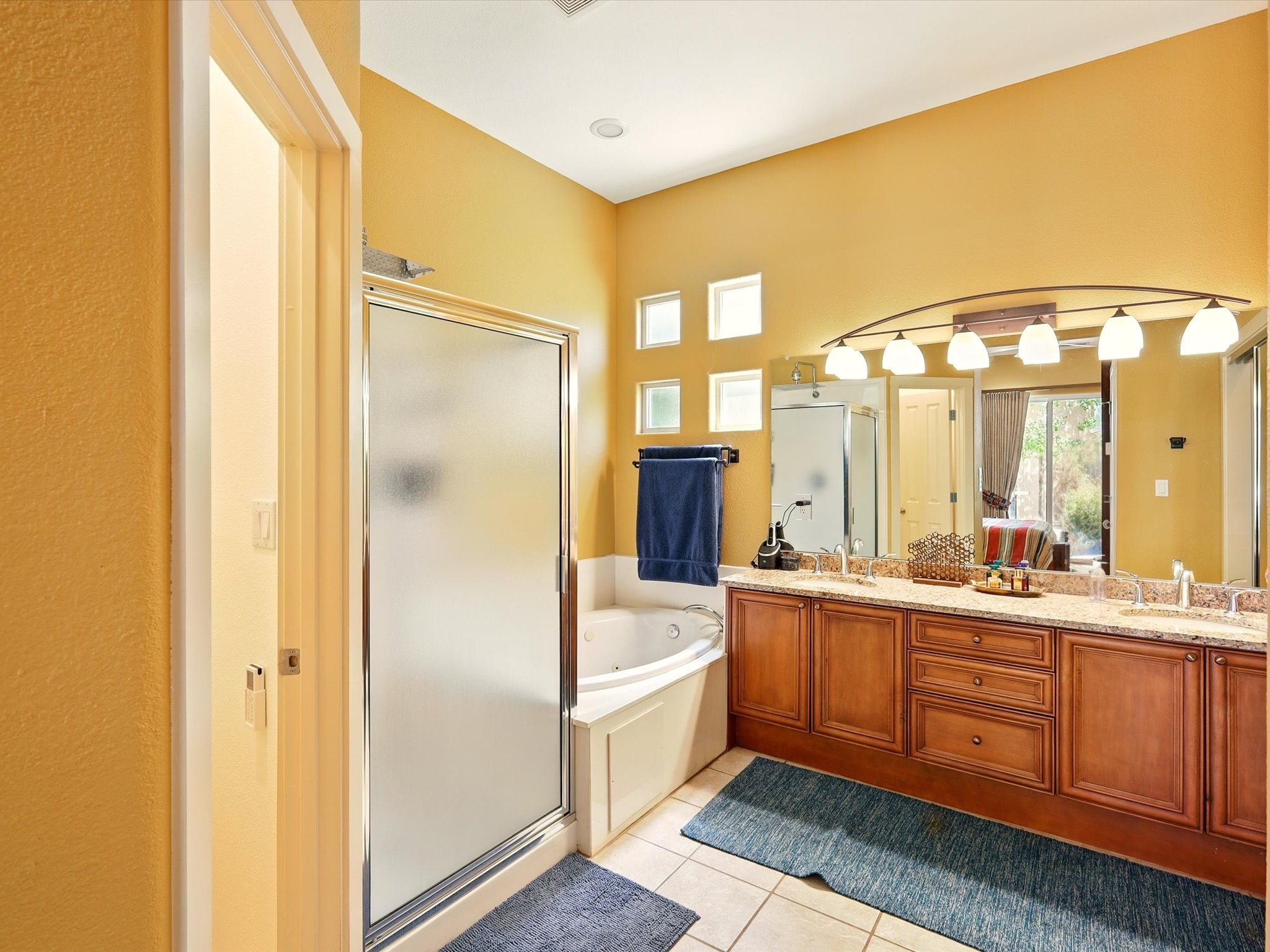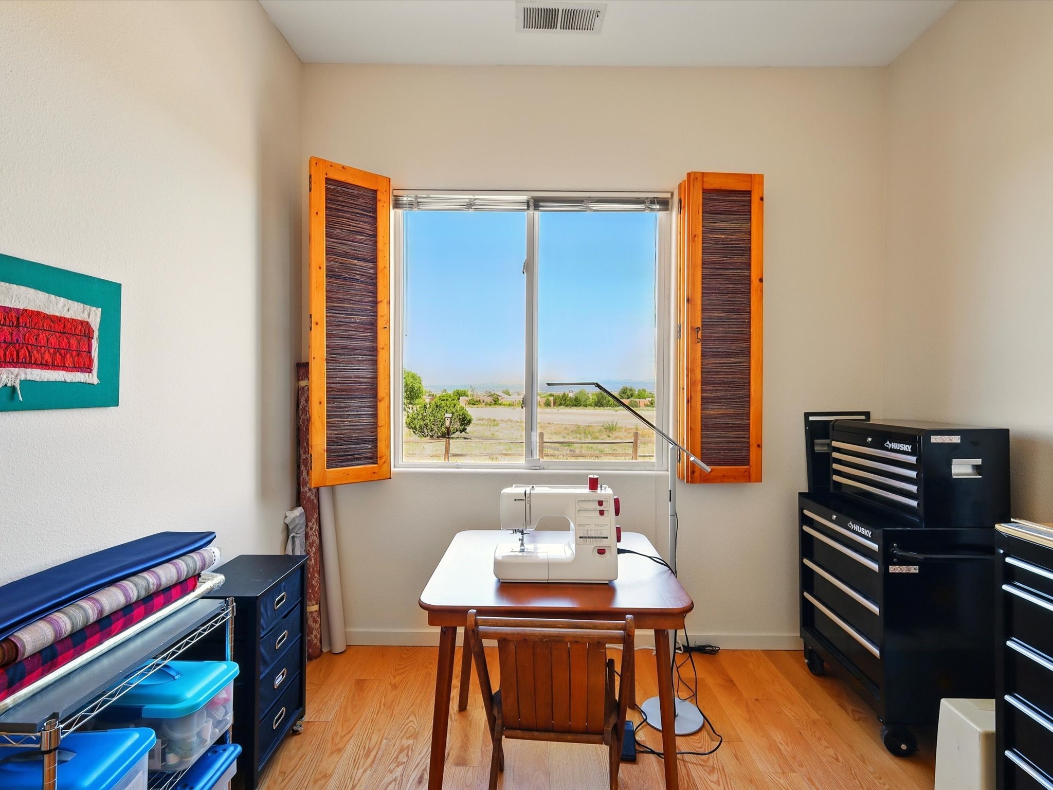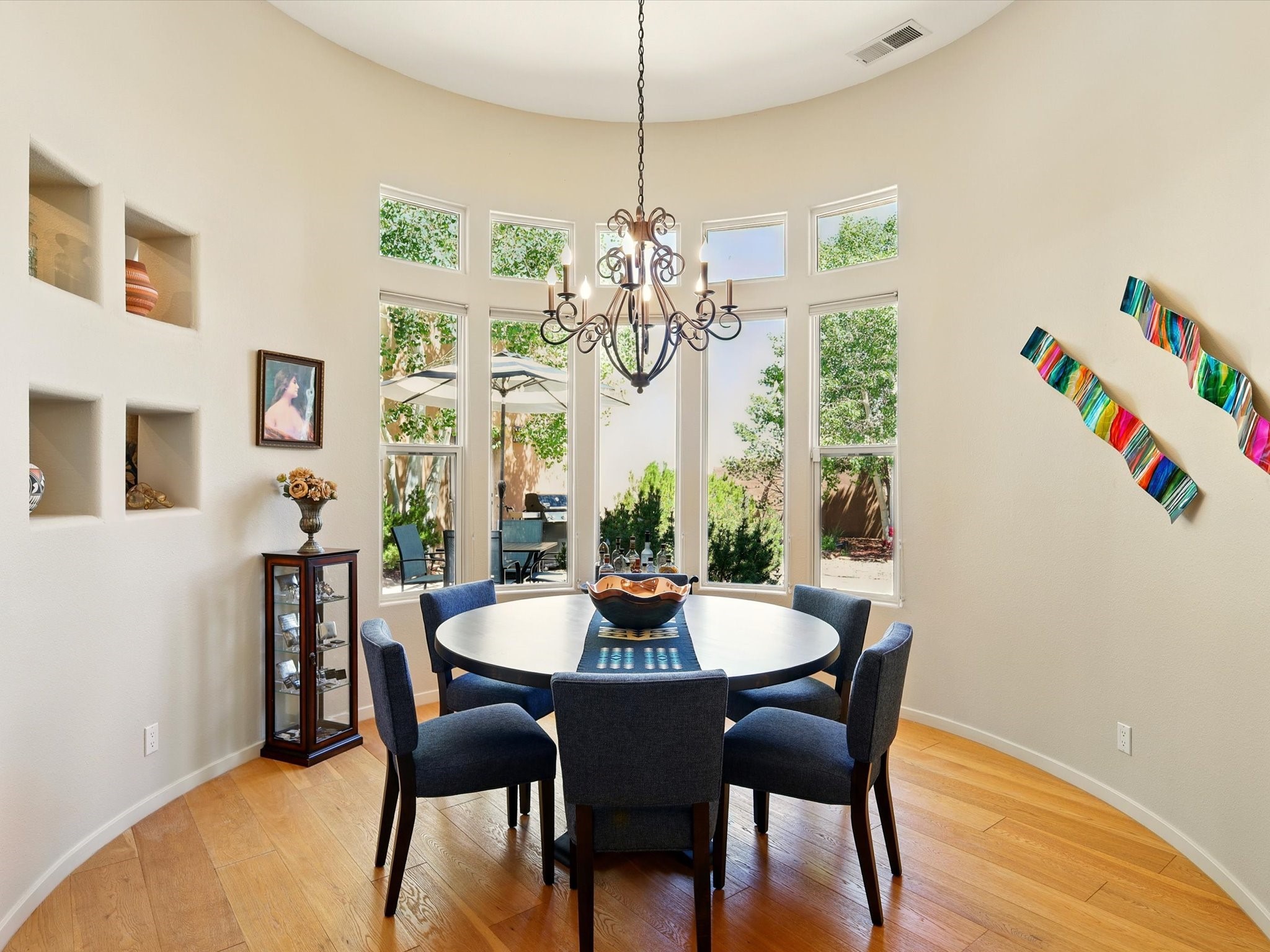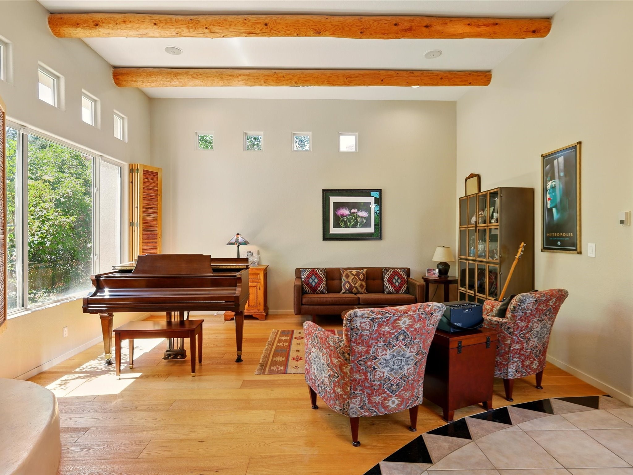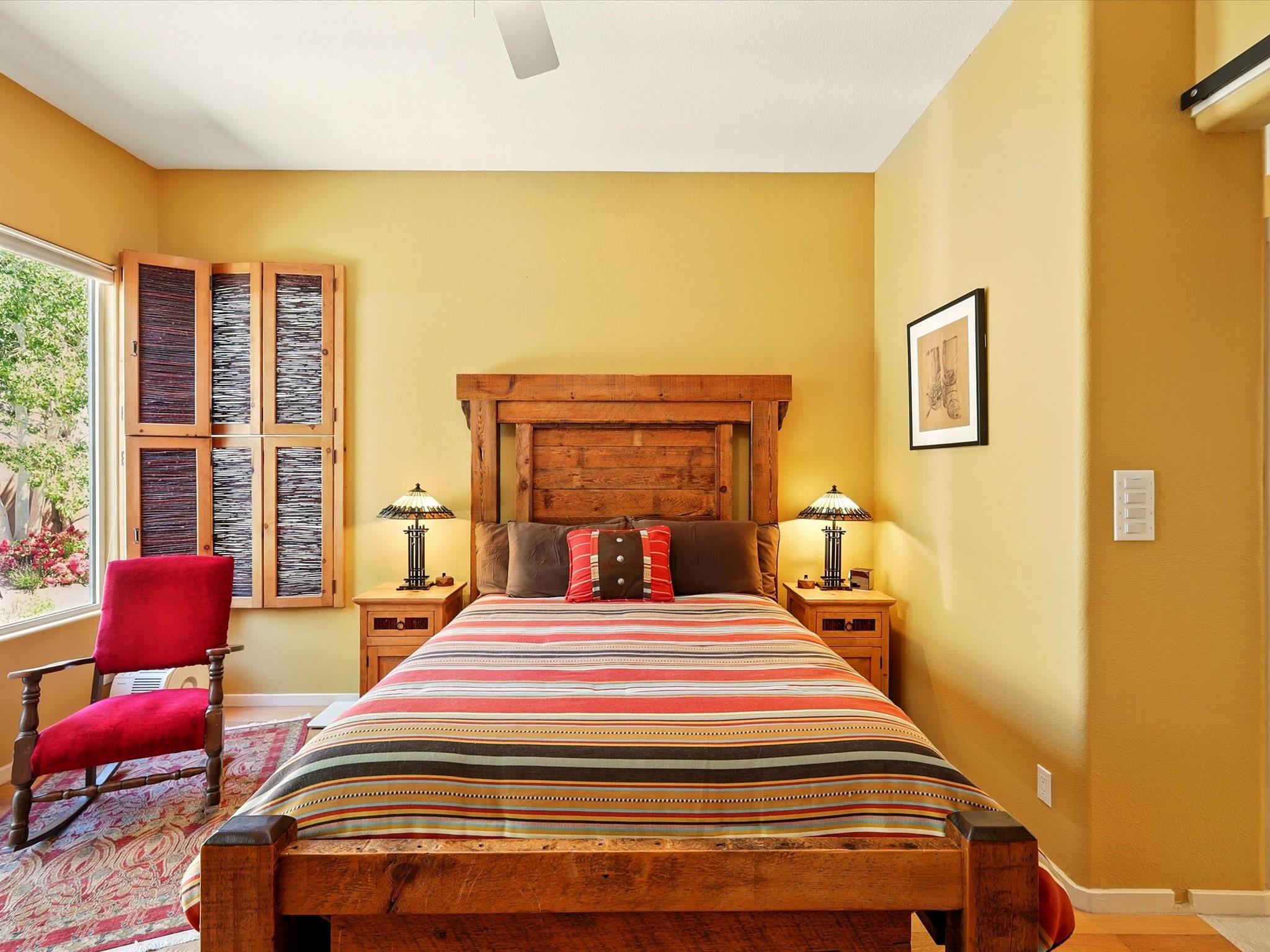 This is the special Rancho Viejo home you've been waiting for-- positioned on a fully landscaped corner lot at the end of the road, backing to open space and offering mountain views. The tranquil patio garden is a true retreat, featuring lush landscaping, custom wood doors, handcrafted sconces, and a tucked-away hot tub for ultimate relaxation. Inside, the home offers a thoughtful and spacious layout: three bedrooms, an office, a dedicated dining room, and two separate living areas, each with its own kiva fireplace. Every detail has been lovingly maintained. The primary suite includes a custom-designed closet, while the great room features upgraded Dolby Atmos ceiling speakers for an immersive audio experience. Throughout the home, lighting fixtures have been replaced with designer selections--no builder-grade finishes here. Set within the sought-after Rancho Viejo community, this home offers not just comfort but a connection to the land and sky. Known for its dark night skies and peaceful atmosphere, Rancho Viejo is ideal for stargazing from your own patio or enjoying the surrounding miles of walking trails. If you love a pastoral setting that feels quiet and removed, yet is still within easy reach of shopping, restaurants and short commuter routes, 29 Brilliant Sky Dr is a beautiful place to call home. Please enjoy the video tour attached to this listing.