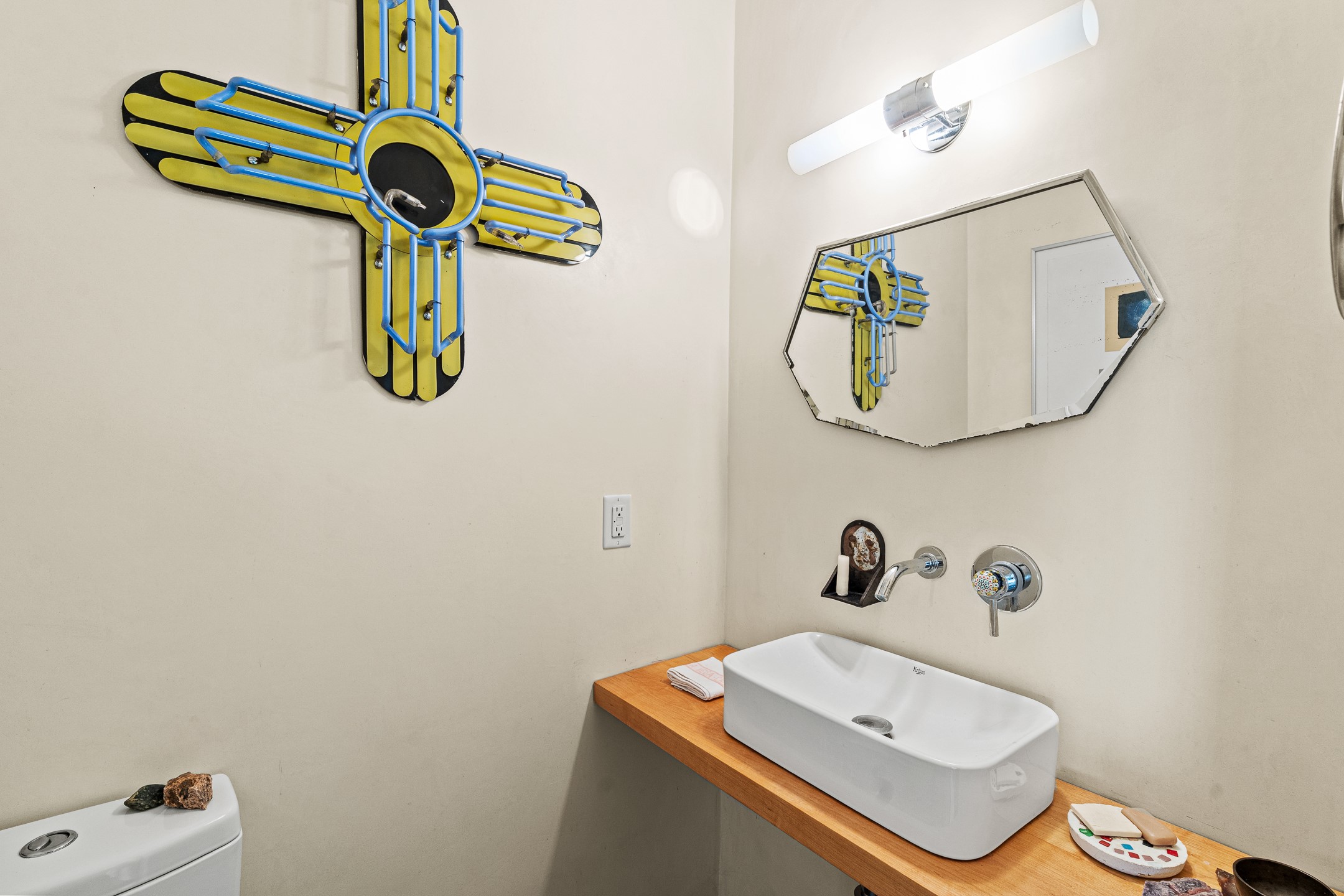 Modern Santa Fe Retreat with Pool, Hot Tub & Sauna on 1.9 Acres. Discover contemporary comfort just off Old Santa Fe Trail. This beautifully designed 4-bedroom, 4-bathroom home offers approx. 3,900 sq. ft. of stylish living space on 1.9 private acres--just 10 minutes from the Santa Fe Plaza. Enjoy a light-filled, open-concept living and dining area with large picture windows that frame views of the expansive backyard, complete with a patio, swimming pool, and hot tub--ideal for entertaining or relaxing under the New Mexico sky. The gourmet kitchen features high-end appliances, plenty of natural light, and a modern layout perfect for cooking and gathering. The spacious primary suite flows into a versatile open area--ideal as a family room, home office, or art studio. Downstairs, three guest bedrooms share a luxurious full bathroom. At the end of the hall is a separate fully finished basement perfect for a family room/game room which includes ample storage space. Adjoining the family room is a cedar sauna and bath for spa-like relaxation. The 1.9 acre lot is adorned by a pinon forest with serene walking trails which connect to the trails of the Mountain Cloud Zen center and the foothills of Santa Fe. This neighborhood boasts the fastest internet in Santa Fe. Whether you're looking for a full-time residence with the perfect work from home environment or a serene escape, this home blends modern amenities with the peaceful charm of Santa Fe living.