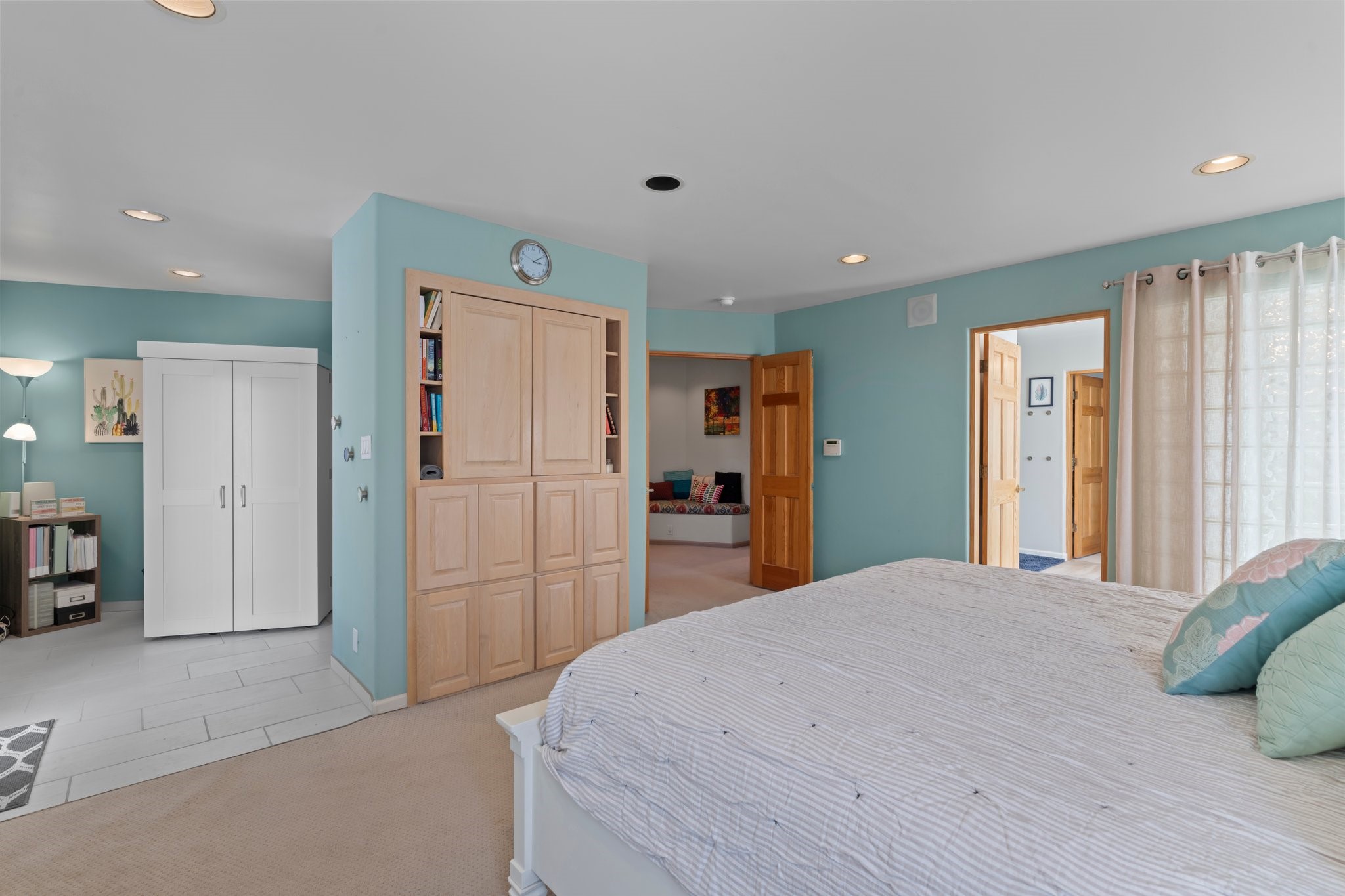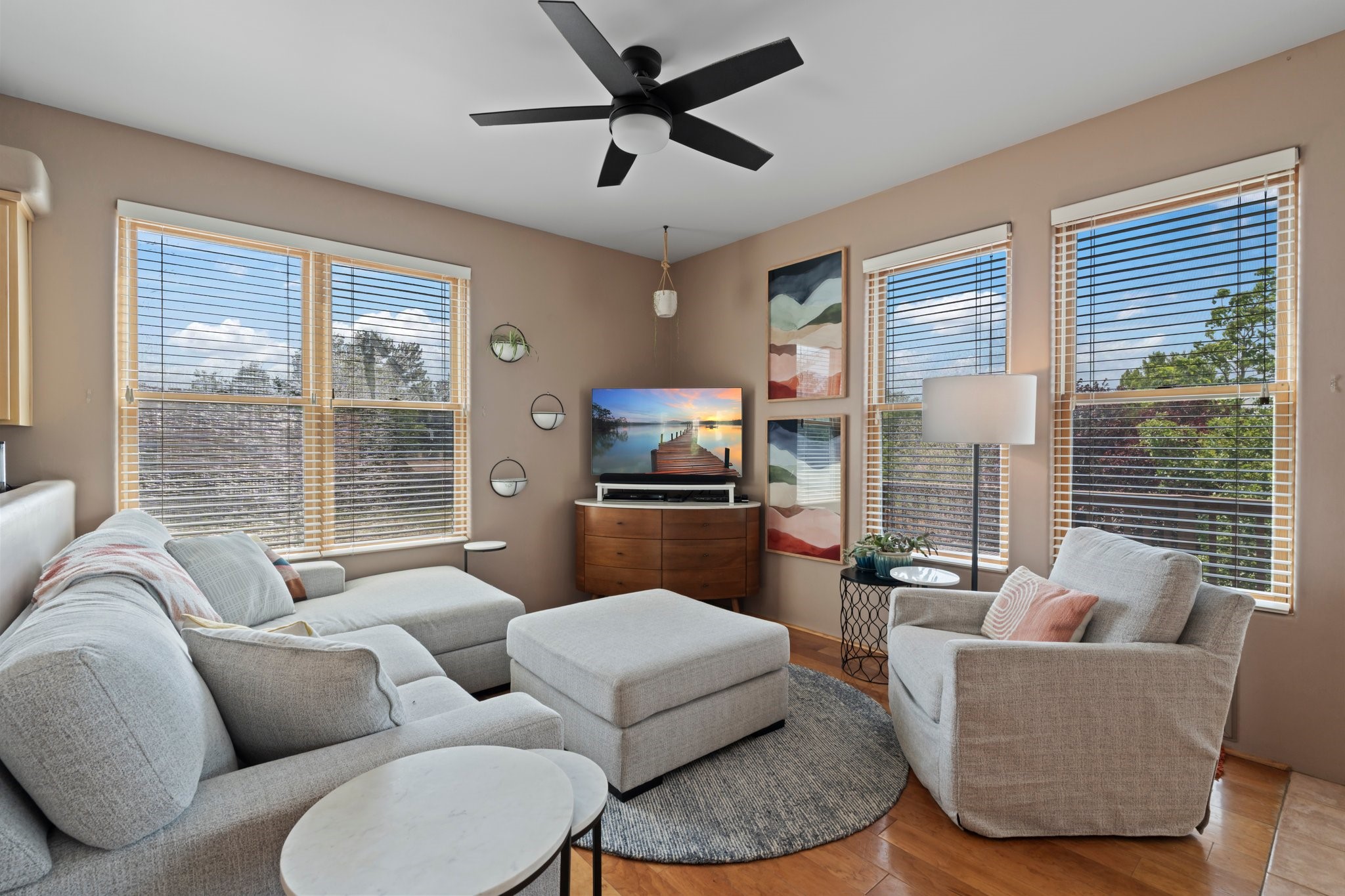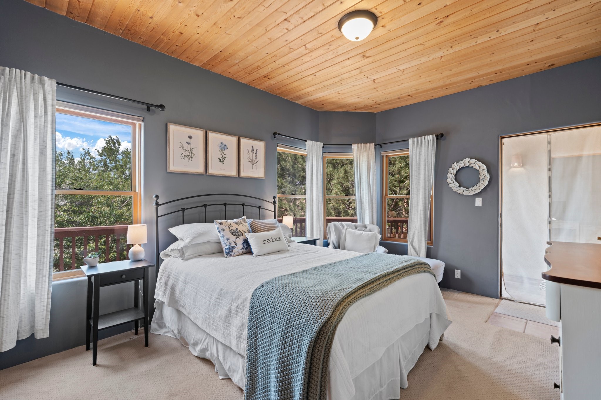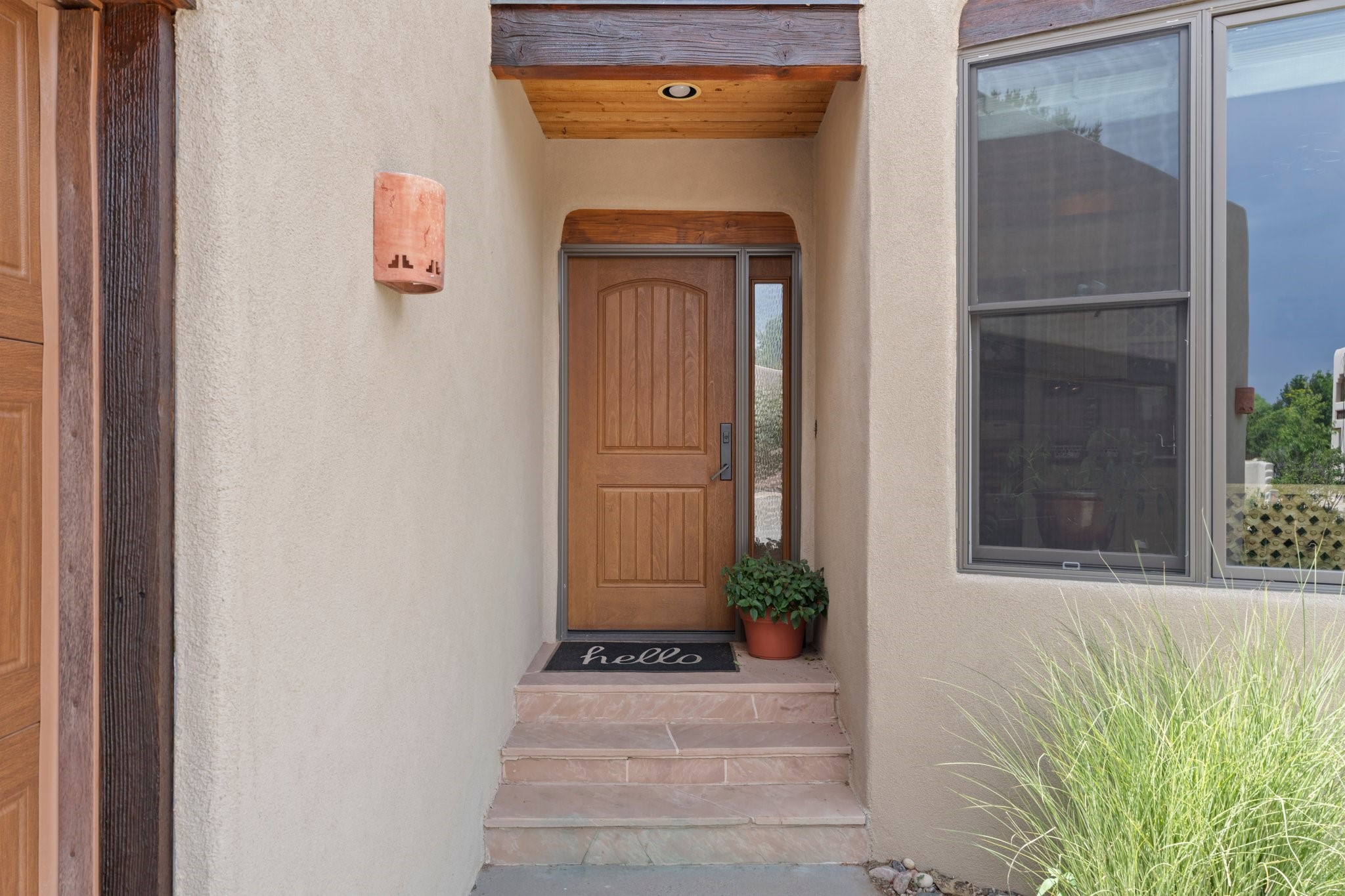Welcome to your private sanctuary nestled on nearly a fifth of an acre of beautifully landscaped grounds, where comfort meets thoughtful design and timeless charm. This expansive 2,859 sq ft home, complemented by a detached 293 sq ft studio and a 308 sq ft storage space, offers exceptional versatility for modern living.Step inside to discover a spacious two-level layout designed with privacy and flow in mind. The main level is an entertainer's dream, featuring a light-filled chef's kitchen with granite countertops, a large center island, and newer appliances. The open dining area flows effortlessly into the family room with the living room just to the right of the front door, creating an inviting space for gatherings or quiet evenings at home. A full bath and a private bedroom on this level add convenience and flexibility for guests or a home office.Downstairs, you'll find the luxurious primary suite, where a spectacularly remodeled bathroom and expansive walk-in closet provide a serene retreat. Two additional well-appointed bedrooms, a stylish updated bathroom, and a conveniently located laundry room complete the lower level.Outside, the magic continues. The backyard is a peaceful haven with lush shade trees, a romantic sitting area, and a charming outdoor corner fireplace--perfect for alfresco evenings under the stars. Whether you're hosting guests or enjoying a quiet morning coffee, this outdoor space is designed to inspire.Additional highlights include a newer 4-year-old TPO roof, recently updated stucco, upgraded Pella picture windows, and a two-car garage with easy access to the kitchen.Don't miss this amazing home convenient to all things Santa Fe!