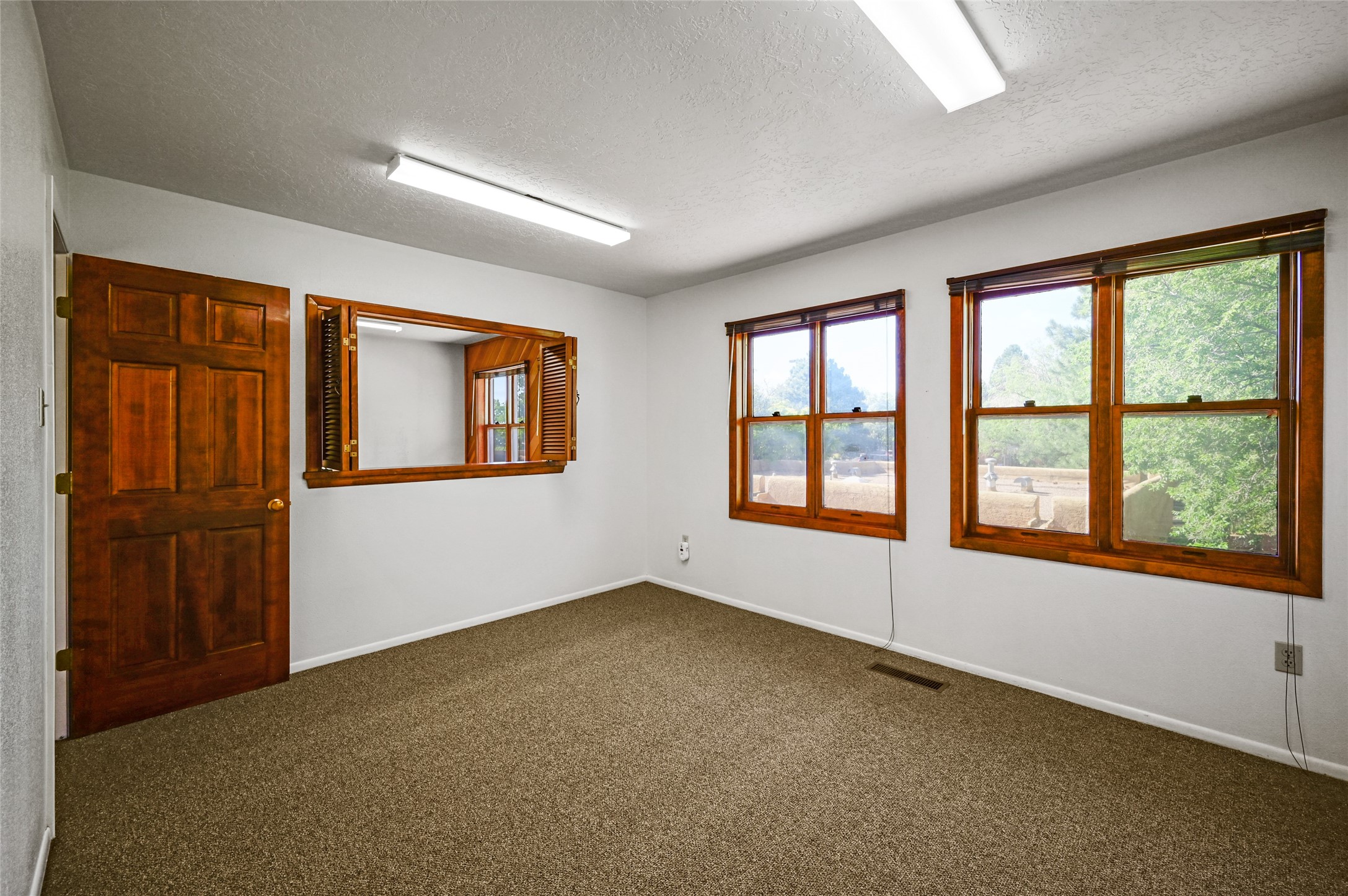 Desirable two-story office condo for sale in the Saint Francis Professional Center (Clock Tower). The space features four windowed offices, one with a charming kiva fireplace and two with built-in bookcases. It also includes a private restroom, a spacious waiting/reception area with ample storage, and newly installed commercial-grade carpet throughout. Conveniently located just off South St. Francis Drive, the property offers easy access to I-25, restaurants, and shopping. Condo dues are approximately $573 quarterly. A great opportunity for a small business or satellite office.
