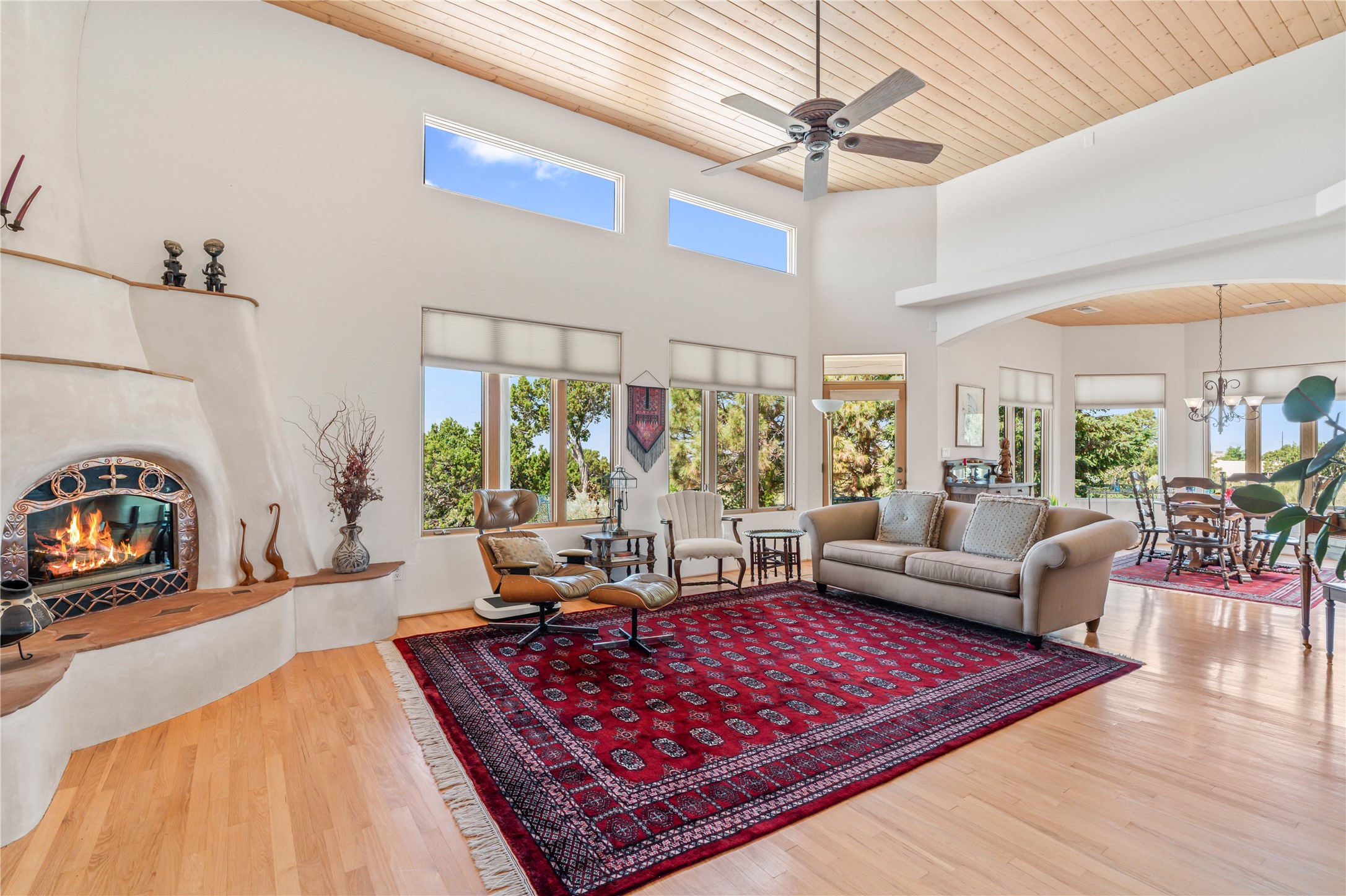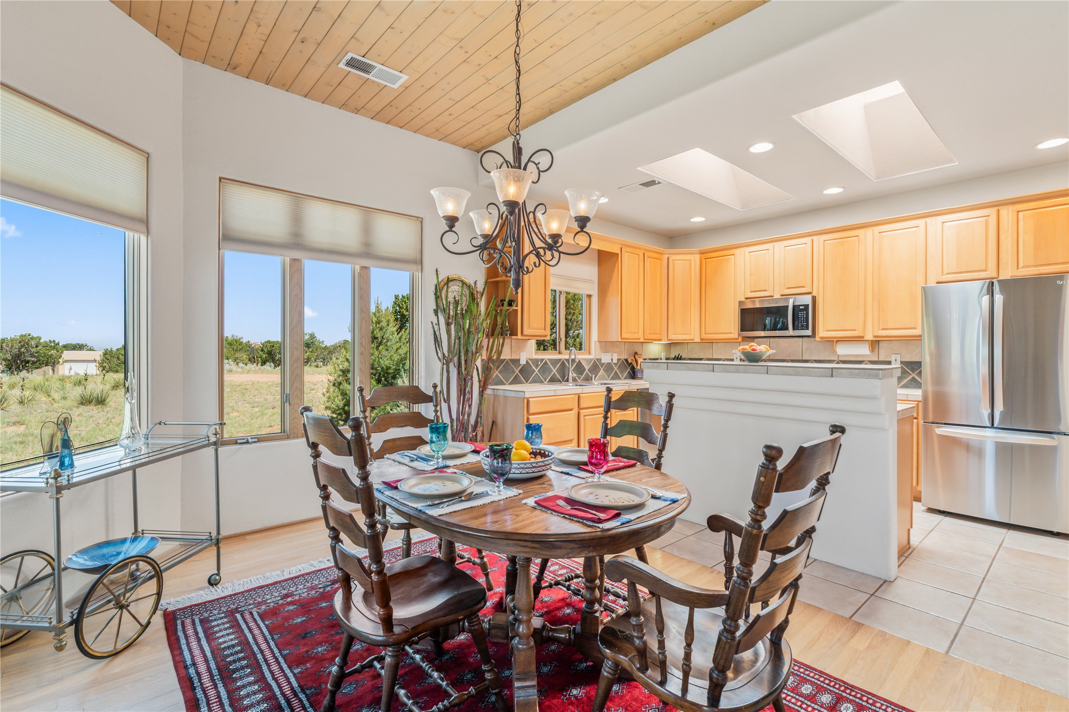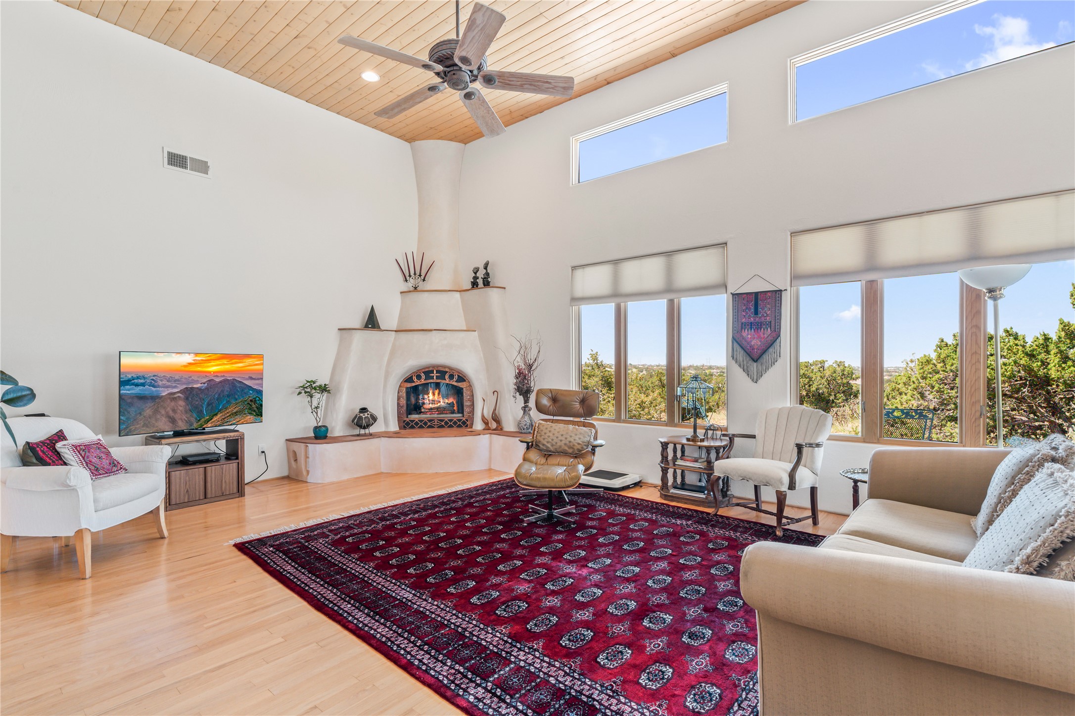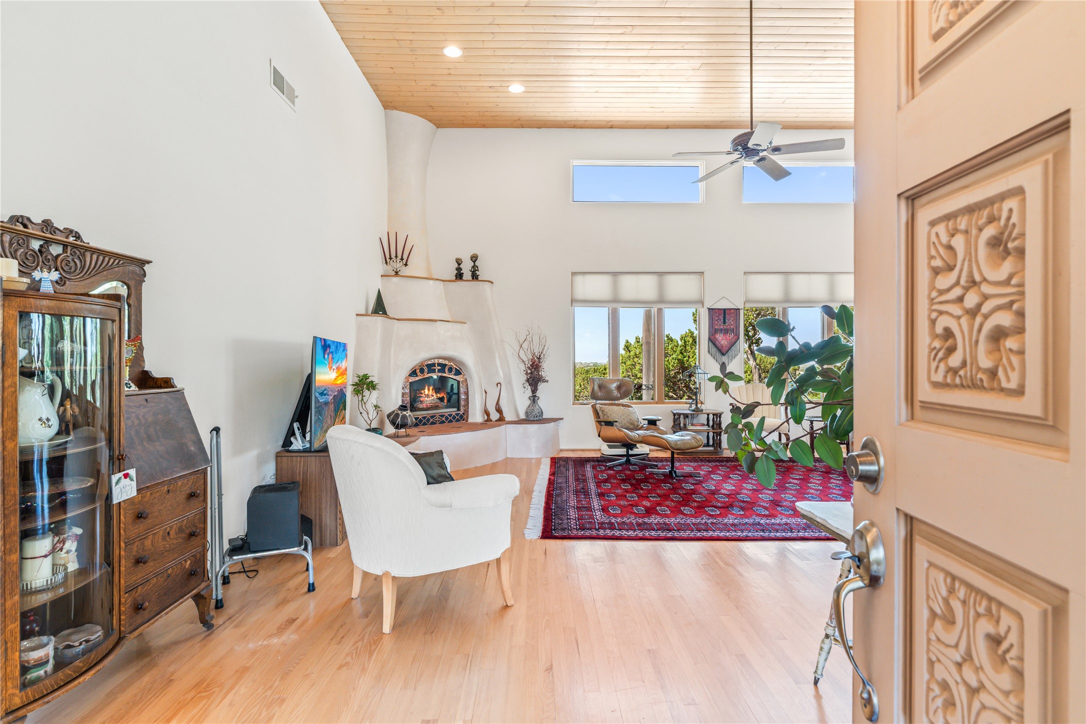 FIRST TIME ON THE MARKET! Gorgeous custom one-owner home sited high on a cul-de-sac for wonderful mountain views. Beautiful great room with sculpted handmade kiva fireplace and 14' cedar plank ceilings. Brand new stainless appliances including range, refrigerator, dishwasher, washer, dryer, microwave and kitchen sink. Kitchen opens to dining and living room with an island for an extra work area. Spacious pantry. Primary suite has exterior access, jetted tub, separate shower, double sinks and walk-in closet. Forced air heating and refrigerated air. Backs up to open space. PRIVATE WELL. This home has ample storage. Water heater and HVAC new in 2022. South-facing windows have UV coating to protect furniture. NO STEPS. NO CARPET. NO KITEC. NO WATER BILL. Property has been pre-inspected and most repairs completed. Report available on request.