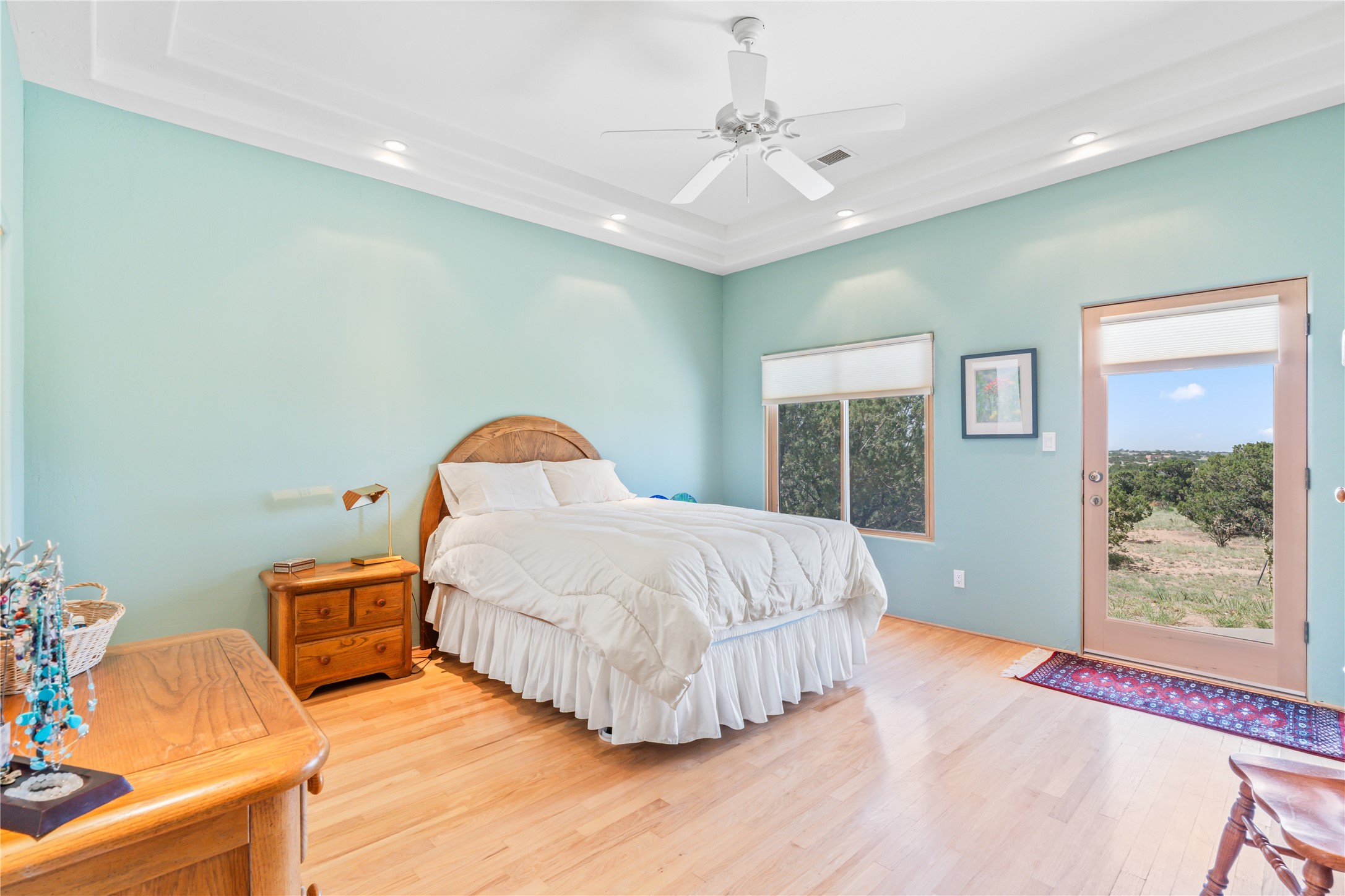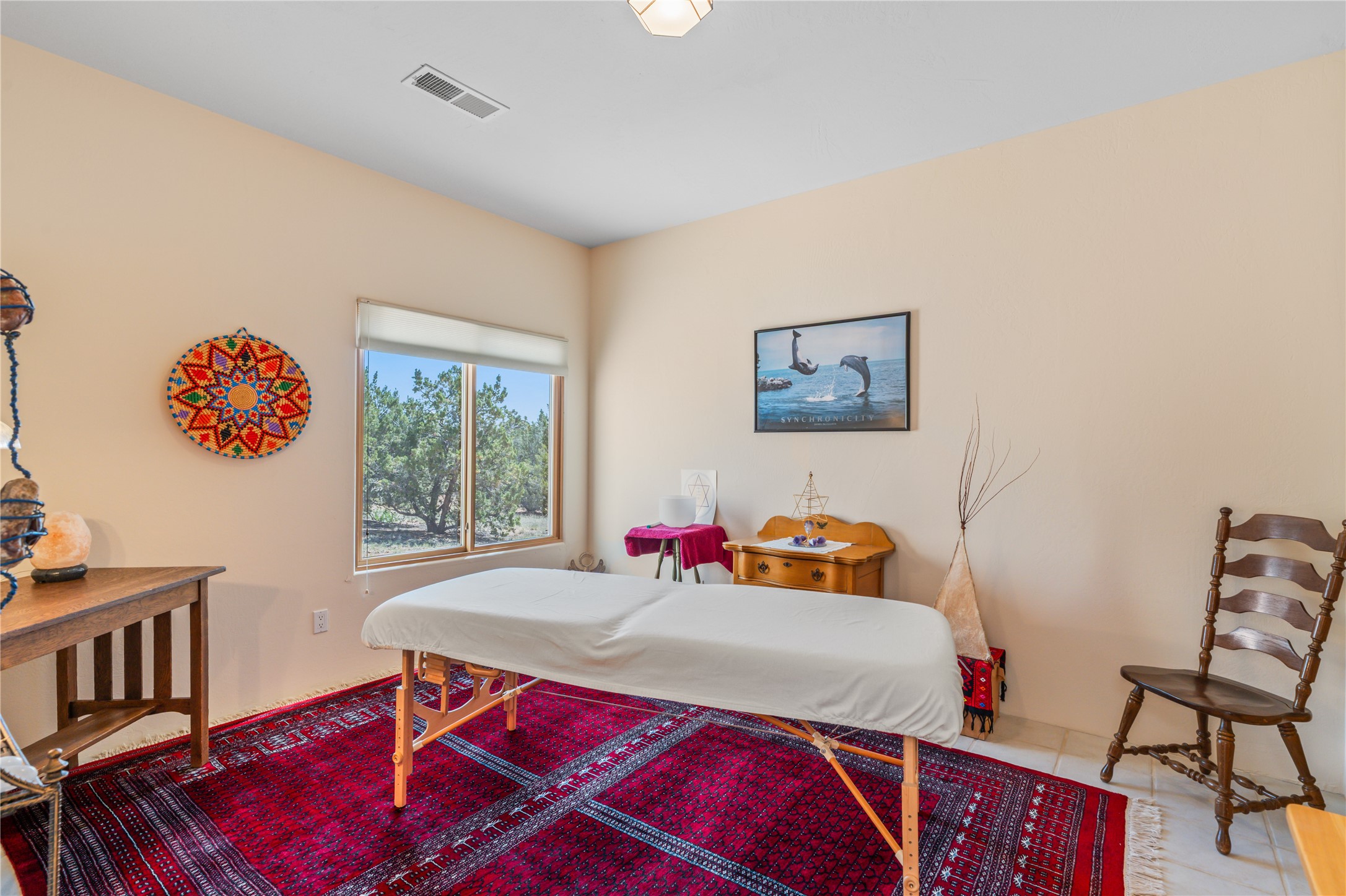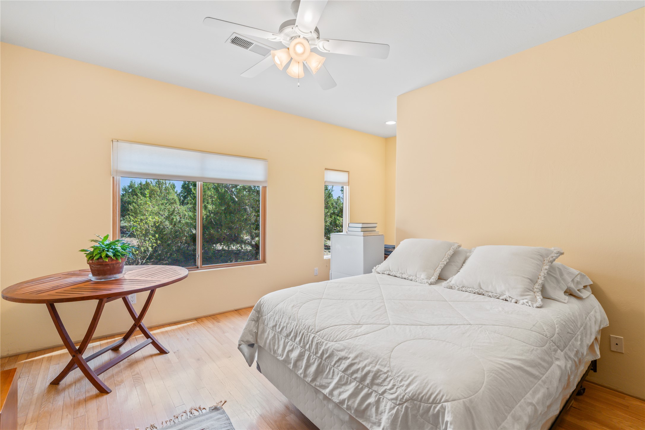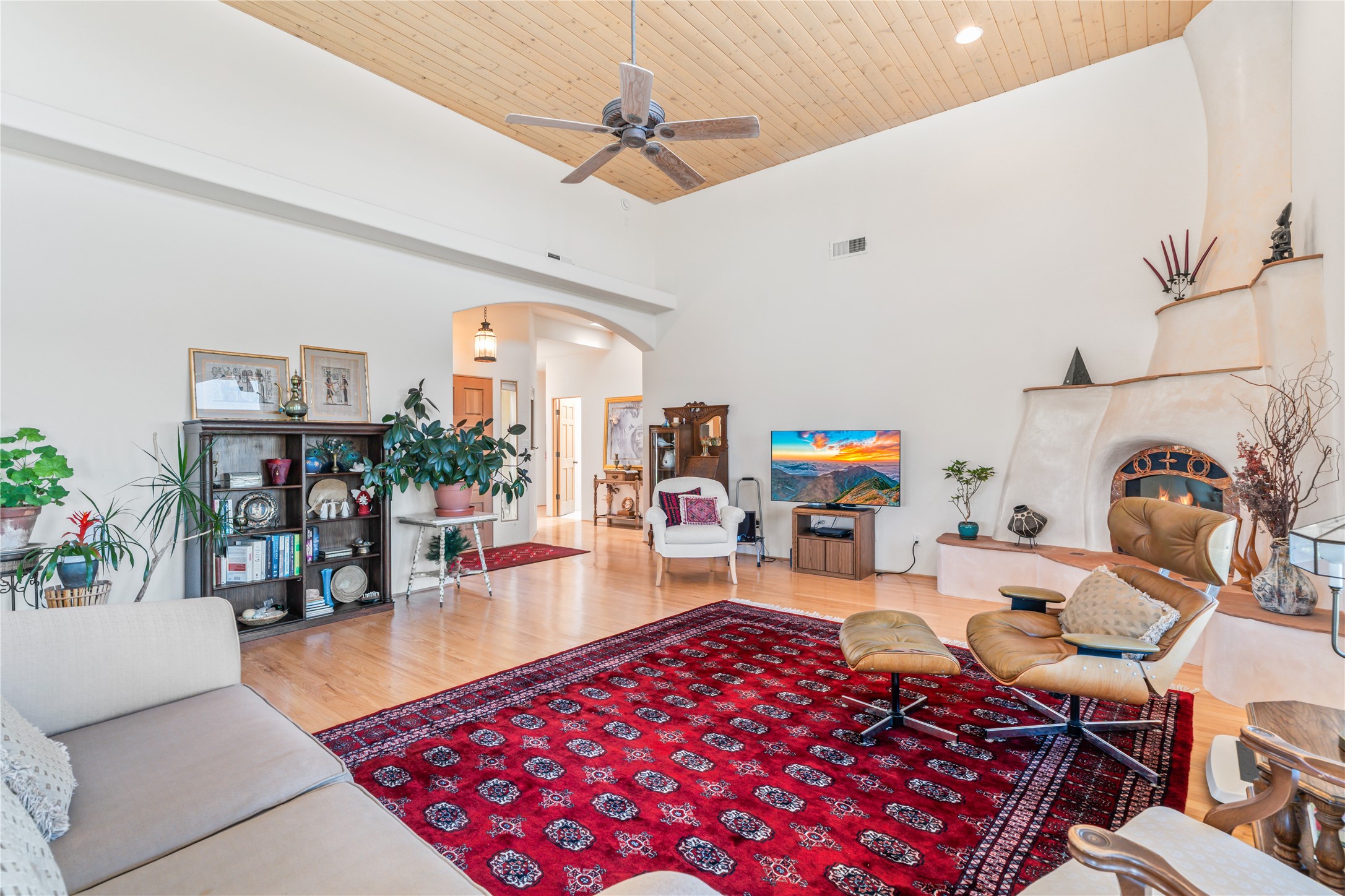 FIRST TIME ON THE MARKET! Gorgeous custom one-owner home sited high on a cul-de-sac for wonderful mountain views. Beautiful great room with sculpted handmade kiva fireplace and 14' cedar plank ceilings. Brand new stainless appliances including range, refrigerator, dishwasher, washer, dryer, microwave and kitchen sink. Kitchen opens to dining and living room with an island for an extra work area. Spacious pantry. Primary suite has exterior access, jetted tub, separate shower, double sinks and walk-in closet. Forced air heating and refrigerated air. Backs up to open space. PRIVATE WELL. This home has ample storage. Water heater and HVAC new in 2022. South-facing windows have UV coating to protect furniture. NO STEPS. NO CARPET. NO KITEC. NO WATER BILL. Property has been pre-inspected and most repairs completed. Report available on request.