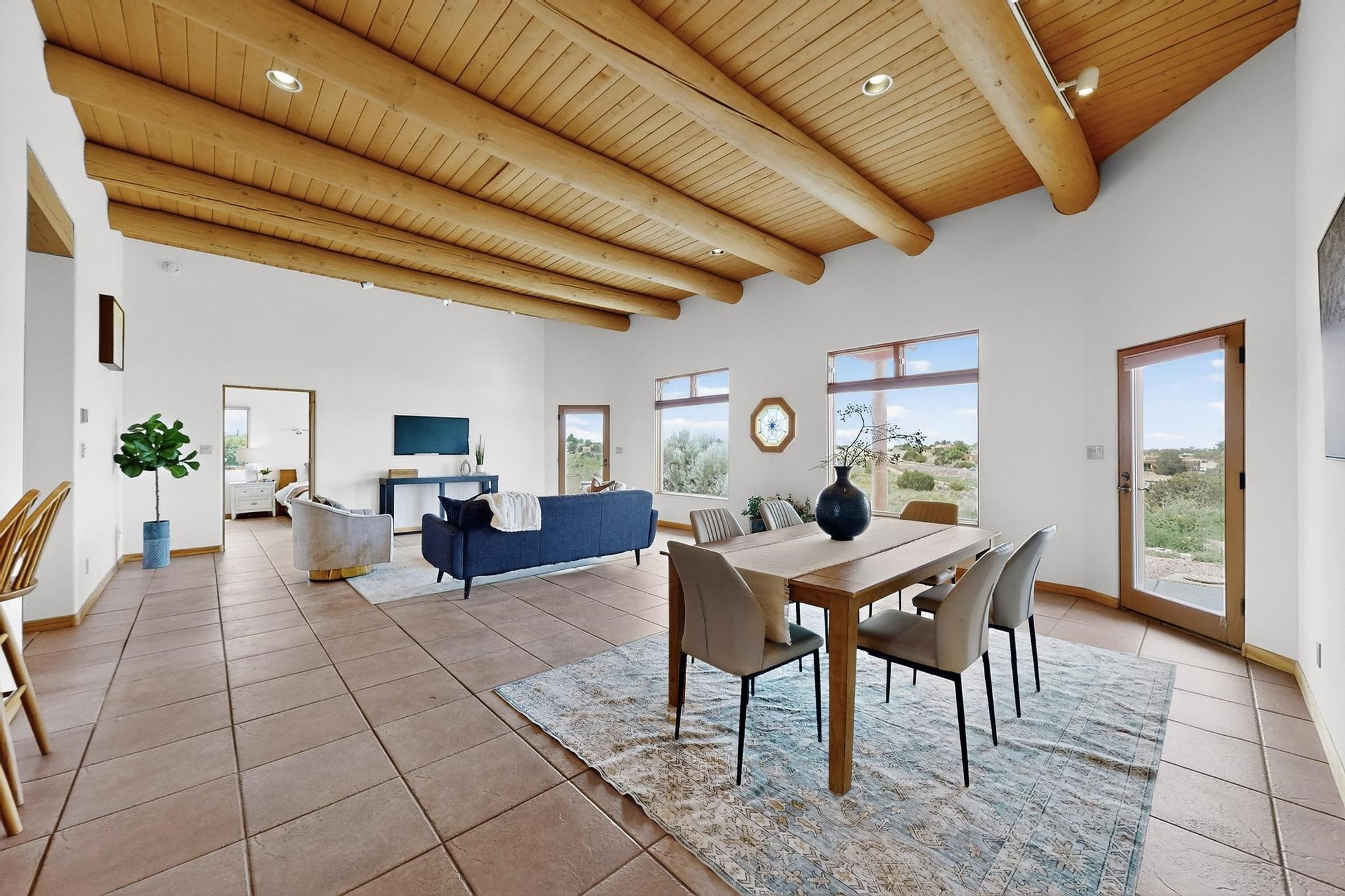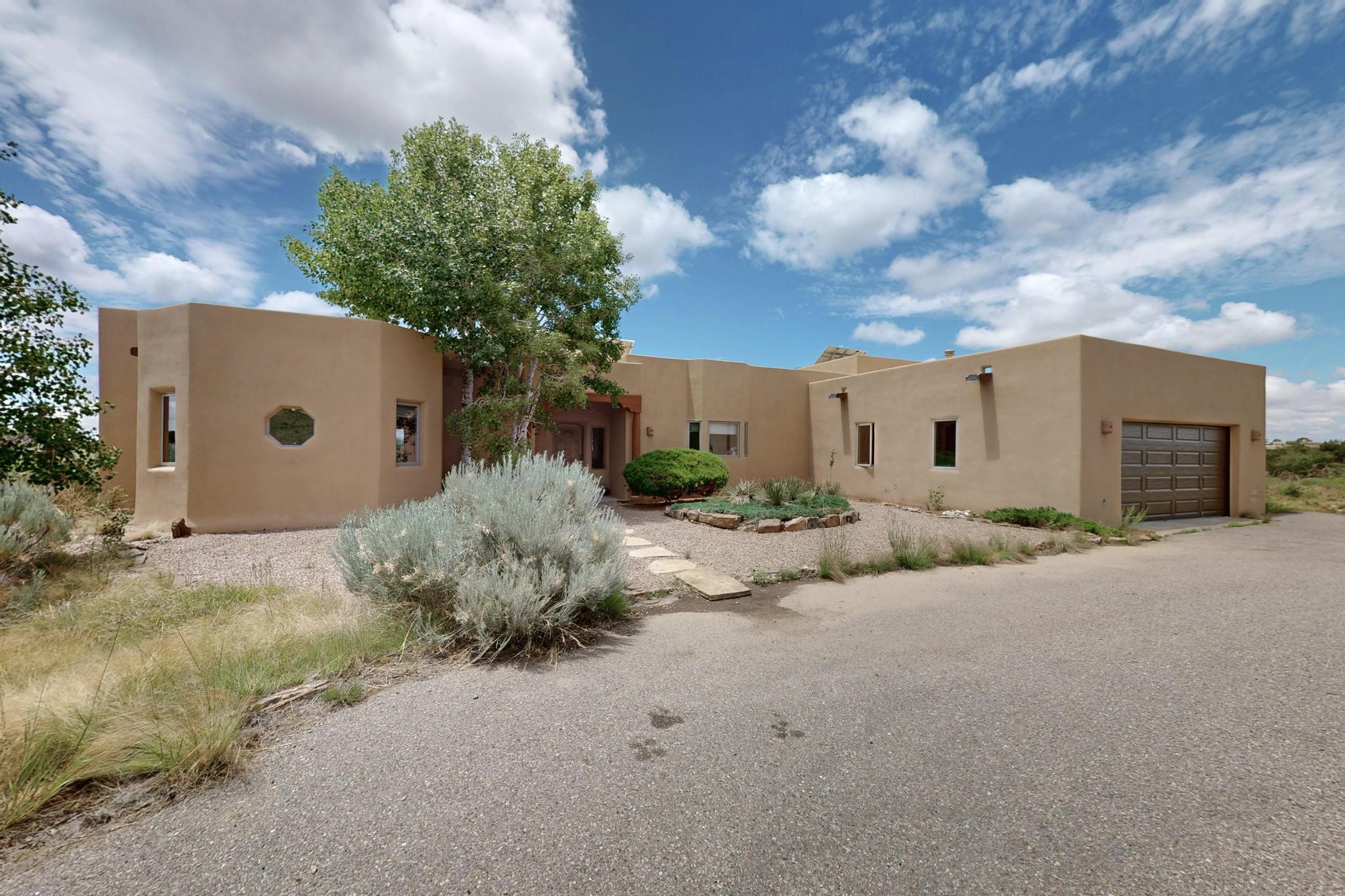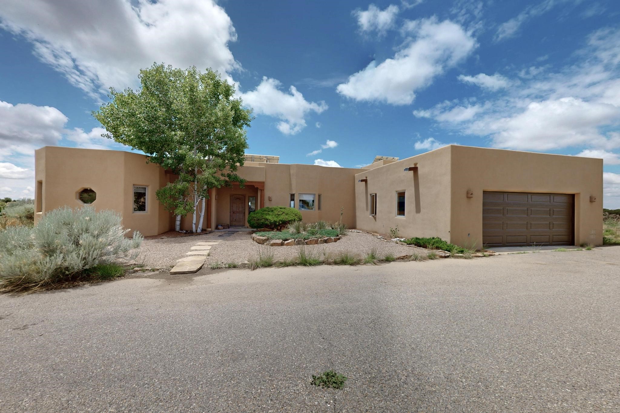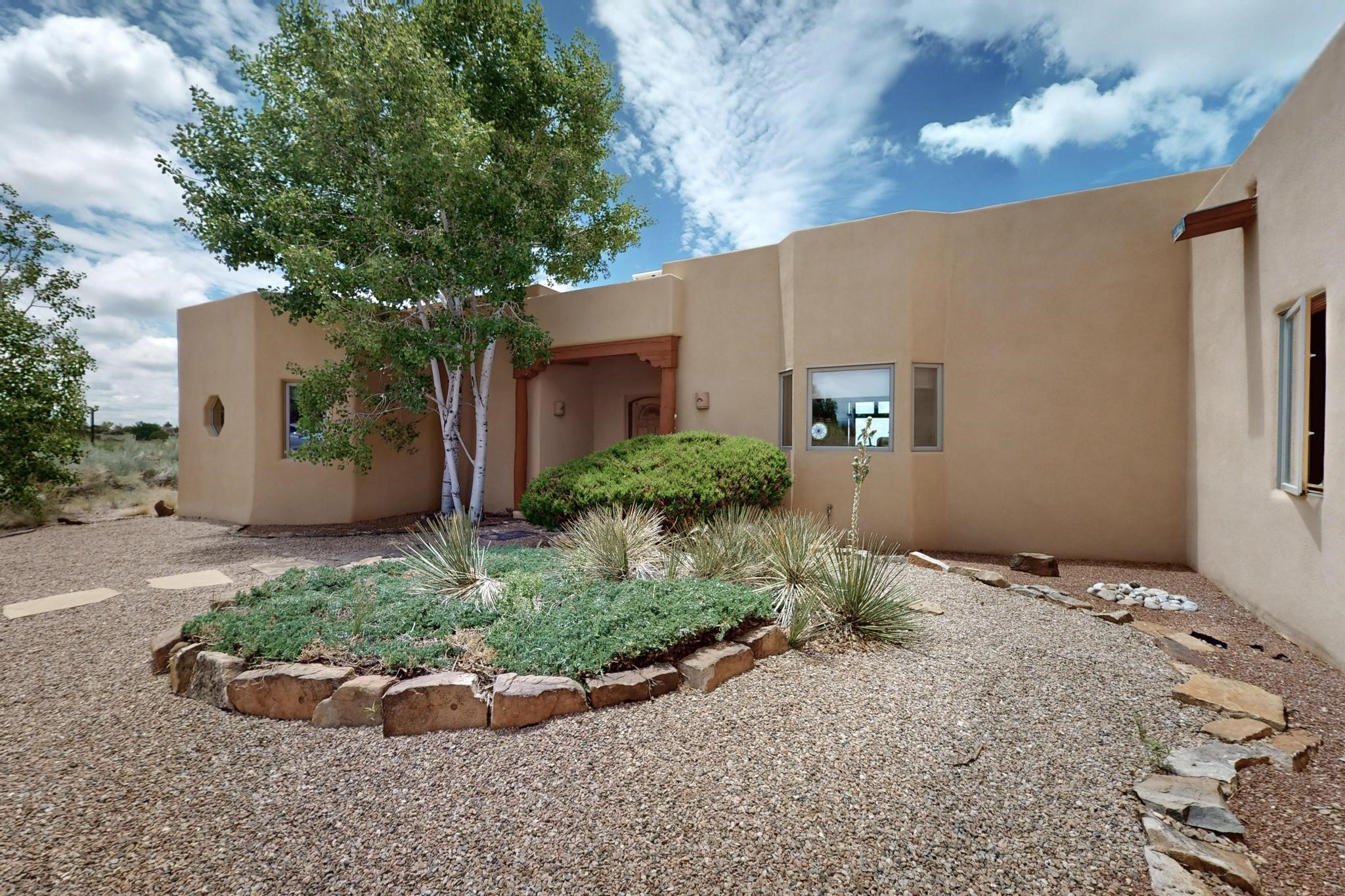 First time on the market! This custom built, light filled 3 bd 2 bath home on 1.82 acres in Eldorado is exceptional. Enter into the spacious great room with living and dining, large windowslet you enjoy the expansive views and stunning sunsets. The generous kitchen with Shaker style cabinets offers plenty of storage, plus a new dishwasher, making cooking and entertaininga breeze. The private ensuite master bedroom with walk-in closet and access to the backyard has a conveniently located but separatelaundry room. The secondbedroom has private access to the backyard, tile floors and lovely views. The third bedroom has a loft and room for a desk or another bed underneath. The home is constructed with insulated concrete forms, an expensive building material, offering superior insulation and strength. The activesolar significantly reduces energy consumption, and is a significant money saver.