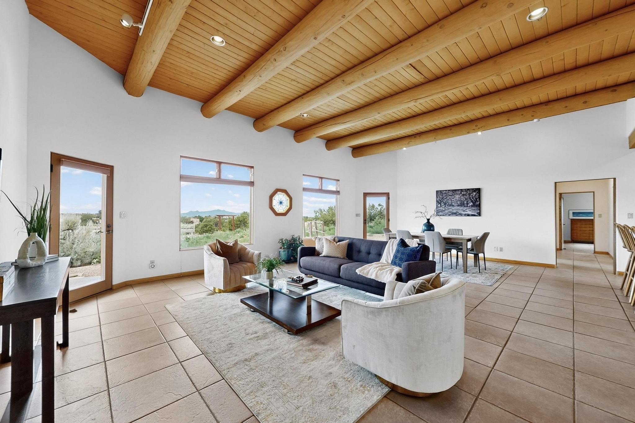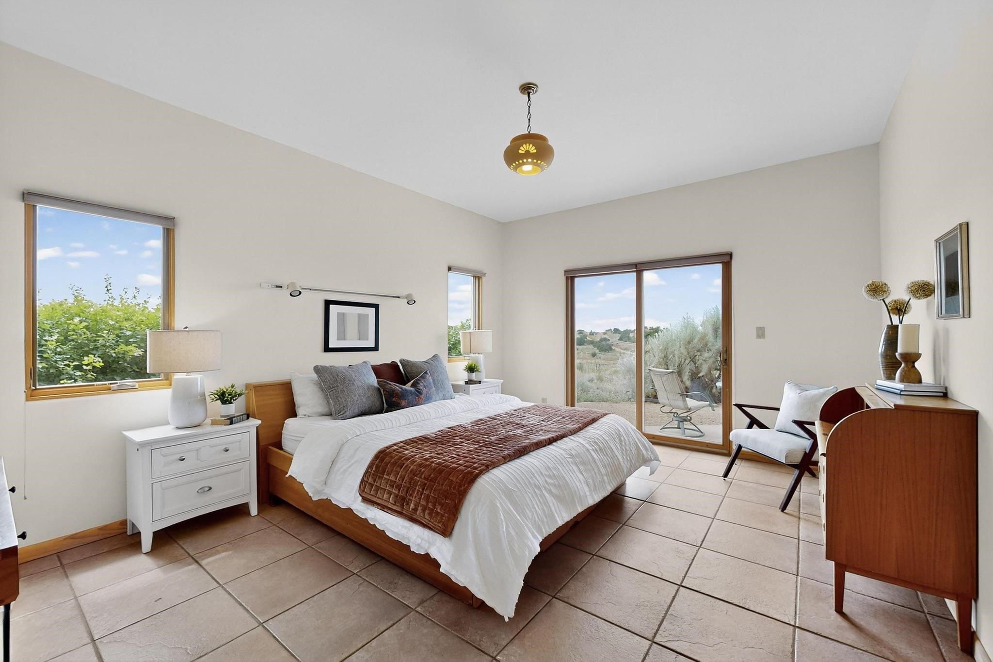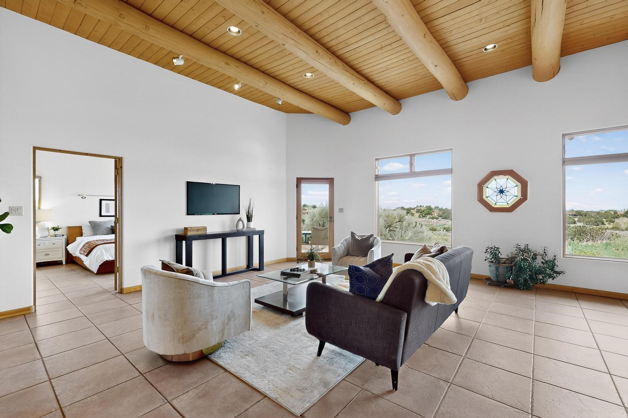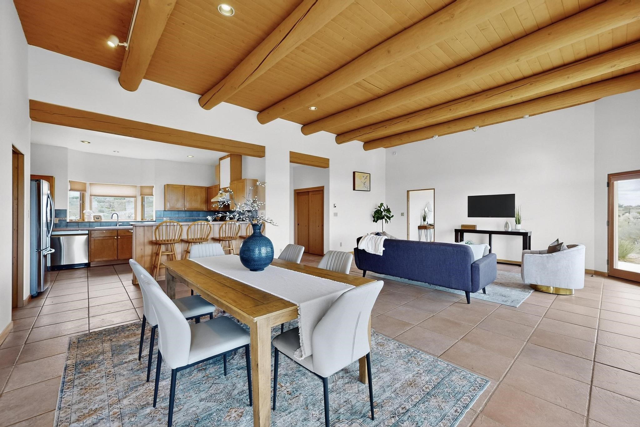 First time on the market! This custom built, light filled 3 bd 2 bath home on 1.82 acres in Eldorado is exceptional. Enter into the spacious great room with living and dining, large windowslet you enjoy the expansive views and stunning sunsets. The generous kitchen with Shaker style cabinets offers plenty of storage, plus a new dishwasher, making cooking and entertaininga breeze. The private ensuite master bedroom with walk-in closet and access to the backyard has a conveniently located but separatelaundry room. The secondbedroom has private access to the backyard, tile floors and lovely views. The third bedroom has a loft and room for a desk or another bed underneath. The home is constructed with insulated concrete forms, an expensive building material, offering superior insulation and strength. The activesolar significantly reduces energy consumption, and is a significant money saver.