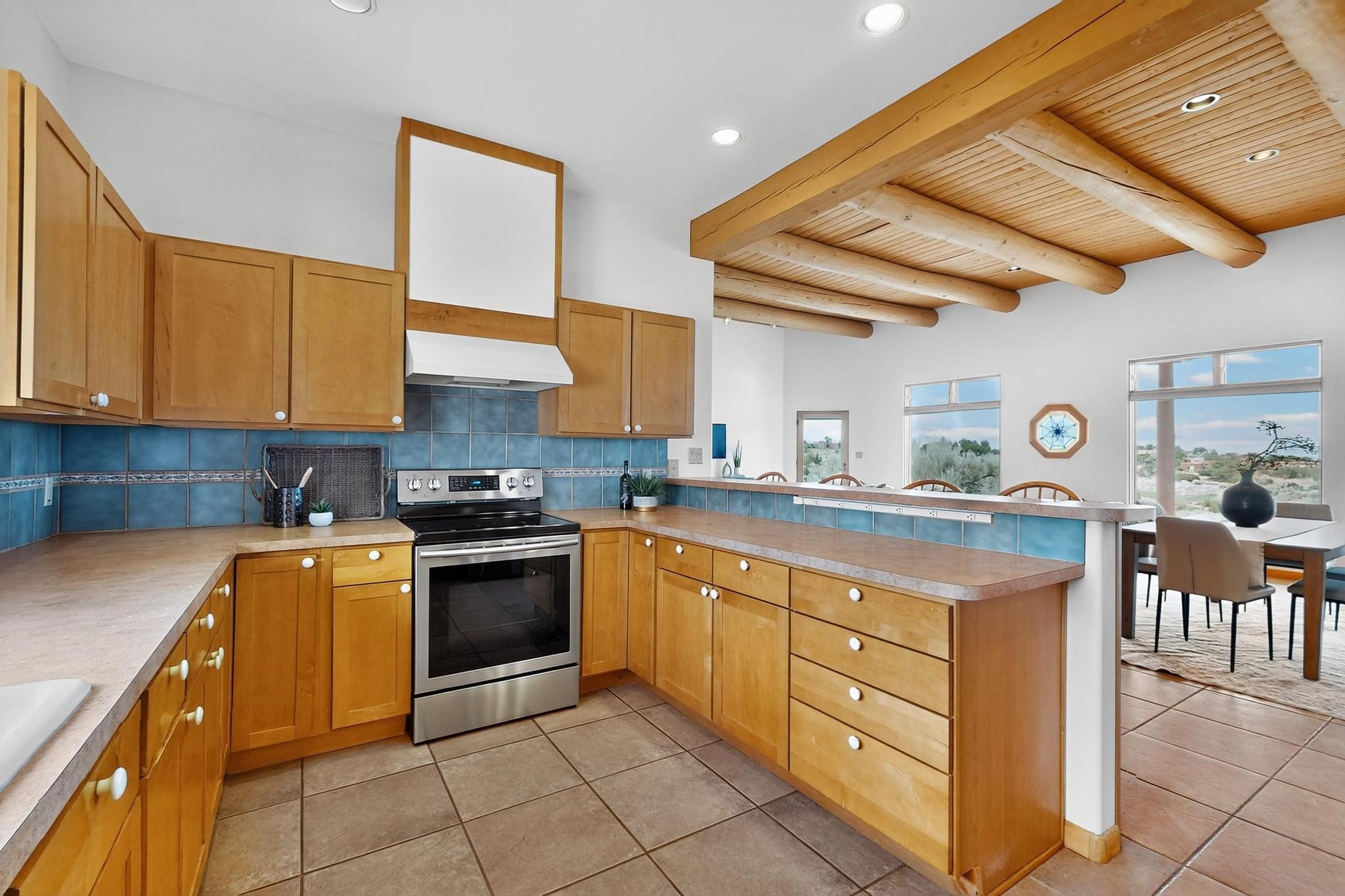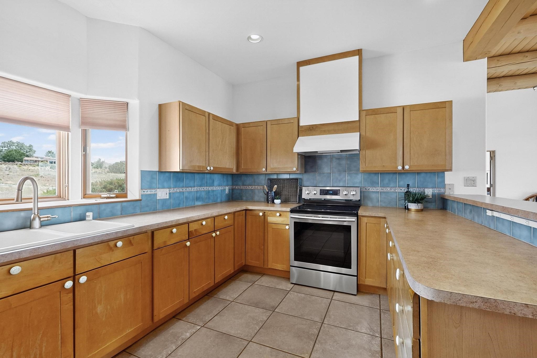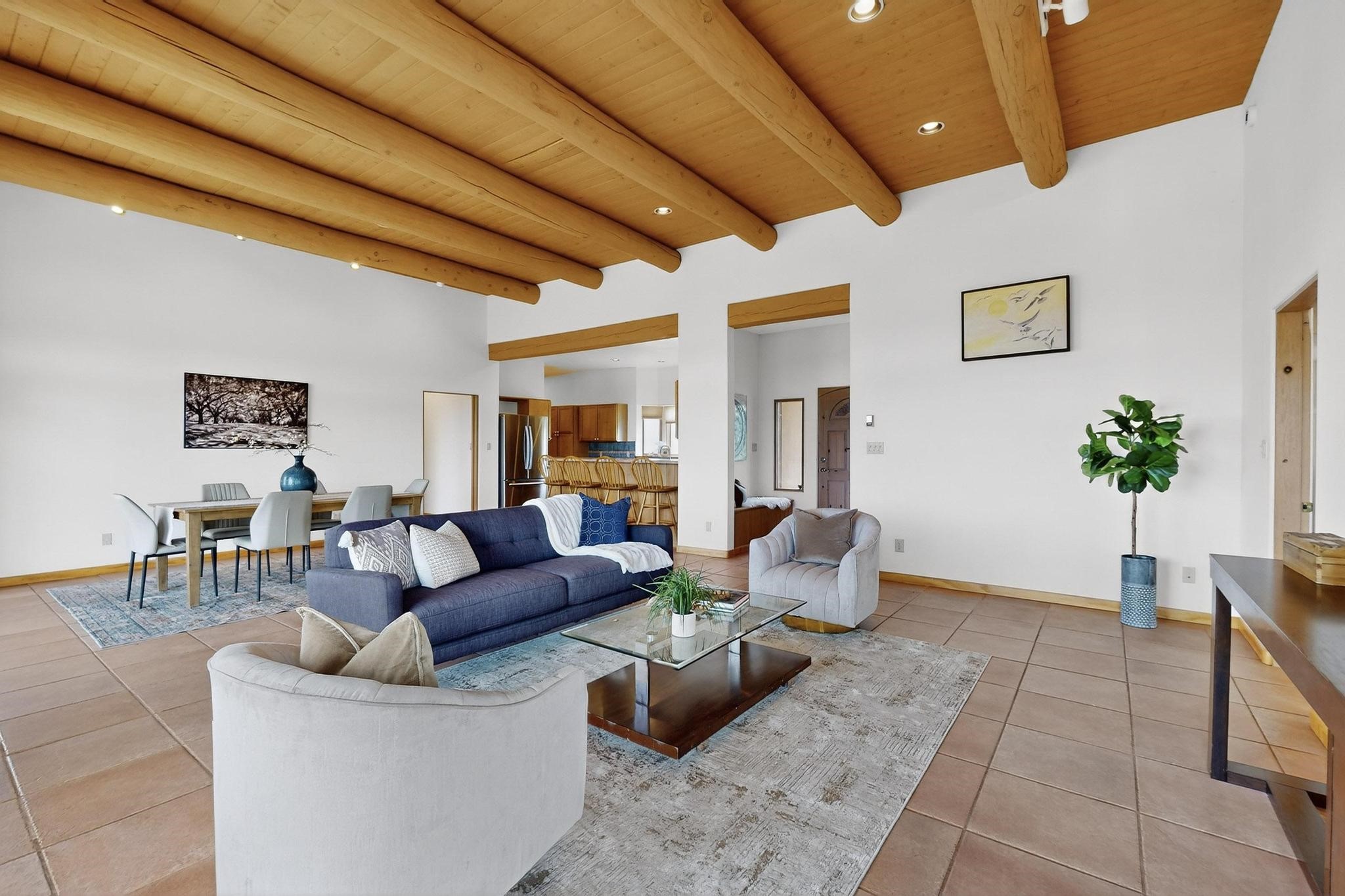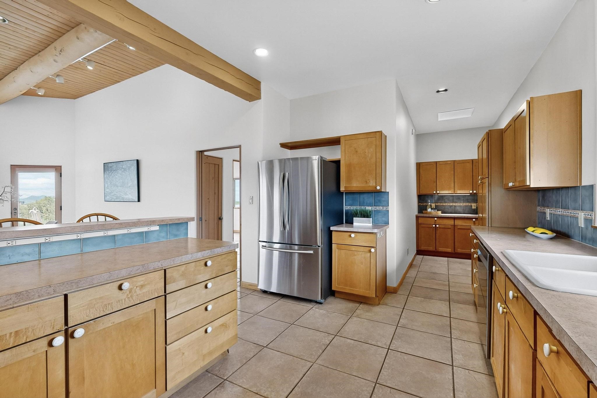 First time on the market! This custom built, light filled 3 bd 2 bath home on 1.82 acres in Eldorado is exceptional. Enter into the spacious great room with living and dining, large windowslet you enjoy the expansive views and stunning sunsets. The generous kitchen with Shaker style cabinets offers plenty of storage, plus a new dishwasher, making cooking and entertaininga breeze. The private ensuite master bedroom with walk-in closet and access to the backyard has a conveniently located but separatelaundry room. The secondbedroom has private access to the backyard, tile floors and lovely views. The third bedroom has a loft and room for a desk or another bed underneath. The home is constructed with insulated concrete forms, an expensive building material, offering superior insulation and strength. The activesolar significantly reduces energy consumption, and is a significant money saver.