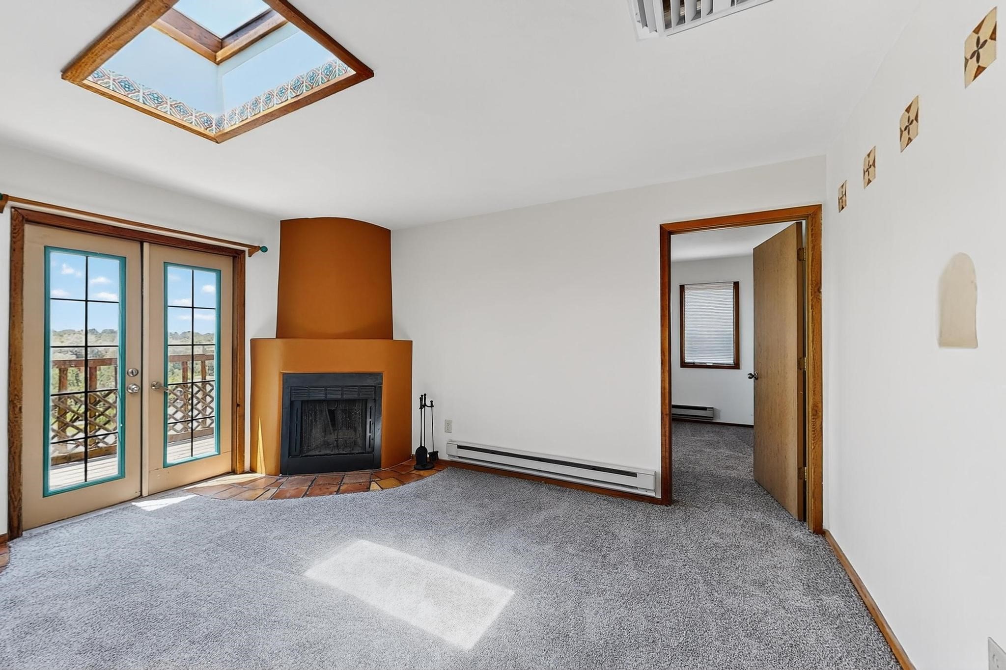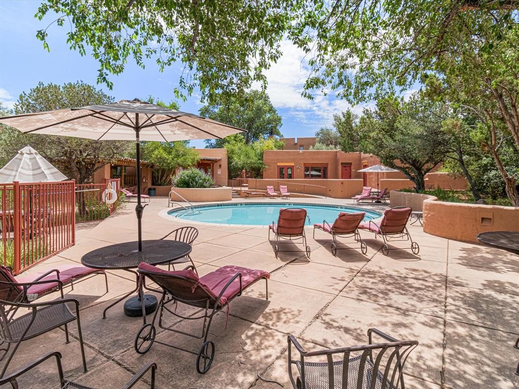 Discover the charm and serenity of this rare 2-bedroom, 2-bath condo located in Tierra de Zia community. Infusedwith Southwestern warmth and character, this Pueblo-style gem features classic Saltillo tile floors and new carpet, paint, granite kitchen countertops, a cozy kiva fireplace, and expansive views overlooking the tranquil pond. Thoughtfully designed for comfort and style, the open living space flows seamlessly onto a private patio -- the perfect spot for morning coffee or evening relaxation amid the soothing sounds of nature. Both bedrooms feature en suites with great separation. Located in a gated, beautifully landscaped community with walking paths, mature trees, and seasonal gardens, Tierra de Zia offers a unique blend of privacy and convenience, just minutes from downtown Santa Fe. Whether you're seeking a serene full-timeresidence, a lock-and-leave getaway, or a smart investment opportunity, this rare condo offers it all.