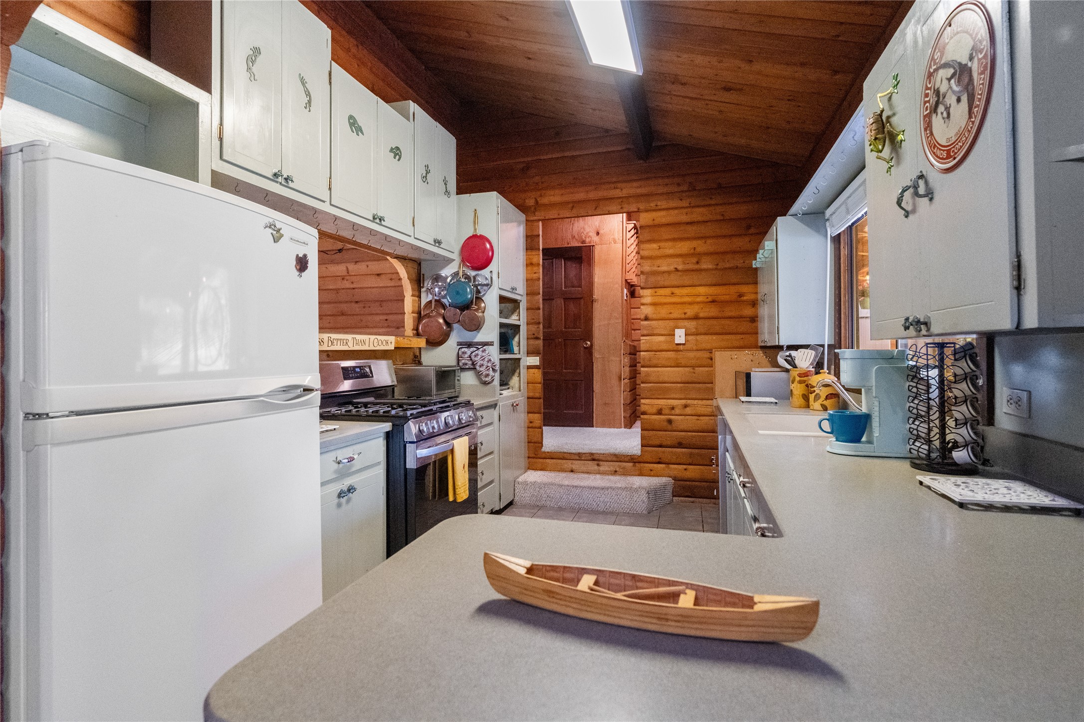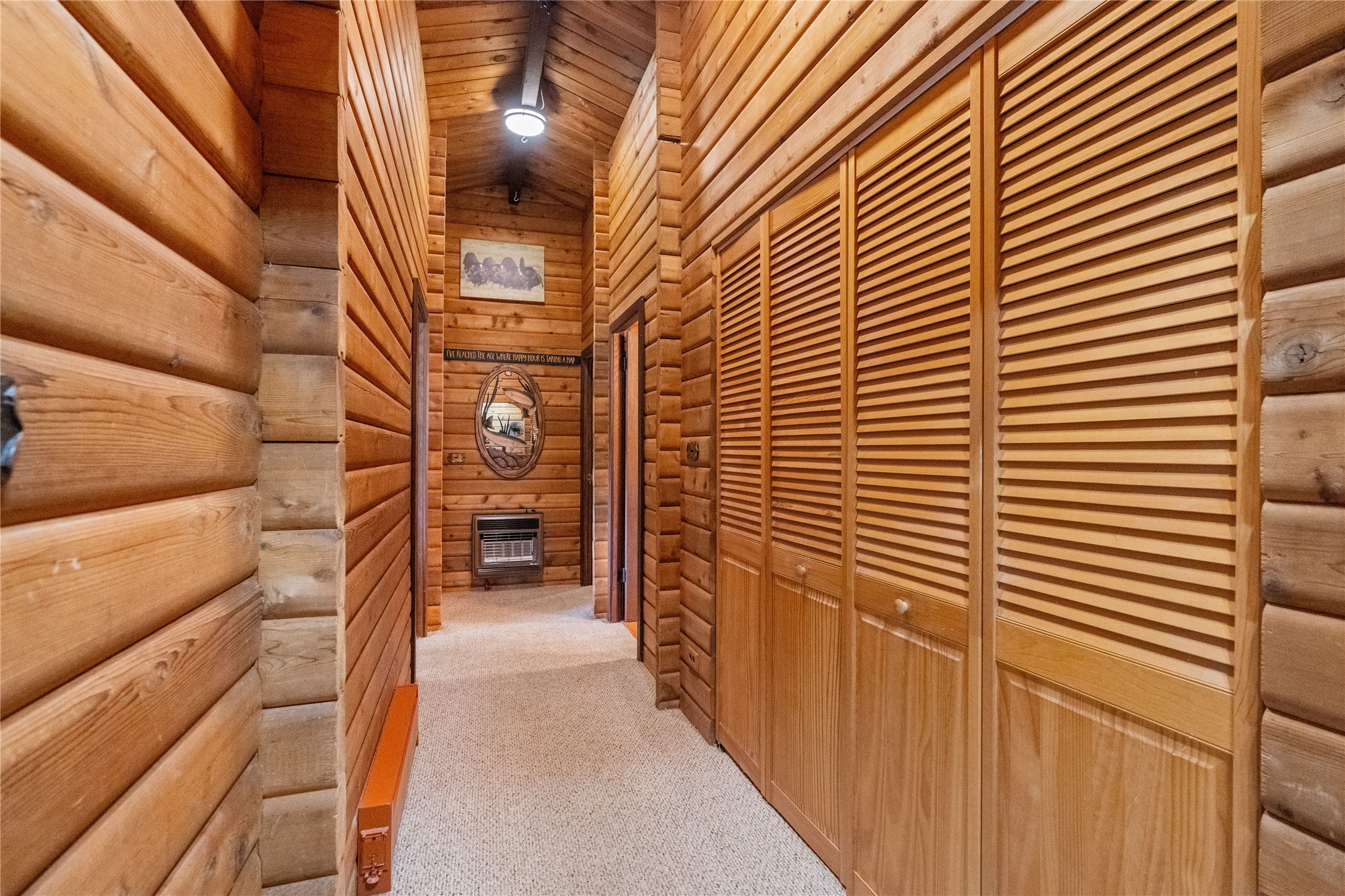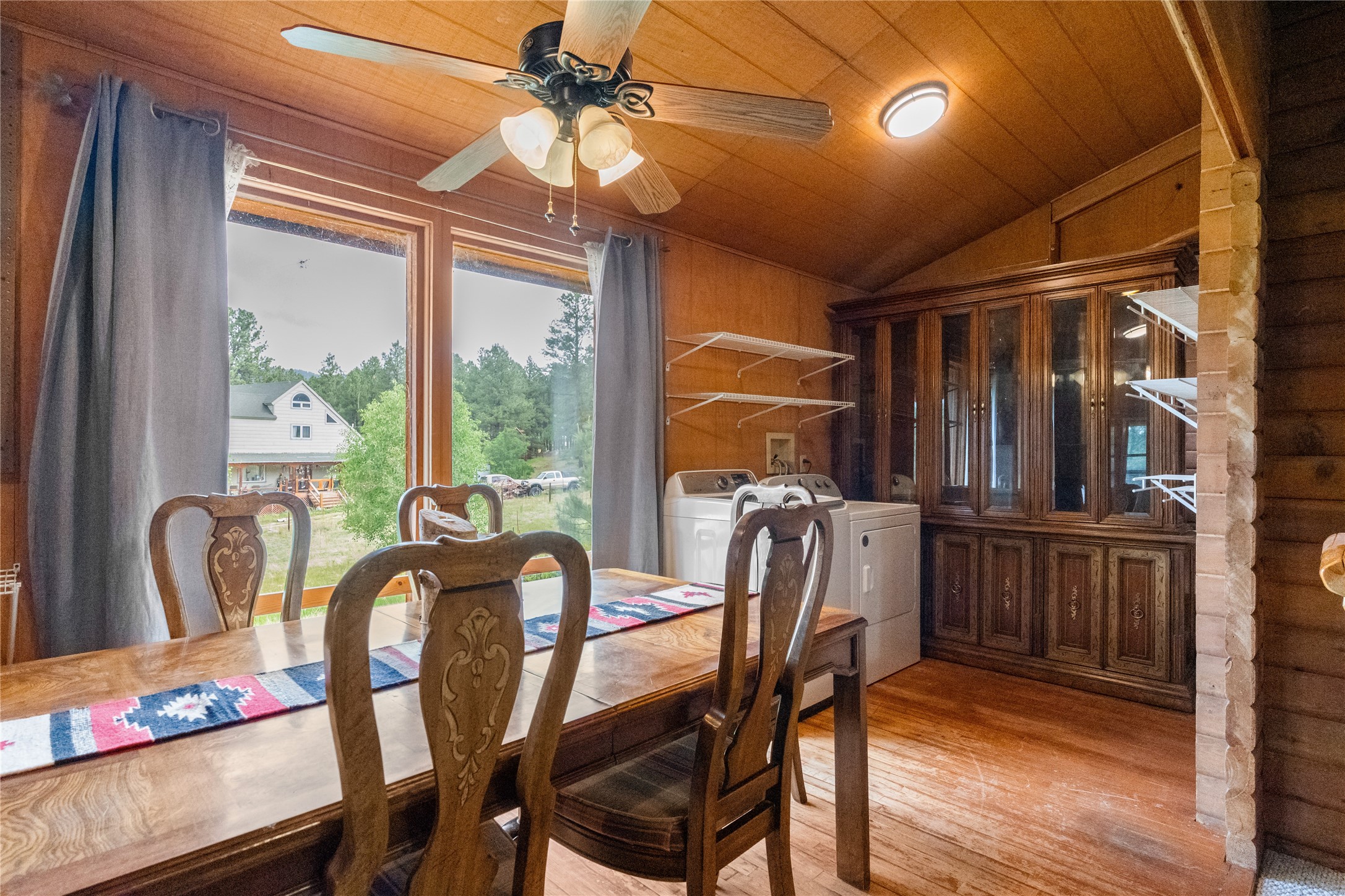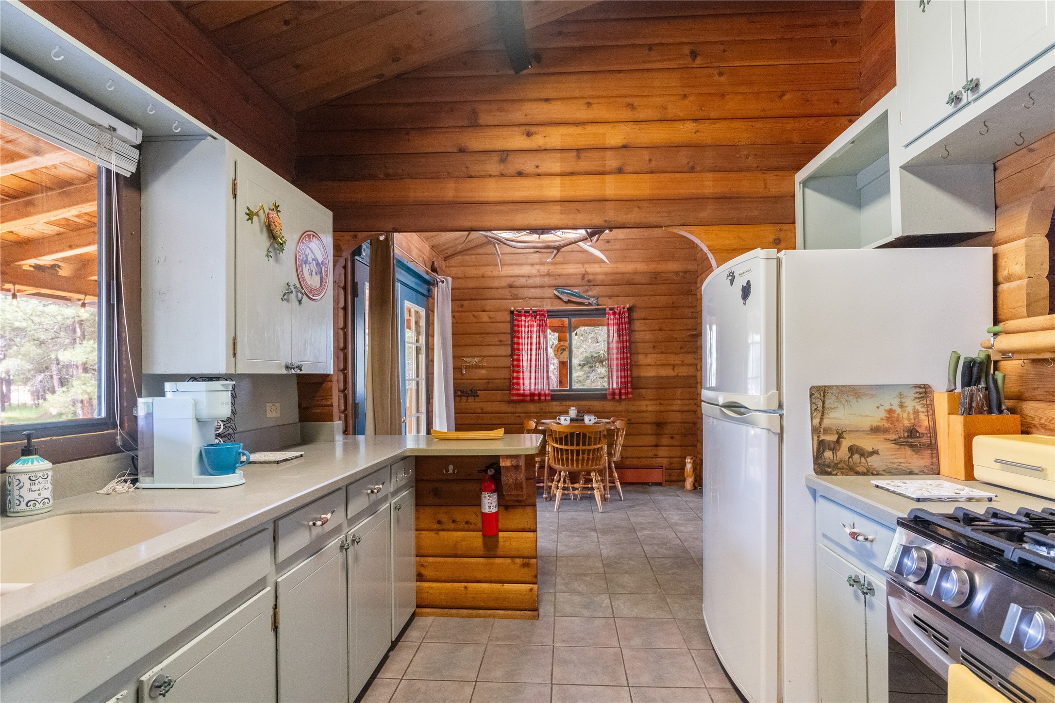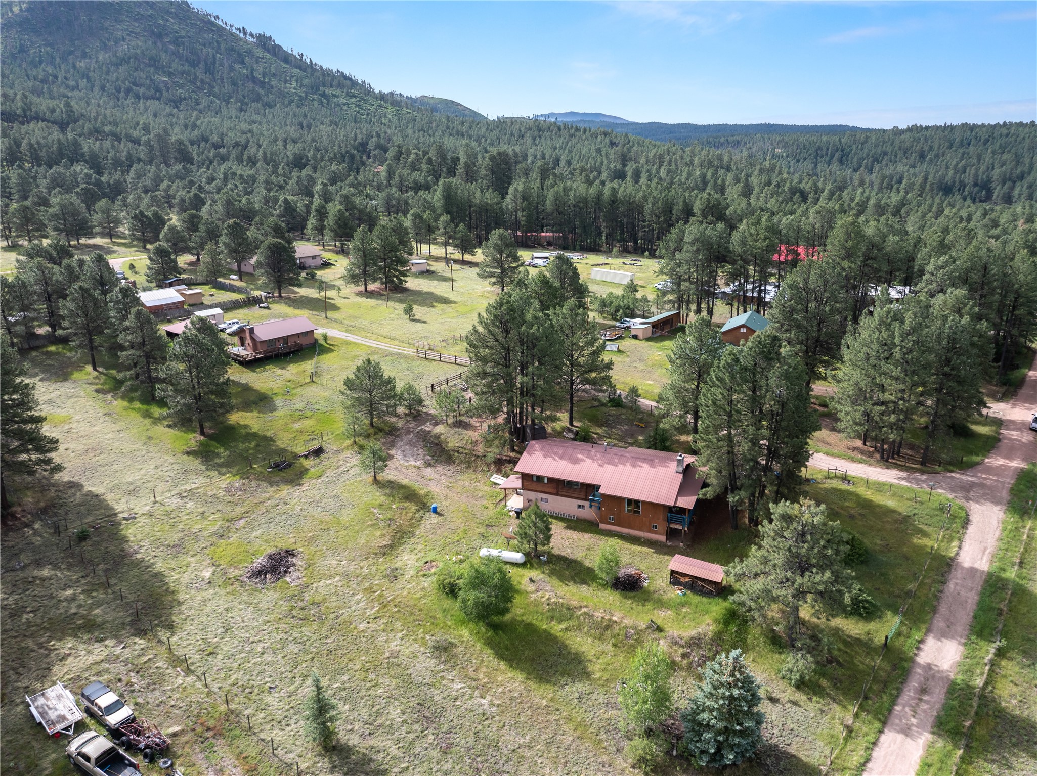 Lucky enough to live in the mountains...then you're lucky enough! This 2-bedroom, 1-bath 2,219 sq ft log cabin on 1.2 acres in La Cueva is the perfect spot! Originally a 3-bedroom, one room was opened up to expand the primary suite--but it could easily be converted back. The fabulous Panabode cabin with its interlocking log design blends modern living with traditional. From the wagon wheel-antler chandelier to the arched doorways & rustic warm interiors, the cedar tongue-&-groove cathedral wood ceiling, & the inviting rocking chair wrap-around covered porch, every detail enhances the home's irresistible charm! The spacious main bedroom is perfect to add in a cozy reading nook or office. Walk-out basement offers endless possibilities--finish it for extra bedrooms or a rec room or keep it as a workshop. You won't find a better location for a sweet weekend getaway or a full-time residence!