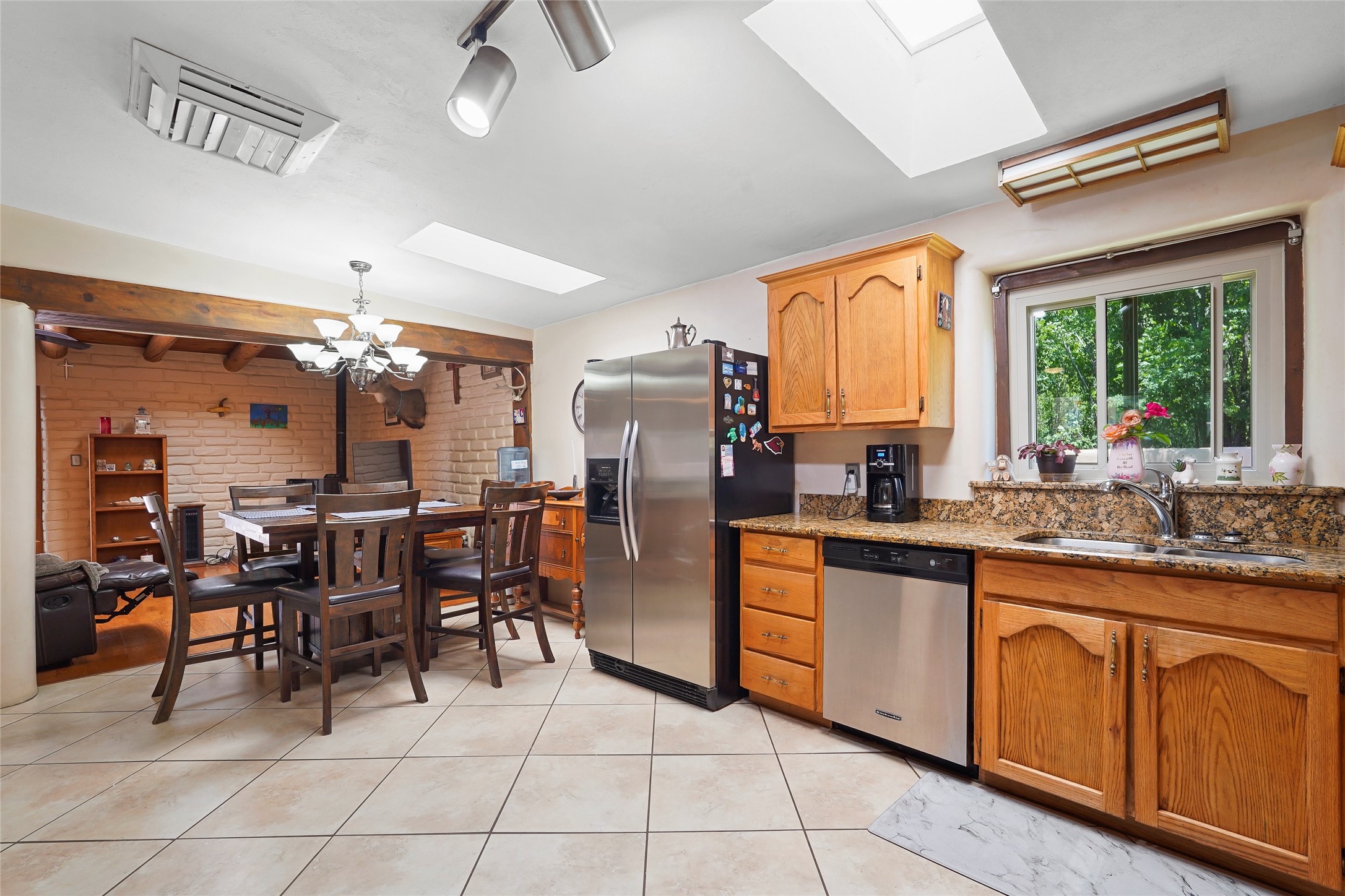 Welcome to 36 County Road 126 in La Mesilla! This charming 3-bedroom, 2-bath detached home offers the perfect blend of comfort, privacy, and outdoor living on a gated 0.8-acre lot. Surrounded by lush greenery, this property is a serene escape with plenty of space to enjoy and entertain. Inside, you'll find two spacious living rooms--one featuring a classic kiva fireplace and the other warmed by a cozy pellet stove--ideal for relaxing evenings year-round. The well-designed layout flows easily to the kitchen and dining areas, creating a welcoming atmosphere throughout. Upstairs, the primary bedroom includes a private balcony, perfect for taking in the peaceful views and fresh air. Step outside to enjoy the expansive patio, your very own basketball court, and beautifully landscaped grounds. Additional features include a two-car garage, carport, and gated access for added privacy and security. Whether you're gathering with friends or enjoying a quiet night at home, this unique La Mesilla residence has it all!