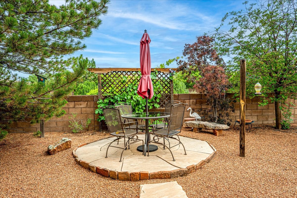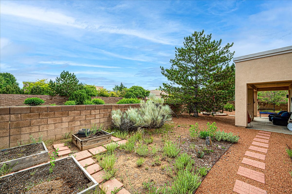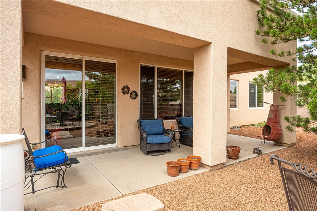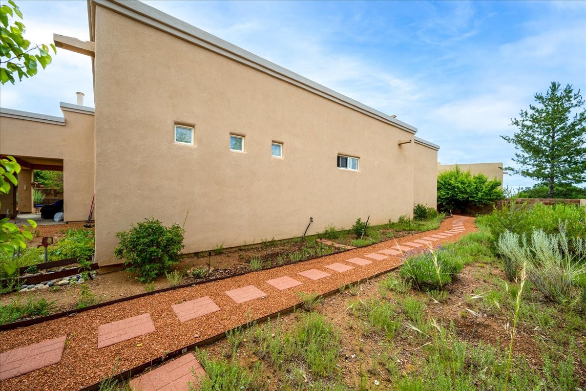 This home is quite the gem! From the moment you enter the foyer and see the open and airy space with a view to the back patio, you at once feel happy to be home. This single level home has been well tended and gently lived in, sports a neutral pallet, tile floors in the main living areas, an adjacent office or den, and 2 well separated bedrooms. The kitchen is spacious and offers a cozy eat-in area. The beautifully landscaped yard is private, easy to care for and has a lovely patio to enjoy our fantastic summer weather! The home is conveniently located to all the southside amenities, The Santa Fe Community College, and is a quick drive to Highway 599 for those who wish to commute to Los Alamos! About 20 minutes to The Santa Fe Plaza! Choice!