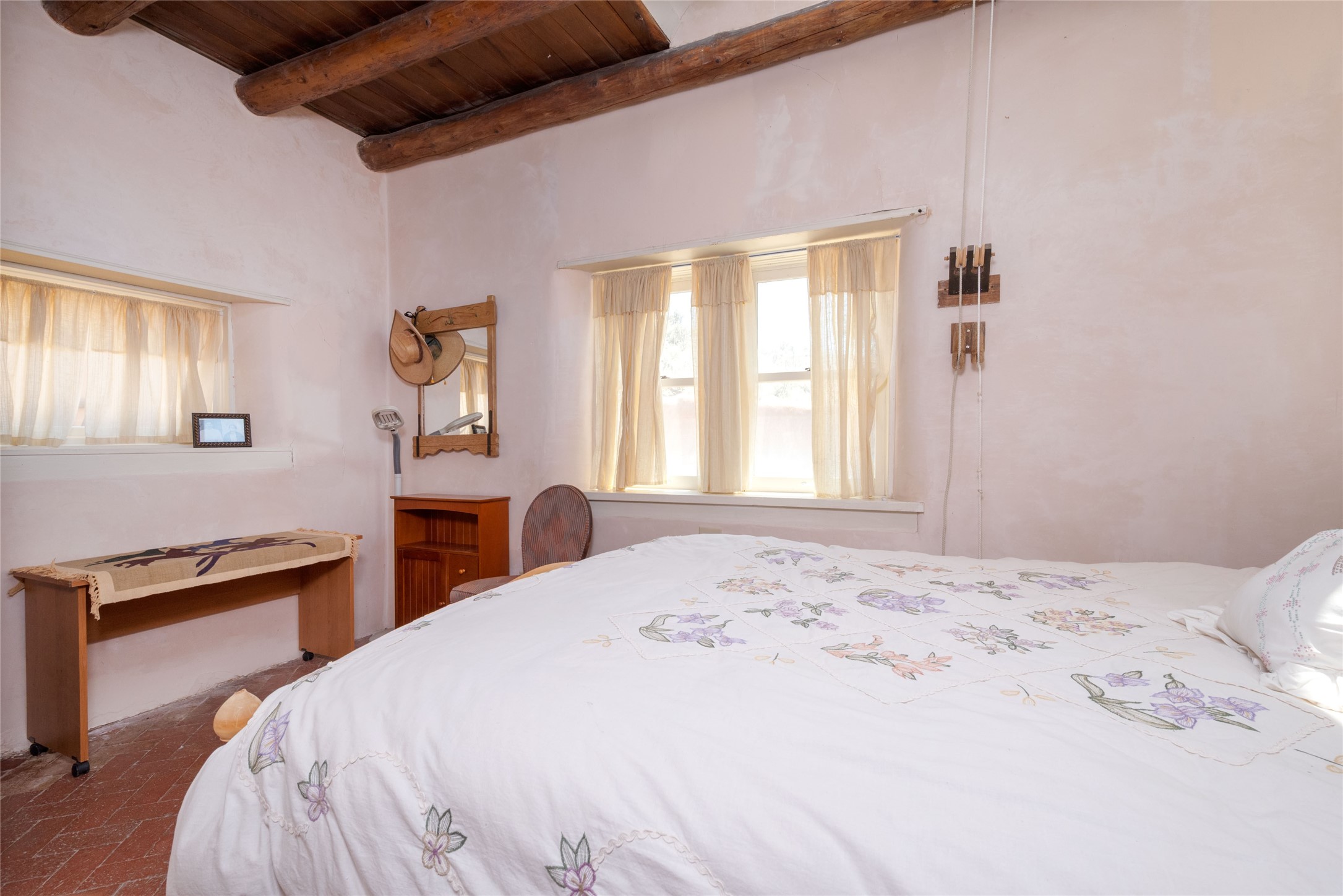 La Cienega Vineyard Estate - Four Parcels with Adobe Homes, Studios & Acequia Water Rights. Discover a unique opportunity in the heart of historic La Cienega--a vibrant 6-acre vineyard comprising four separately deeded parcels, rich with potential and authentic New Mexico charm. Anchored by two traditional adobe homes, the estate is steeped in regional character and surrounded by natural beauty. The main house features 3 bedrooms, 2 baths, and showcases classic Santa Fe style with brick floors, vigas, and elegant touches throughout. The adobe main residence is a quintessential historic home in the La Cienega Village. The second adobe home offers additional living space or rental income potential. In addition to the homes, the property includes a partially completed two-story apartment--ready for your finishing touches--and several studio structures that could be transformed into creative workspaces, studios, rentals or other uses associated with the Vineyard. The well-maintained vineyard is nourished by valuable acequia water rights, ensuring sustainable growth and offering agricultural possibilities for wine production, agritourism, or farm-to-table ventures. With flexible uses and multiple dwellings already in place, this rare offering is ideal for a variety of uses--live/work, multi-generational living, a creative retreat, or a boutique vineyard business. Properties with this combination of history, water, and opportunity are seldom available in La Cienega