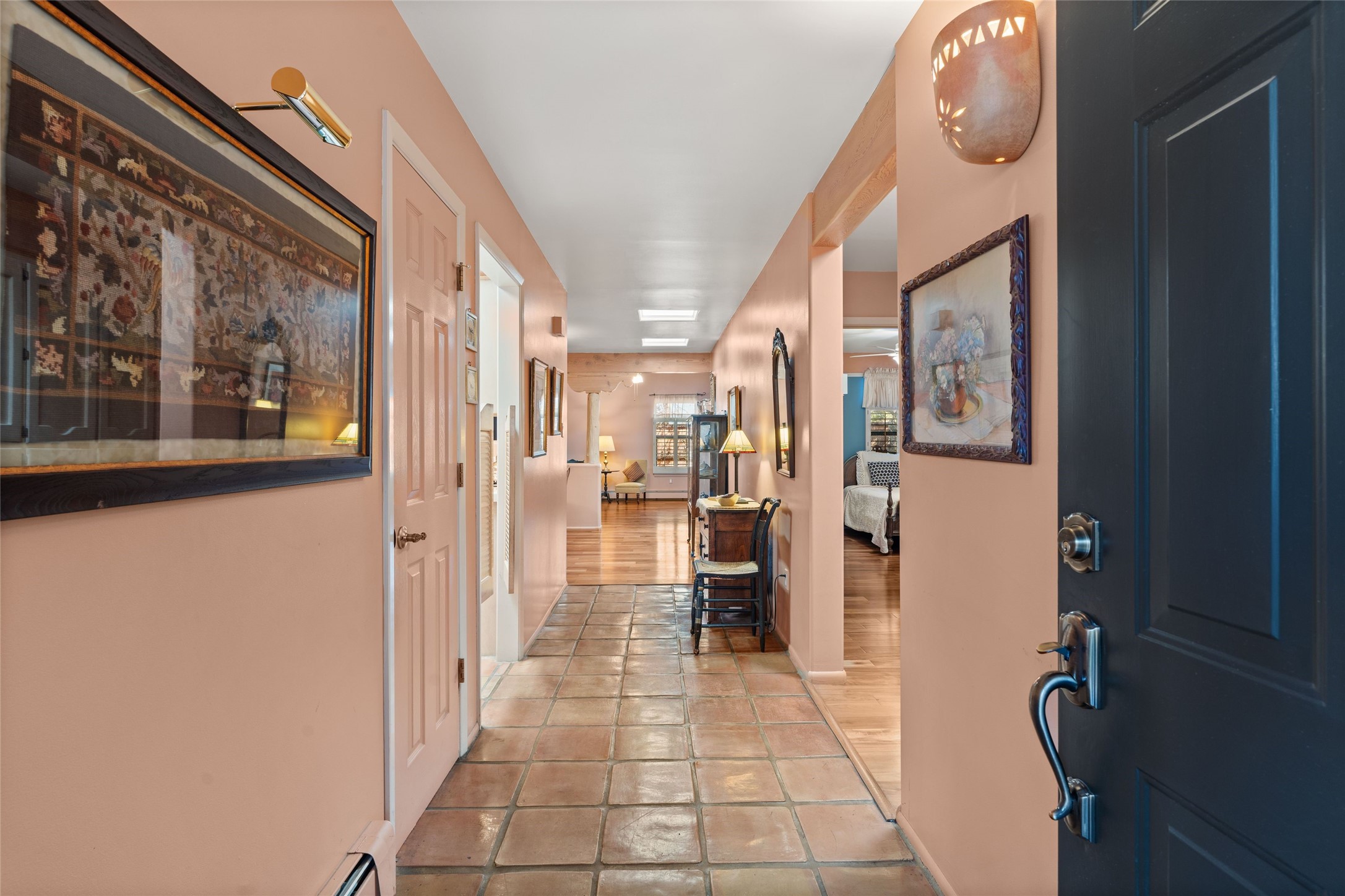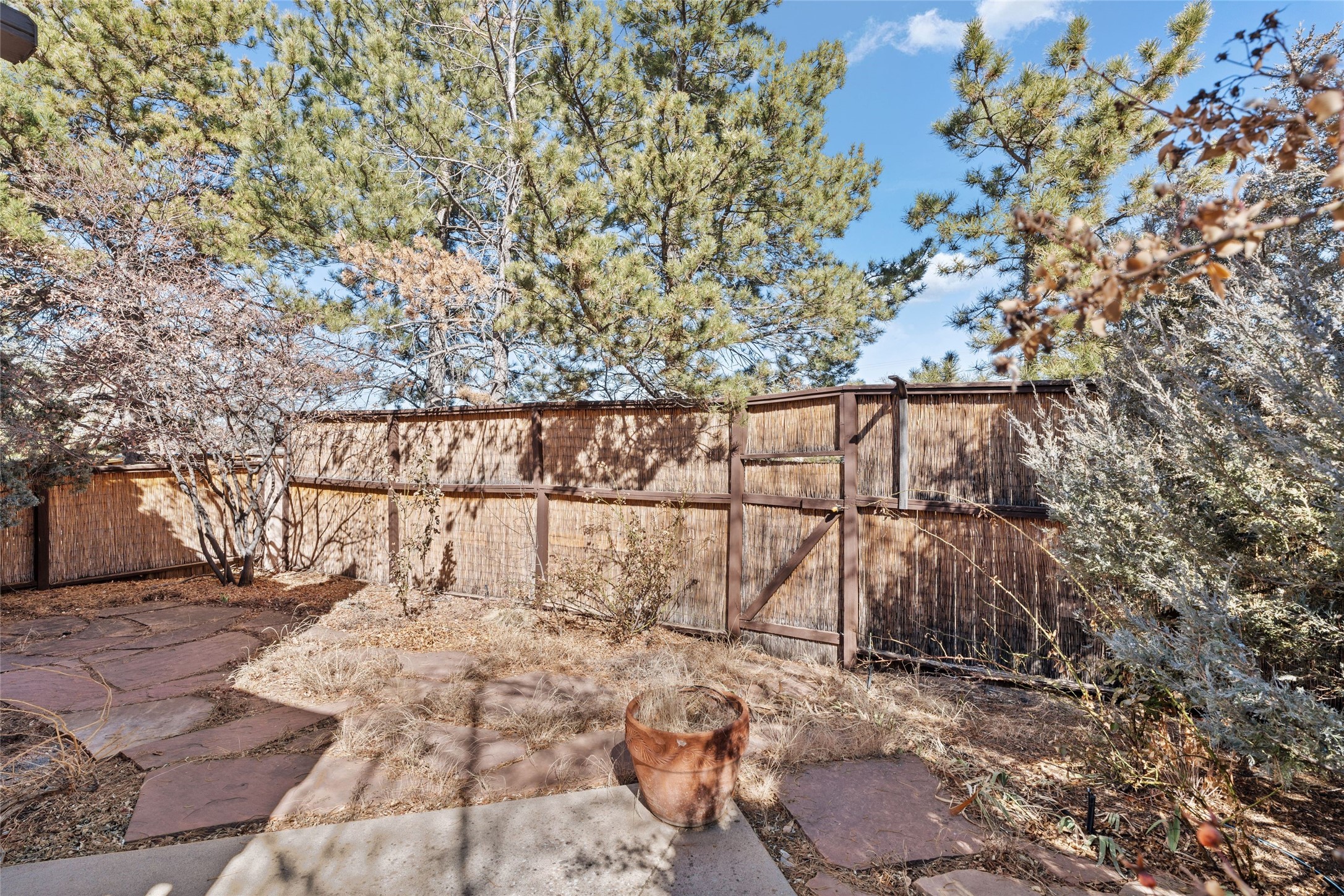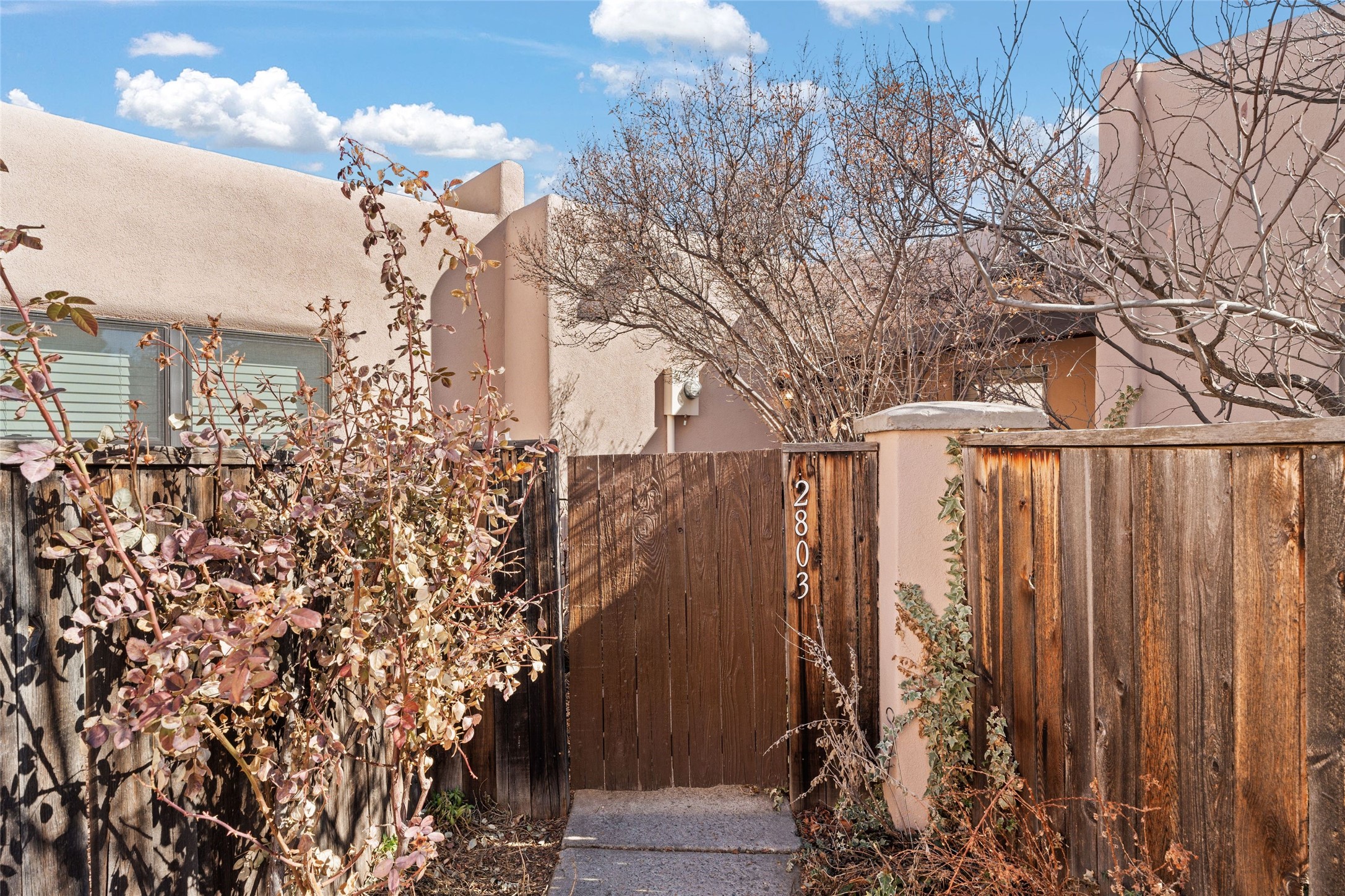 This is an ideal primary or secondary home in Santa Fe. This lovely Park Plaza two-bedroom, two-bath home features hardwood and tile floors, tongue-and-groove (T&G) ceiling finishes in the living room, no interior steps, a courtyard entry, a private backyard, and an upgraded roof with a 10-year warranty. It's centrally located in Santa Fe, offering easy living at its best! It is a charming private property. Do not miss this Park Plaza beauty!