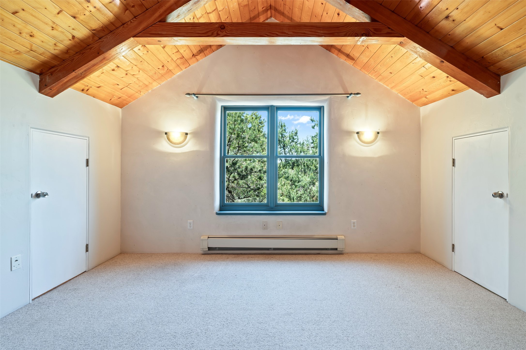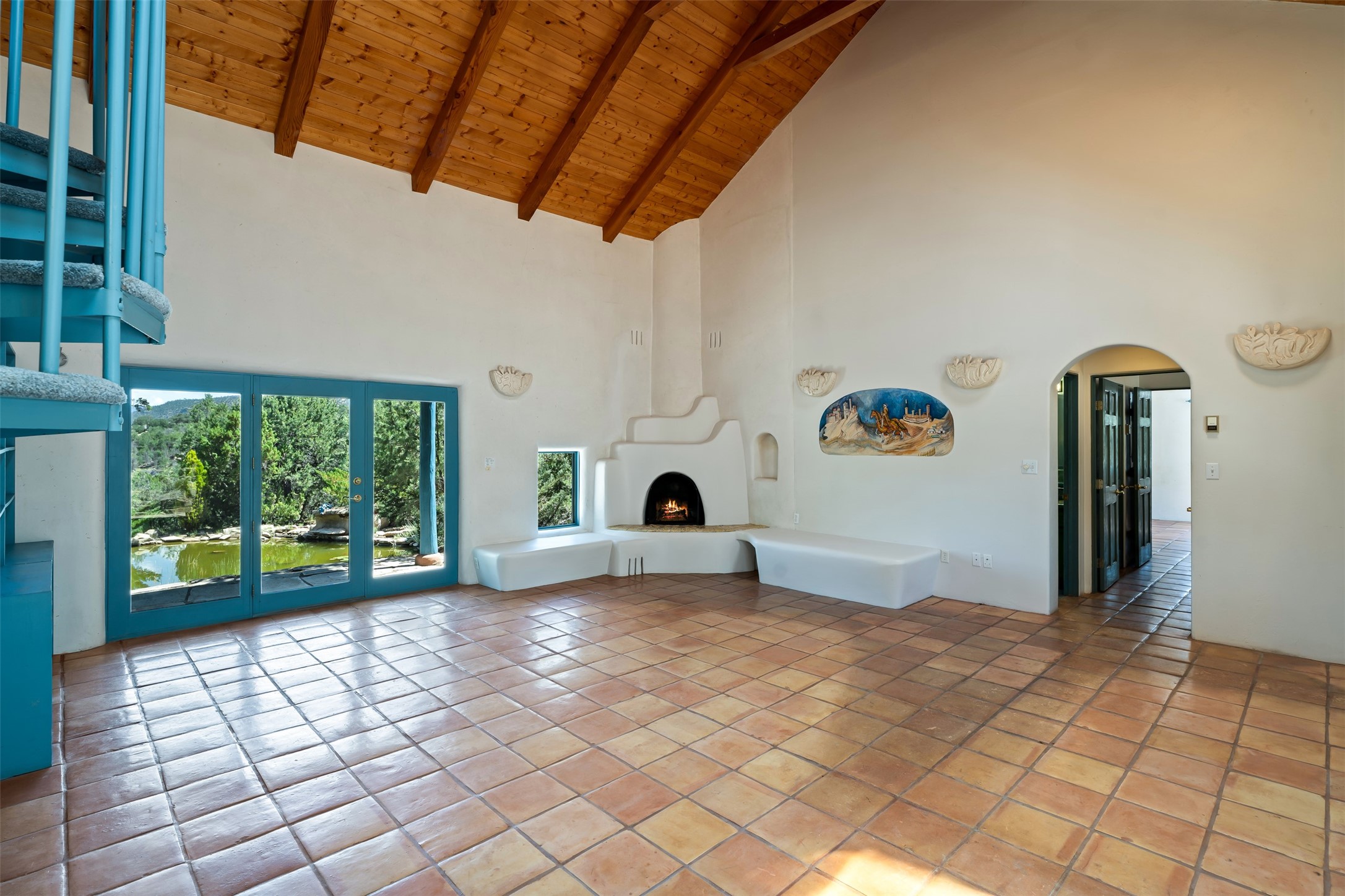 Nestled in the serene hills of Caoncito, this 3-bed, 2-bath Rastra home sits on 5.99 private wooded acres with a thriving koi pond, private well, and sweeping Sangre de Cristo views -- offering a rare value-add opportunity.Owner-built and on the market for the first time since 1998, this home blends craftsmanship and artistic detail throughout. Soaring ceilings, a striking fireplace, and expansive windows define the main living space, while a lofted study/library offers a quiet retreat. The home was intentionally designed to be divided into two living areas, with pre-installed utility connections ready to support the setup.A workroom with slop sink, two storage sheds -- including one with an electrical backup generator -- add functionality. With a new septic system recently installed and an updated well system, this property offers a strong infrastructure base to build upon.Just 10 minutes to Eldorado and 25 to downtown Santa Fe, with nearby trails and 100 mbps internet available. A peaceful retreat and a rare chance to add real value.